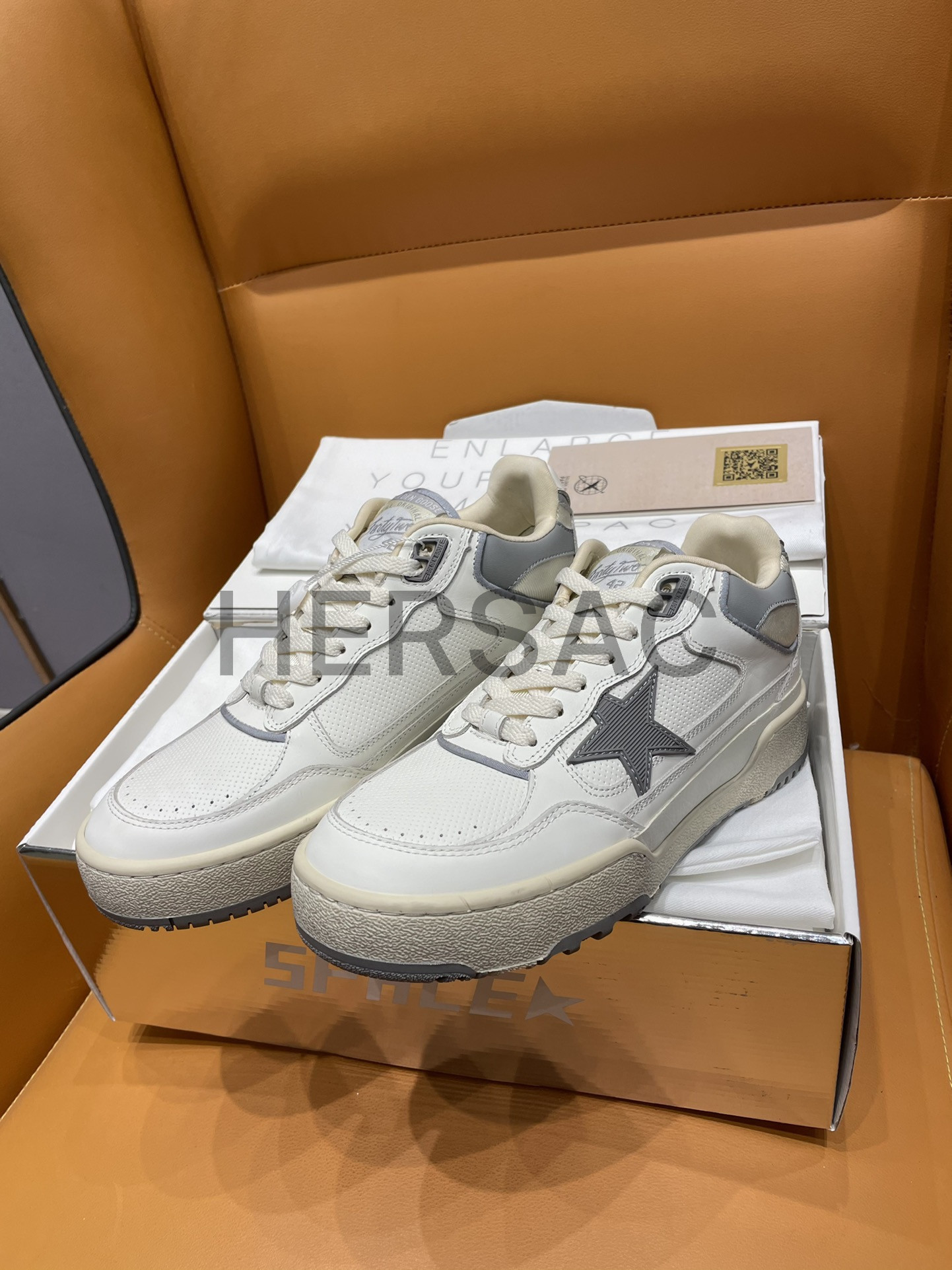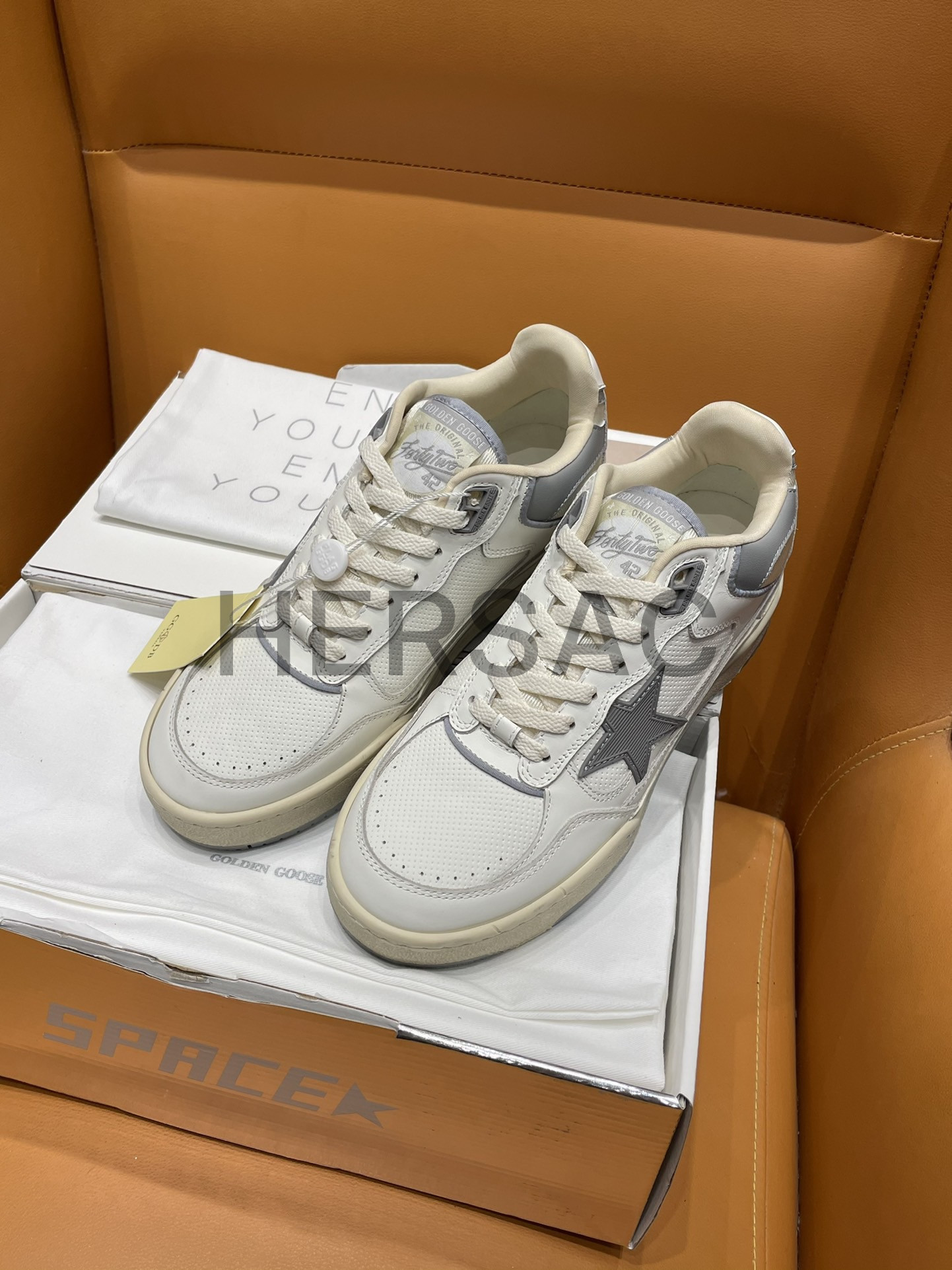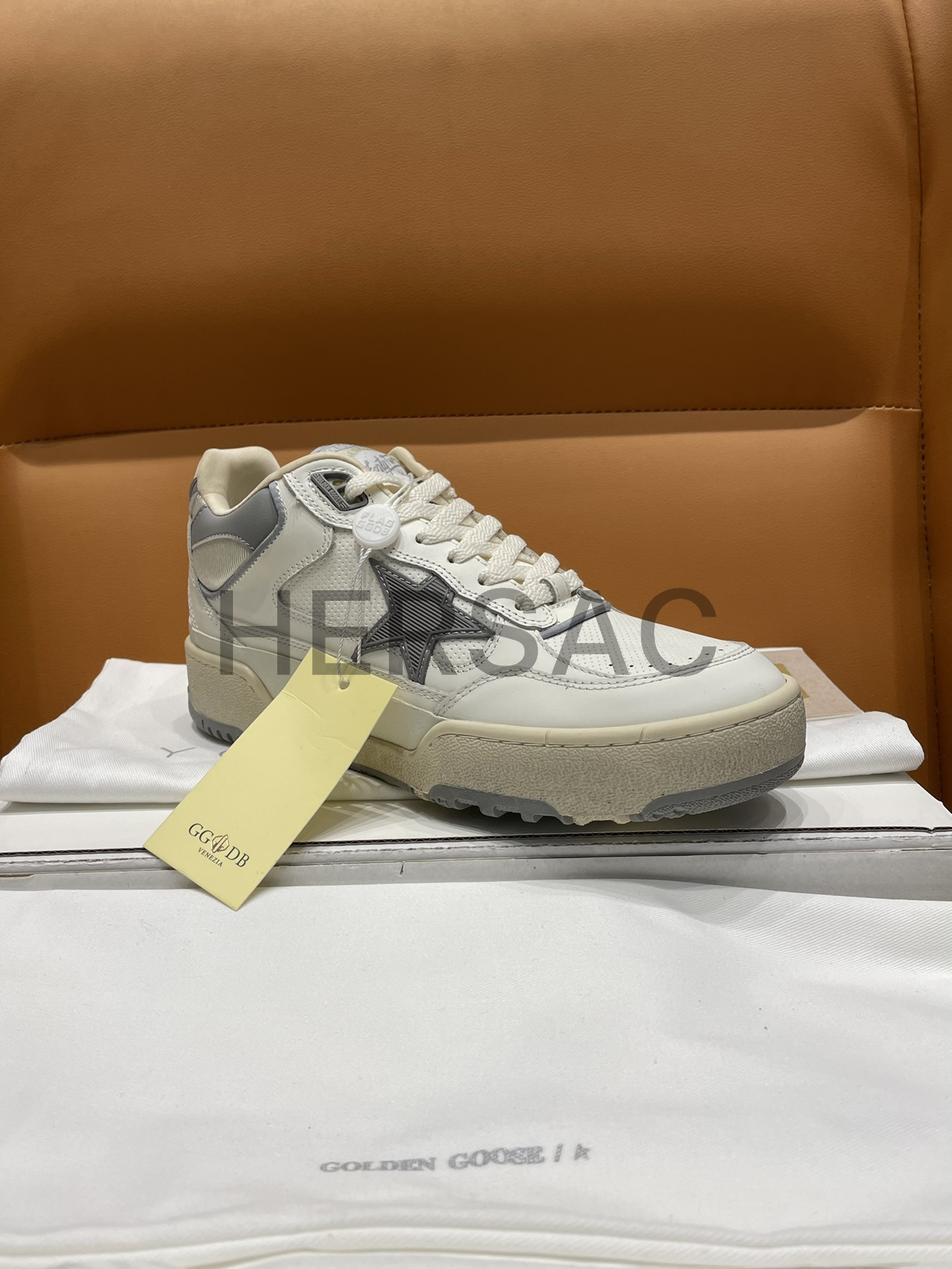 골든구스 남성 그레이 TPU 스타 & 화이트 레더 힐탭 Forty2 GMF00630.F006886.10973