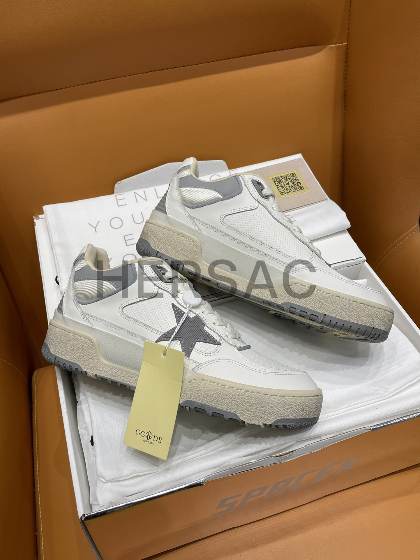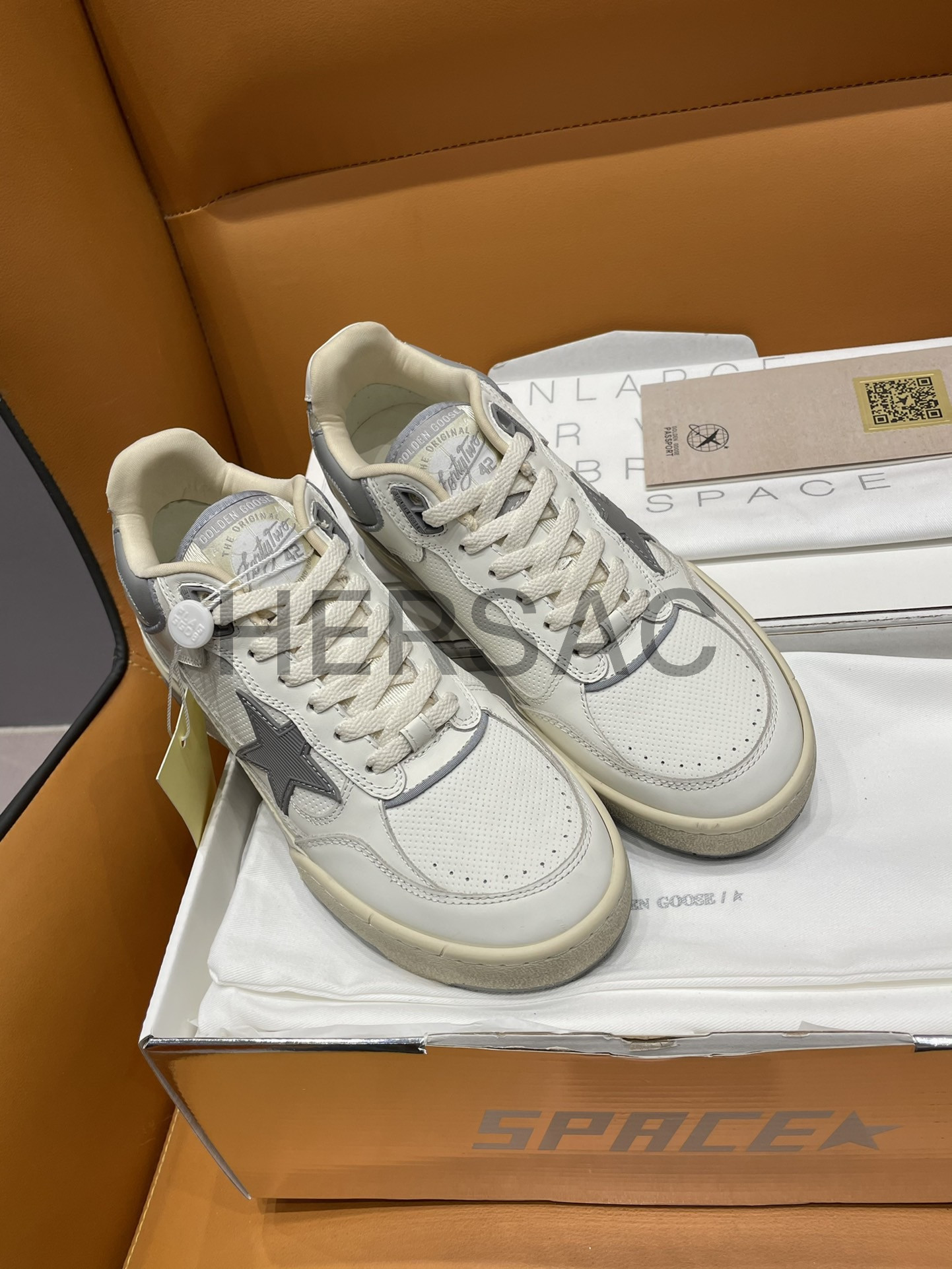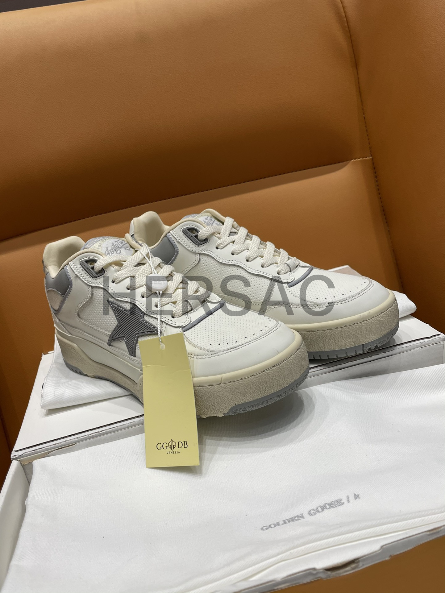 골든구스 남성 그레이 TPU 스타 & 화이트 레더 힐탭 Forty2 GMF00630.F006886.10973
