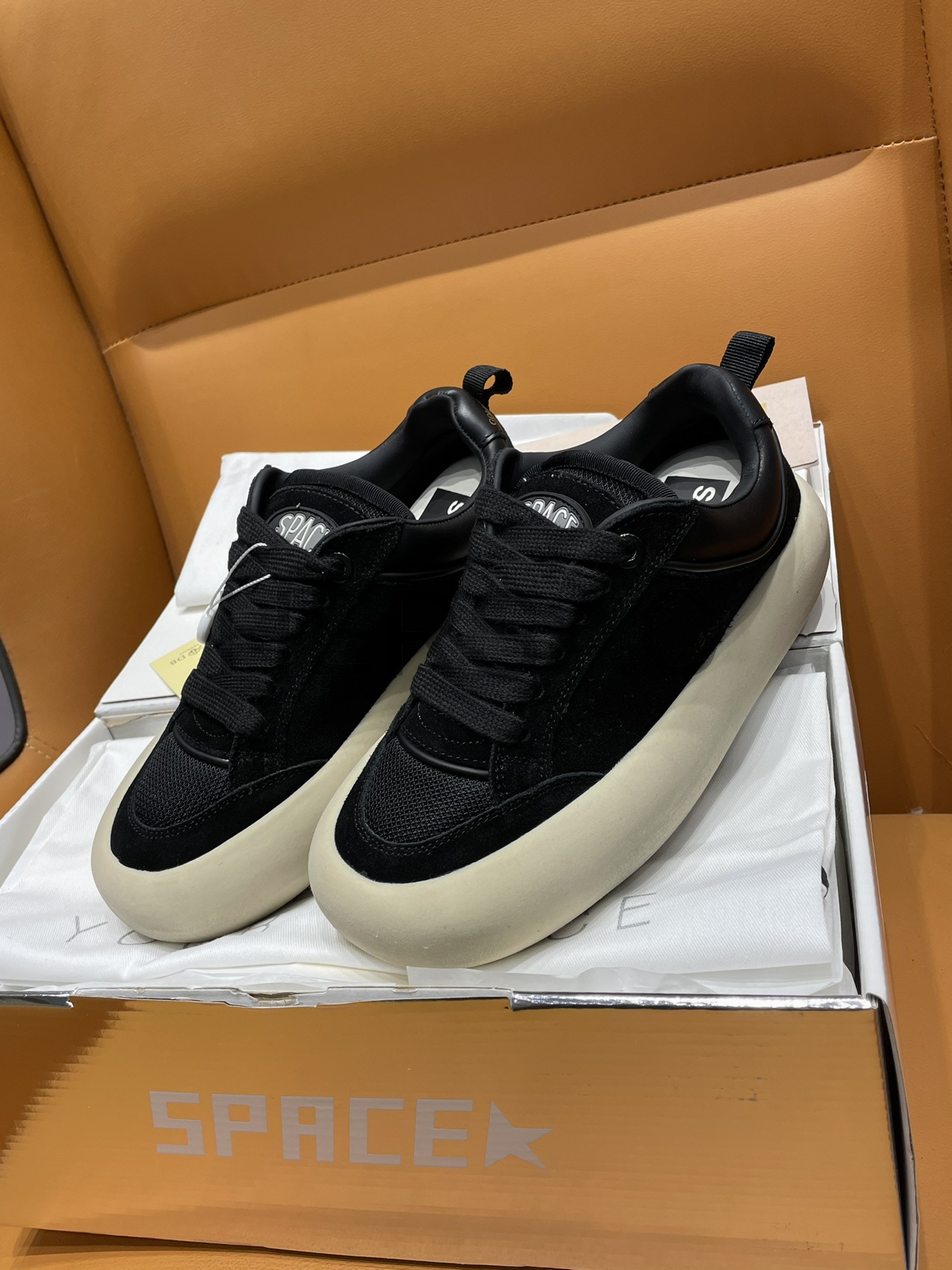 골든구스 남성 퍼포레이티드 스타 블랙 스웨이드 스페이스-스타 큐브 GMF00807.F007093.90100