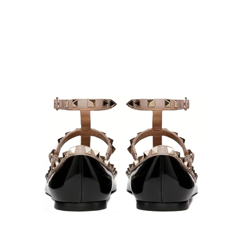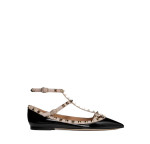 발렌티노 Rockstud 앵클랩 페이턴트 가죽 스터드 발레 플랫 ZW2S0376VNWN91