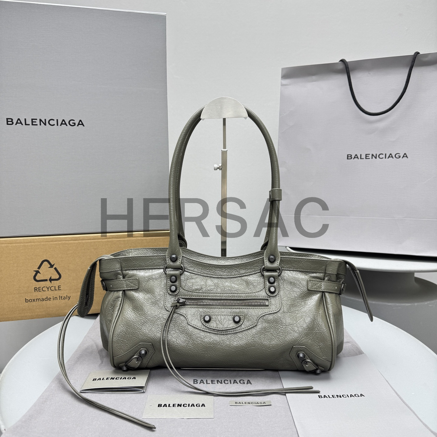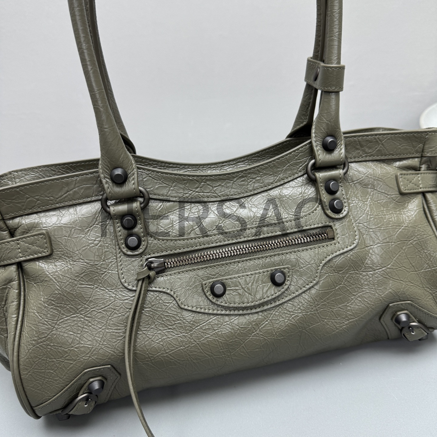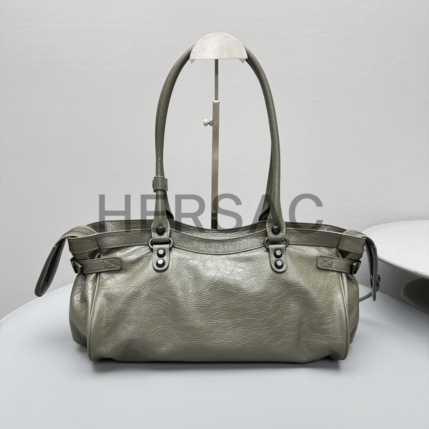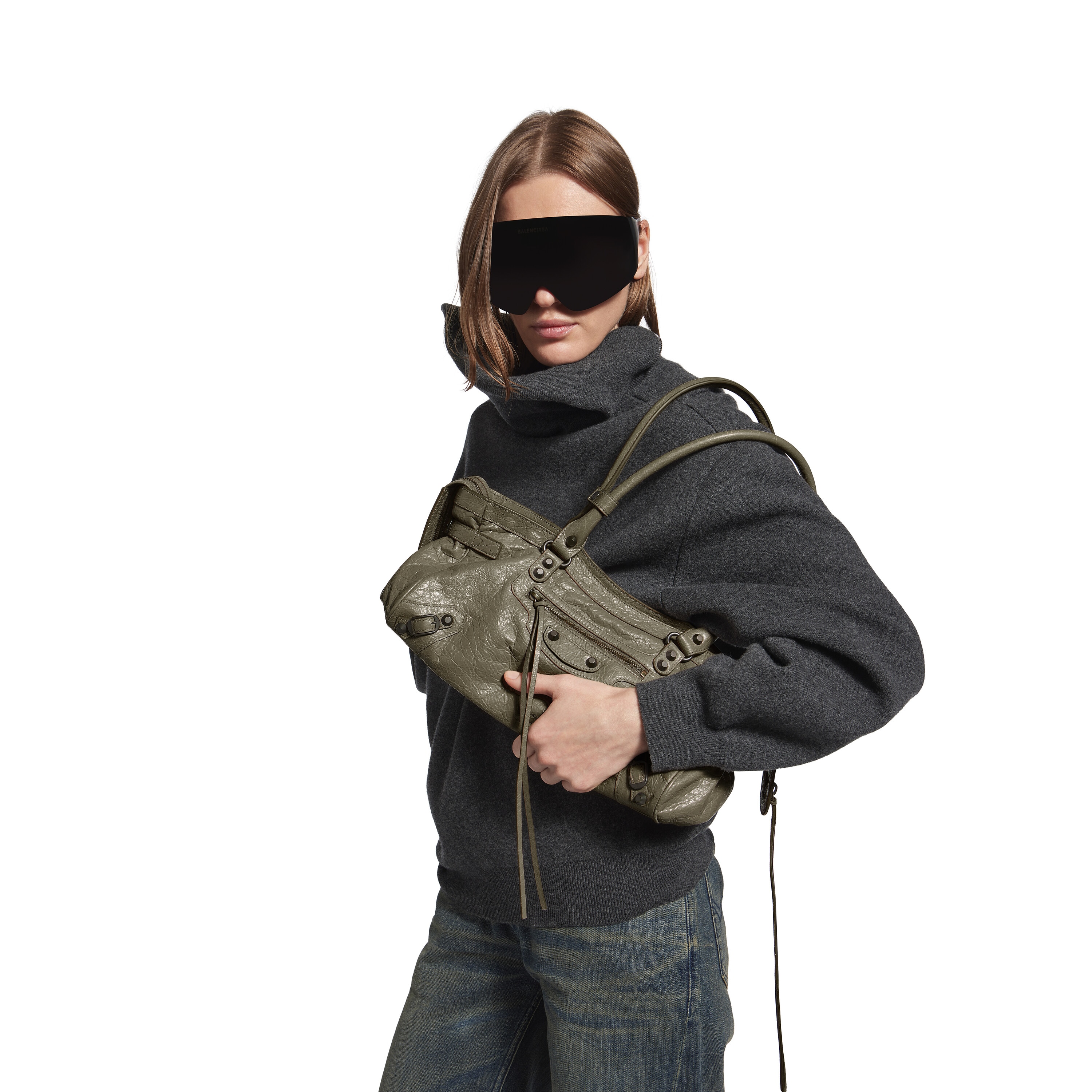 발렌시아가 여성 르 시티 백 이스트-웨스트 아미 그린 8457042ABEK3258