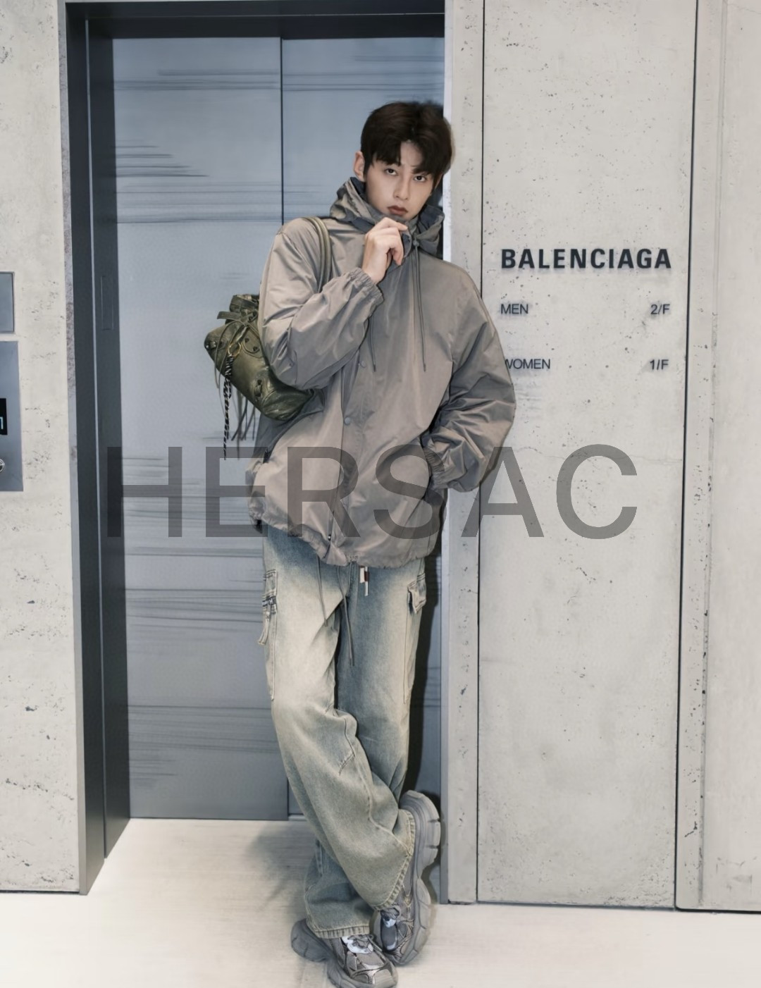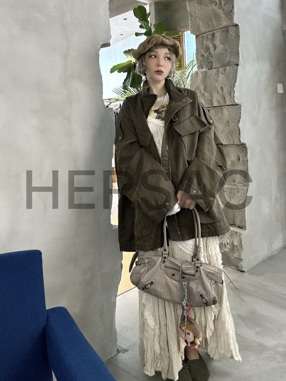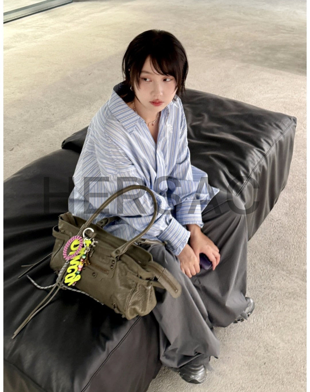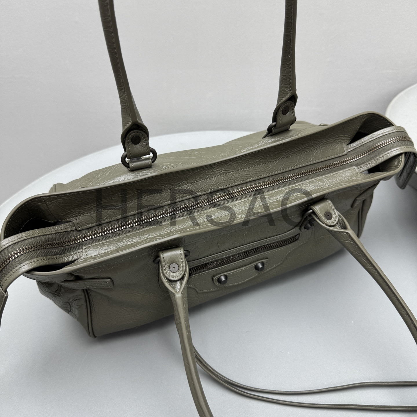 발렌시아가 여성 르 시티 백 이스트-웨스트 아미 그린 8457042ABEK3258