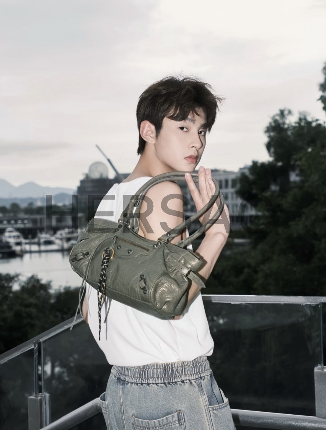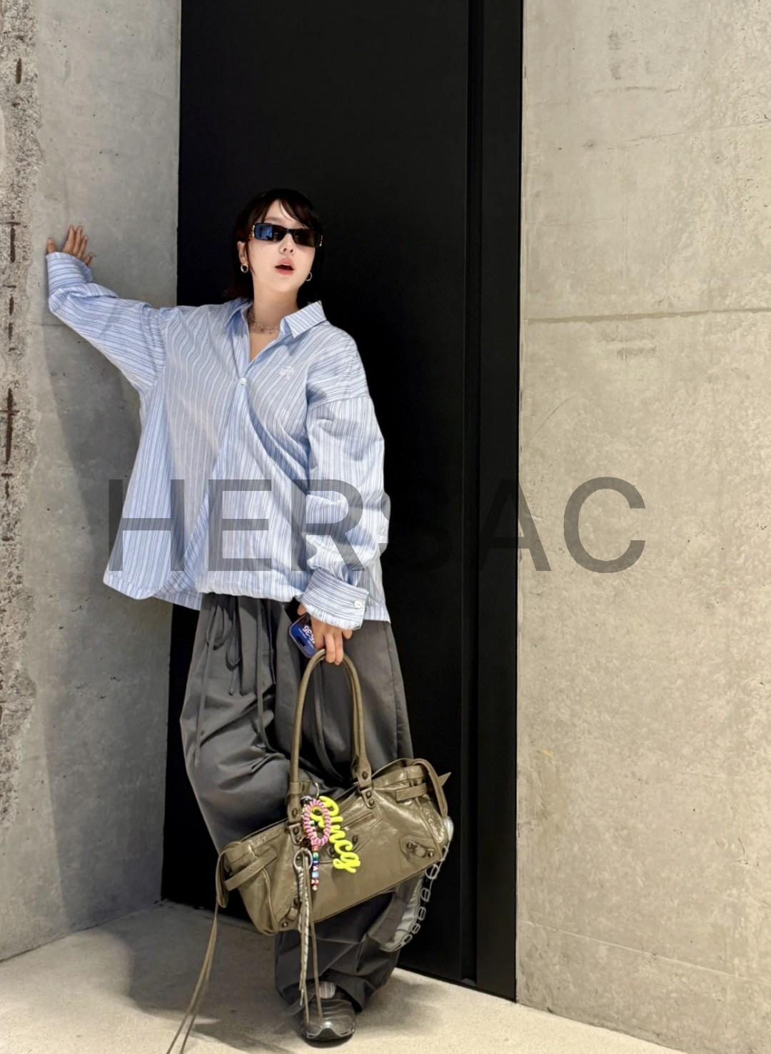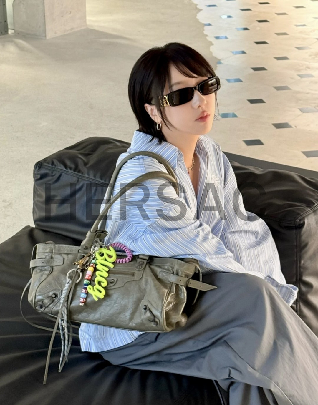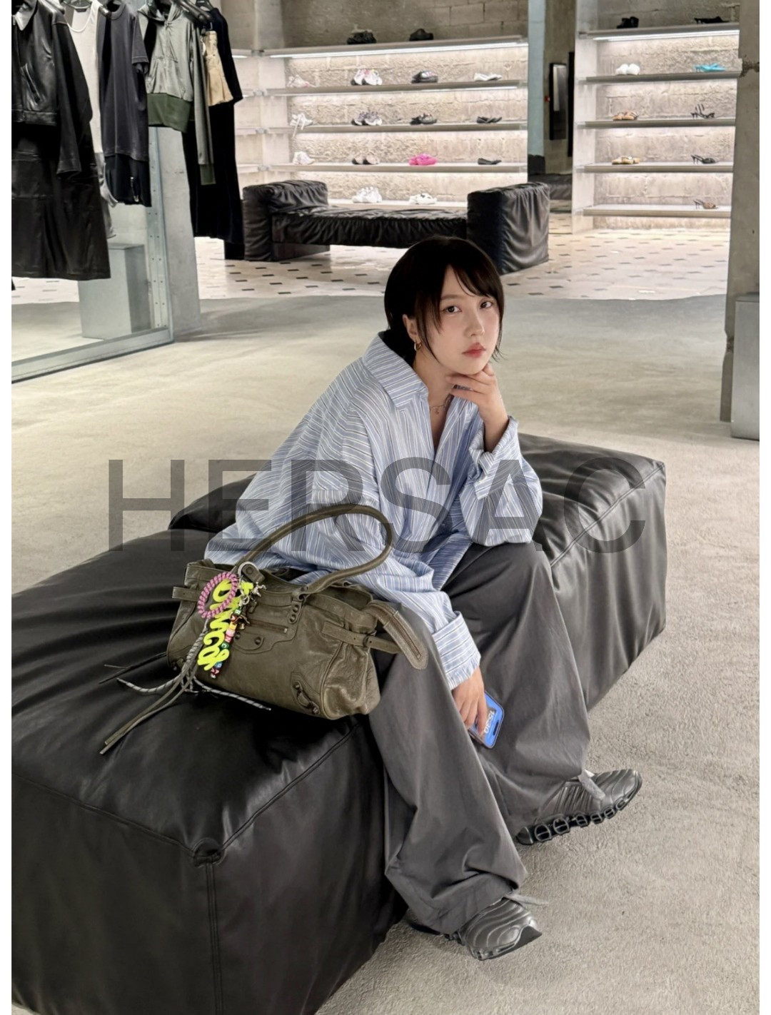 발렌시아가 여성 르 시티 백 이스트-웨스트 아미 그린 8457042ABEK3258