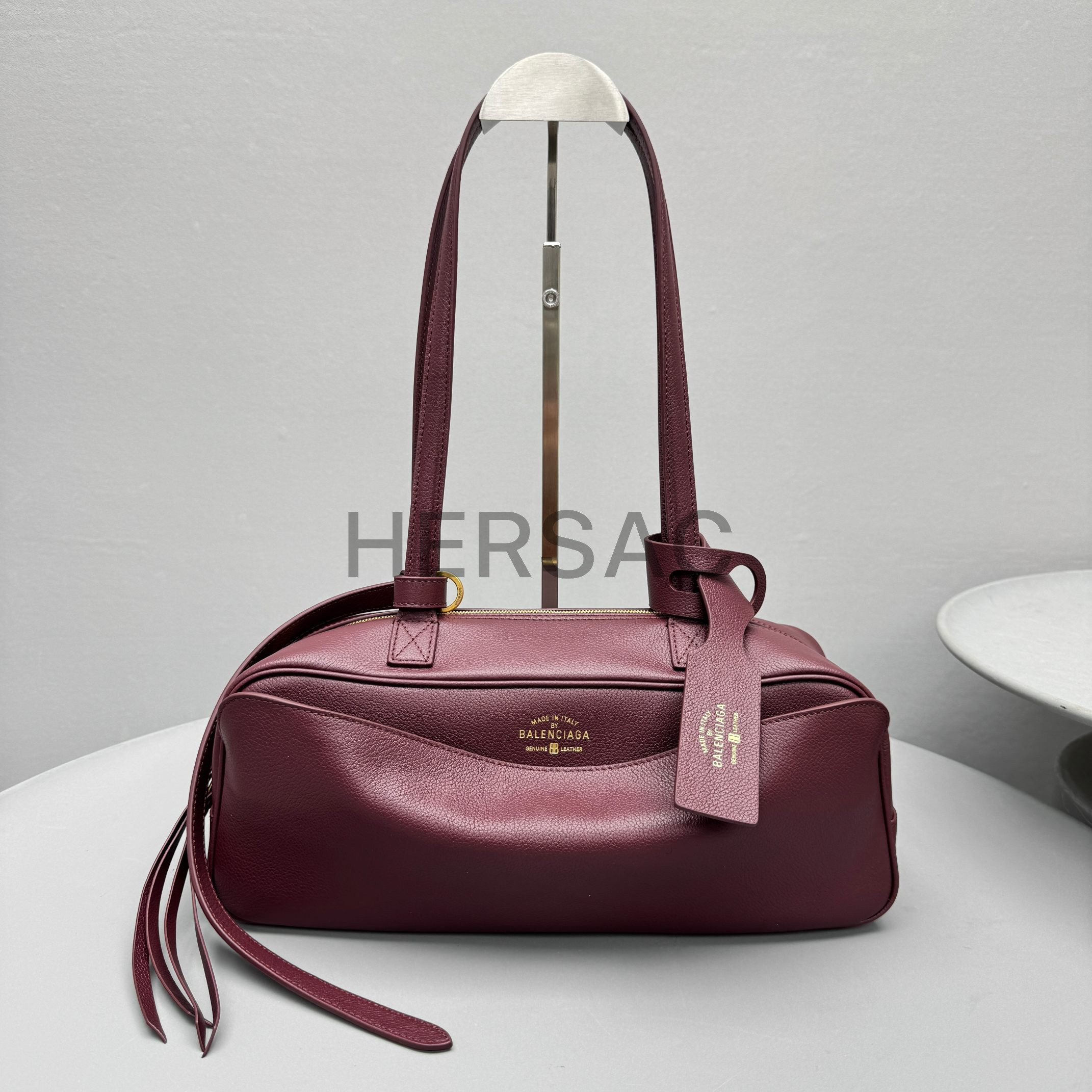 발렌시아가 여성 캐리 볼링백 스몰 다크 버건디 8329202ABNQ6036