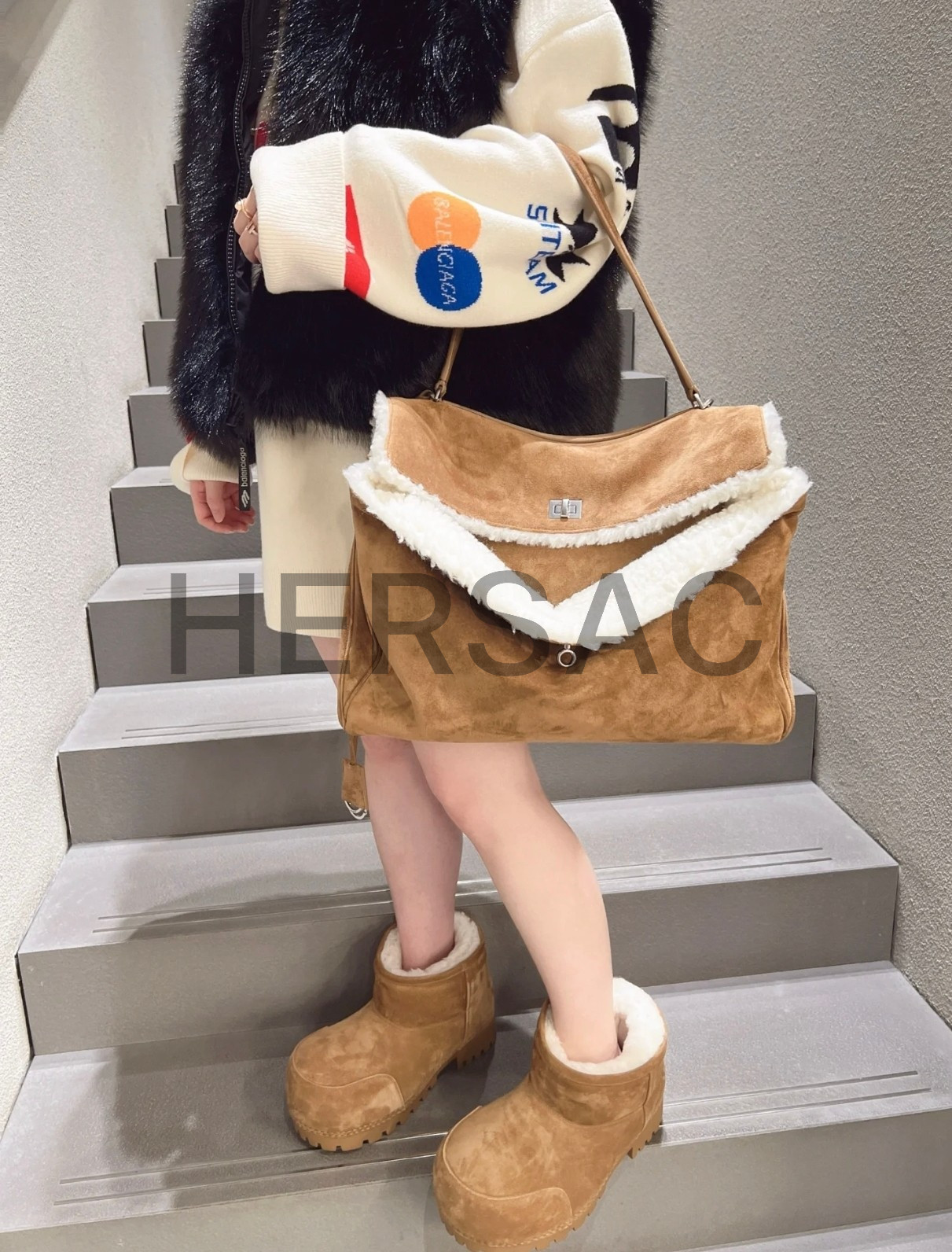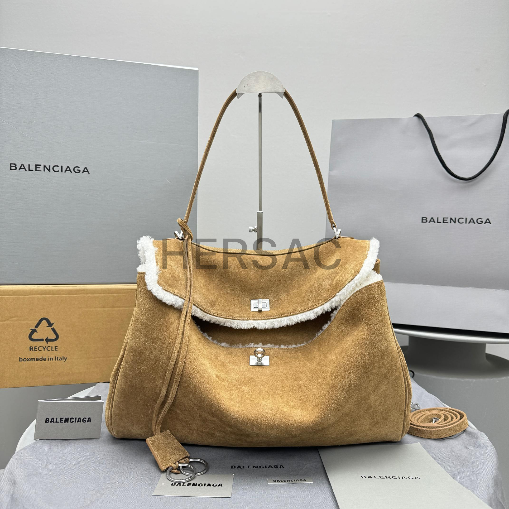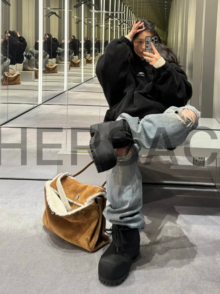 발렌시아가 비스킷 스웨이드 라지 로데오 핸드 백 7897442ABAD2590