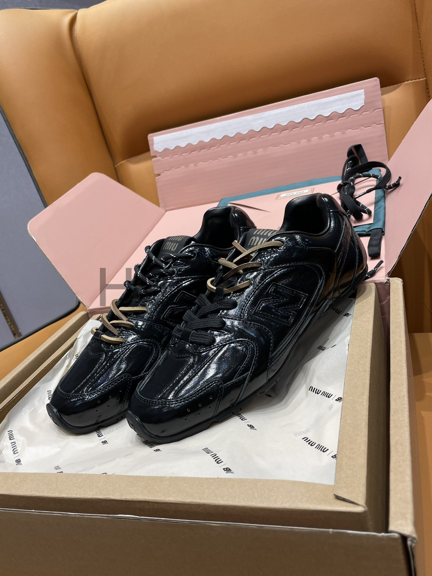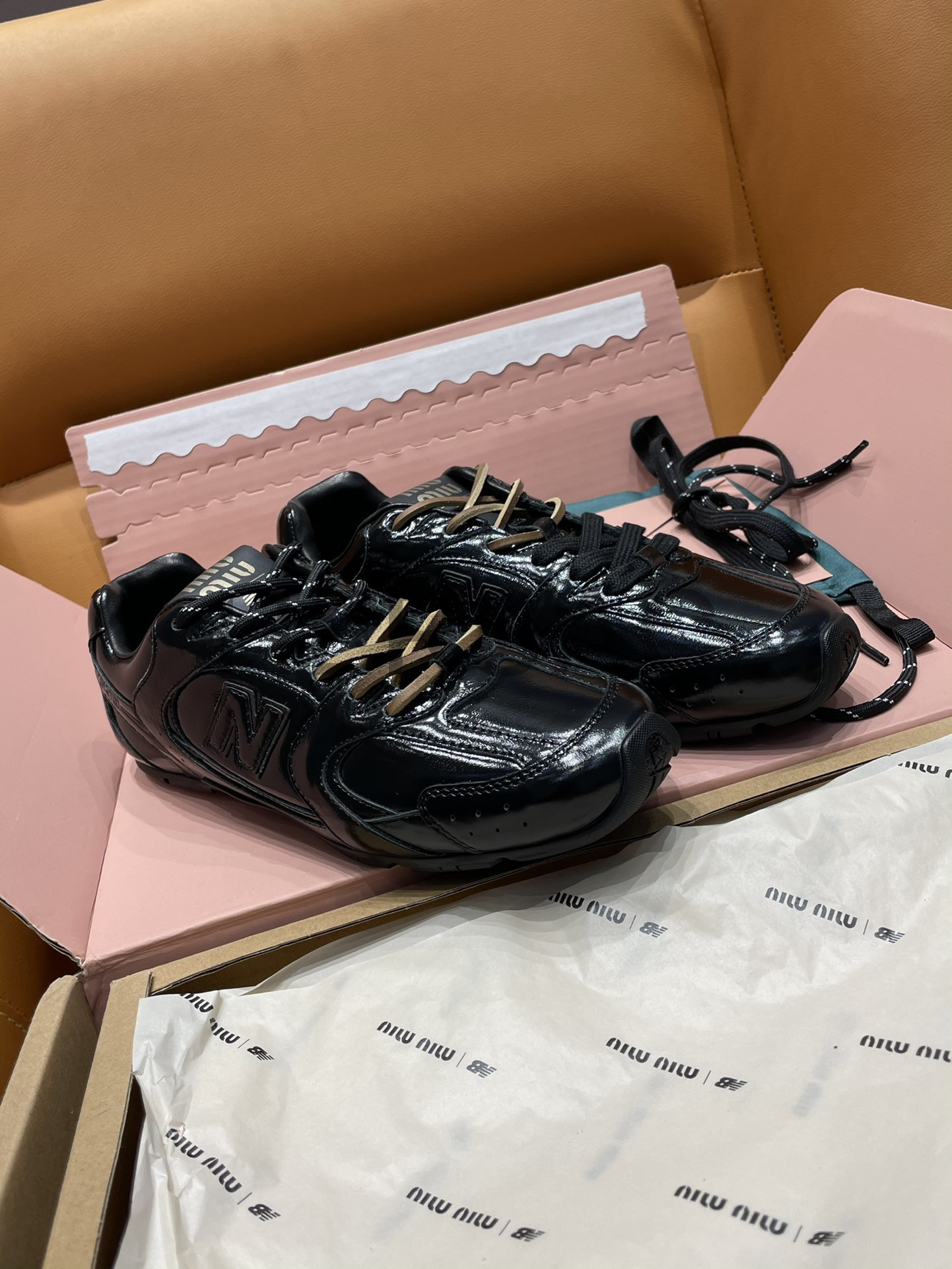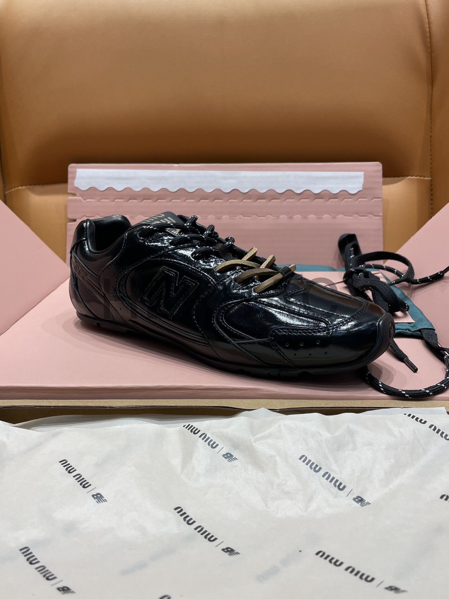 미우미우 뉴발란스 x 미우 미우 530 SL 페이던트 레더 스니커즈 블랙 5E165E_H27_F0002_F_D005