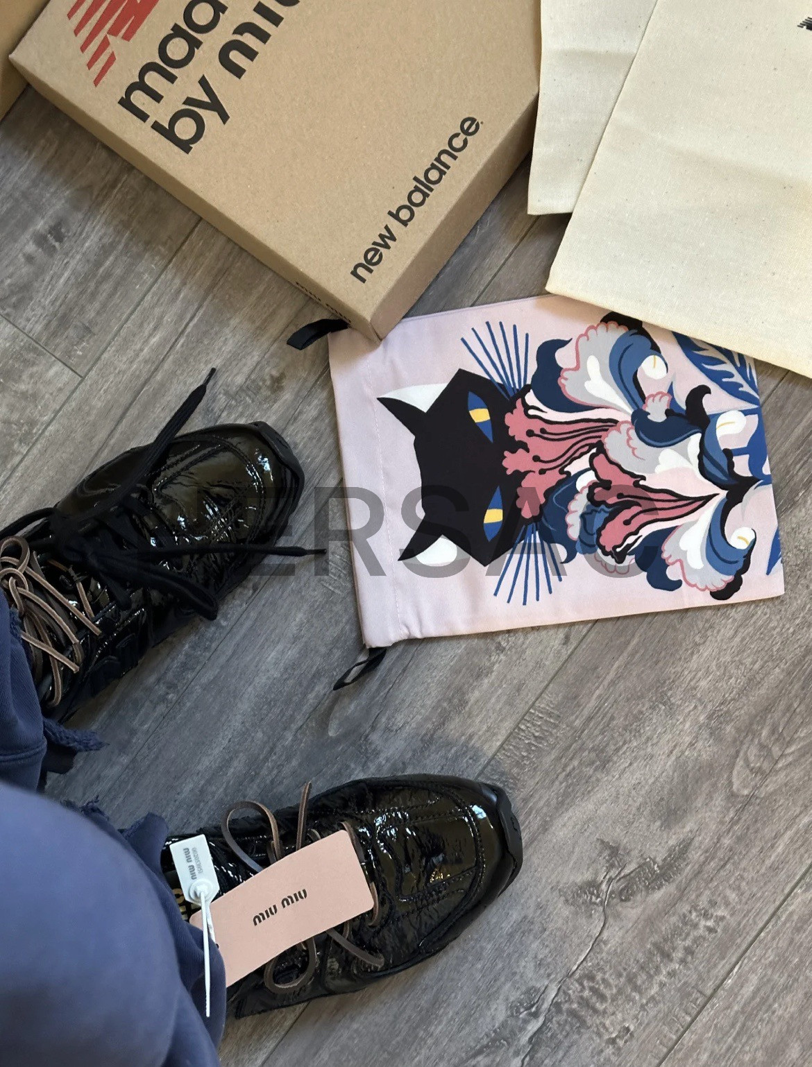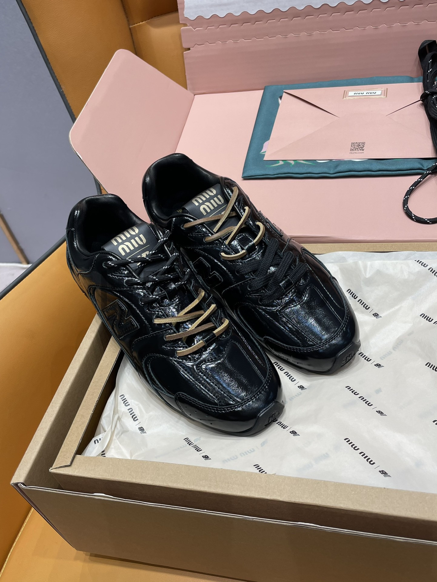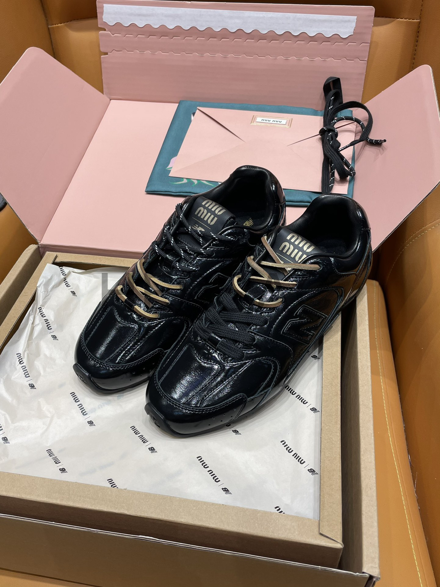 미우미우 뉴발란스 x 미우 미우 530 SL 페이던트 레더 스니커즈 블랙 5E165E_H27_F0002_F_D005