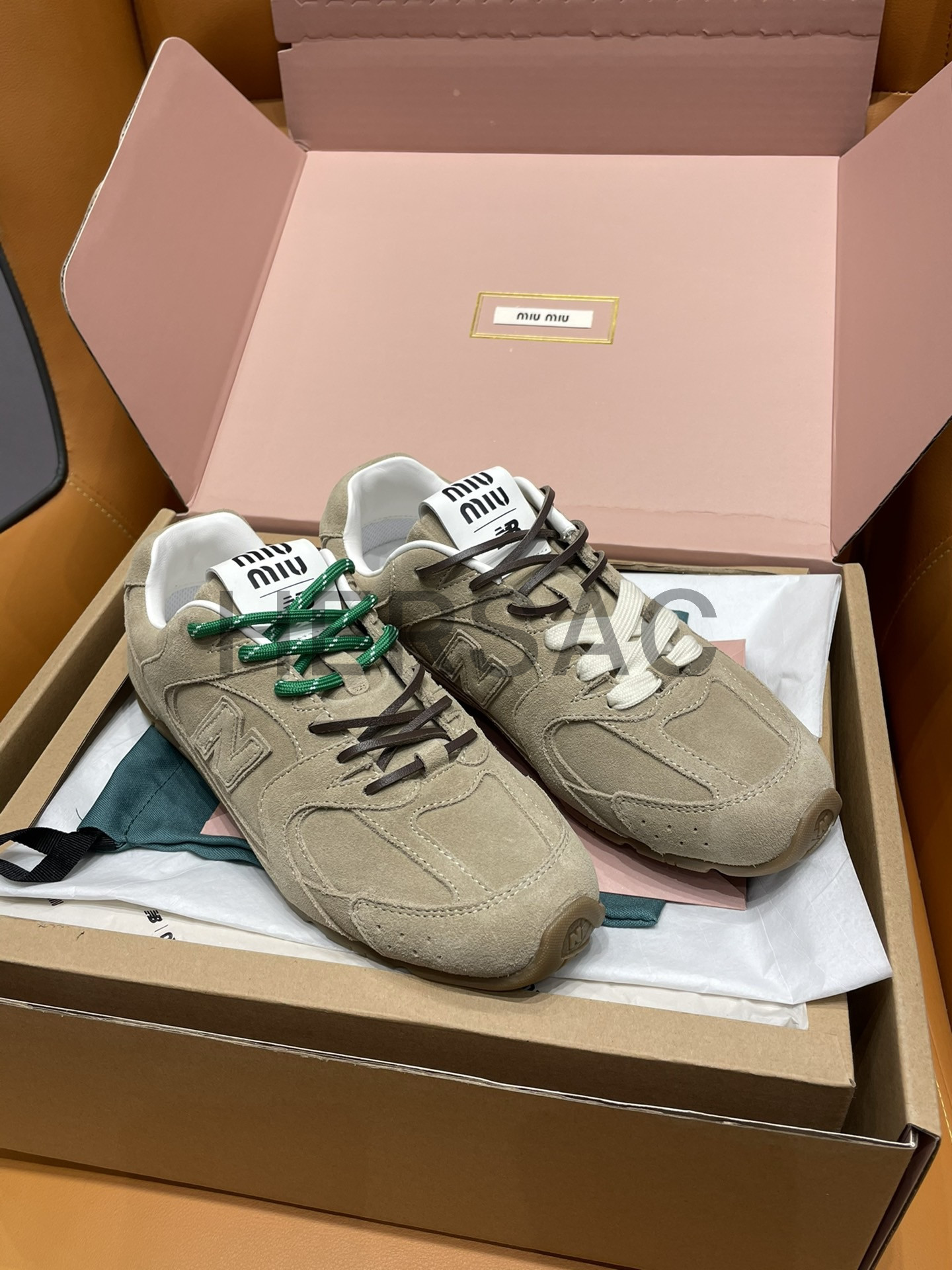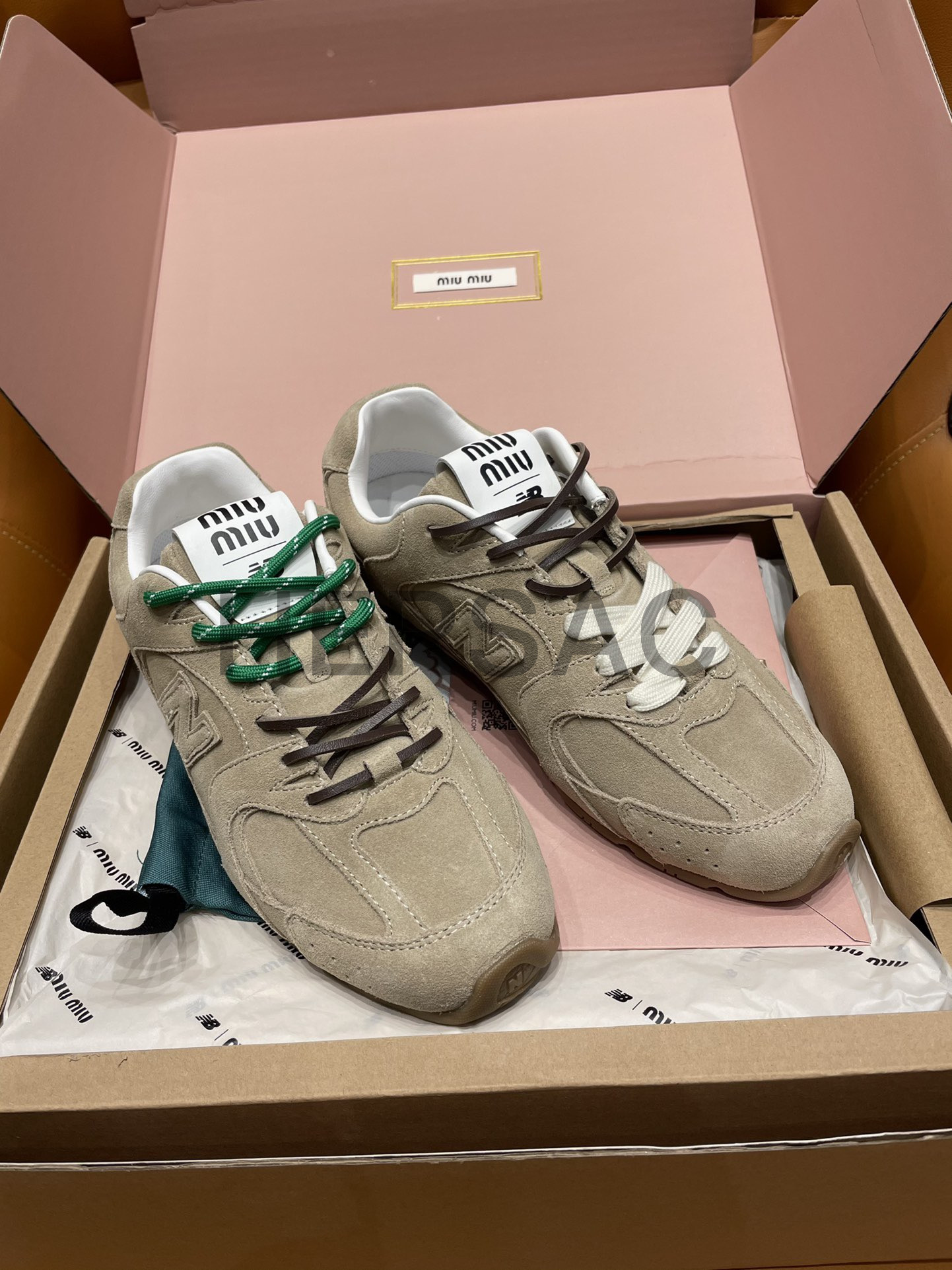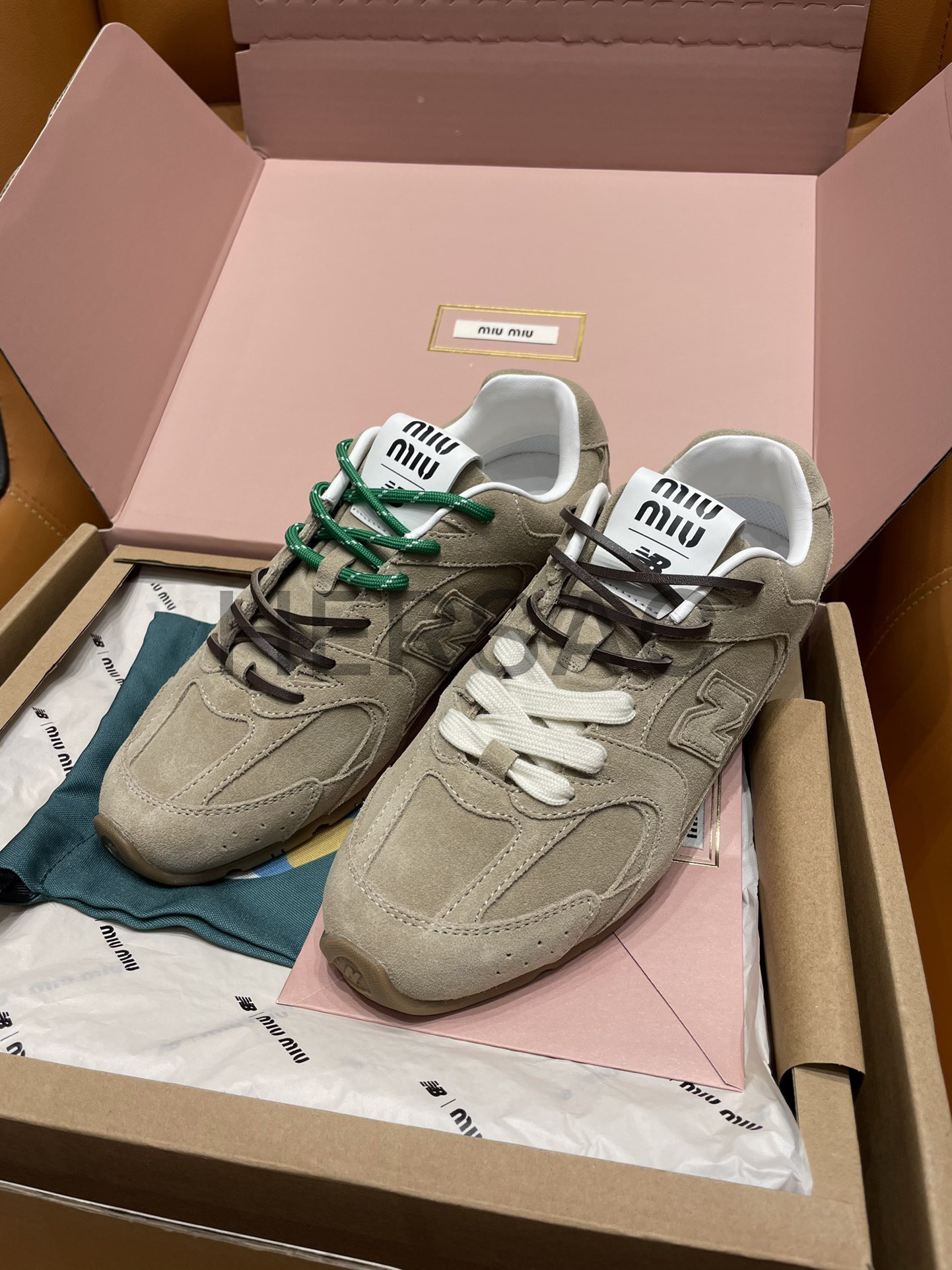 미우미우 뉴발란스 X 미우미우 스웨이드 및 메쉬 스니커즈 5E165E_Z5O_F0379_F_D005