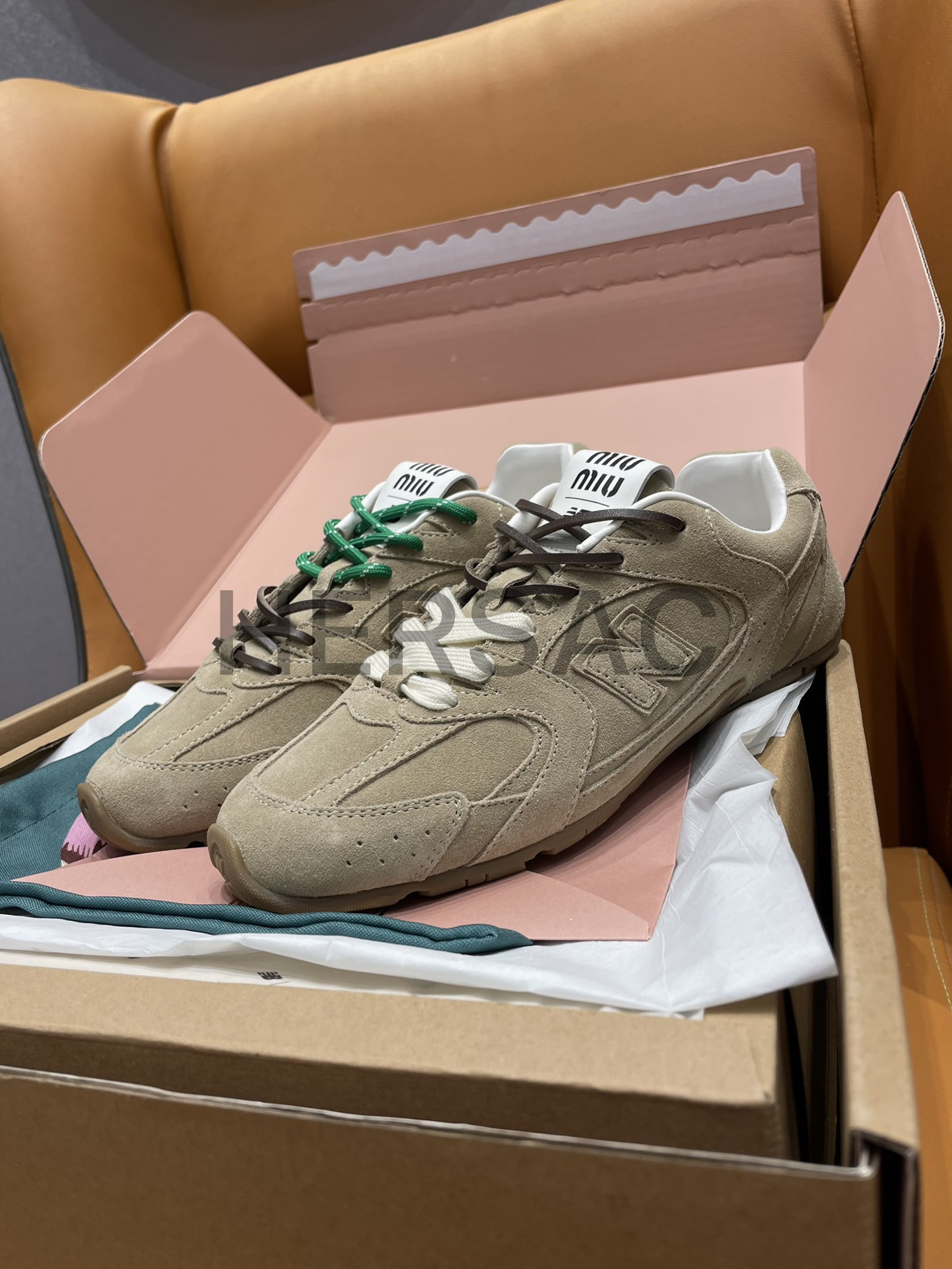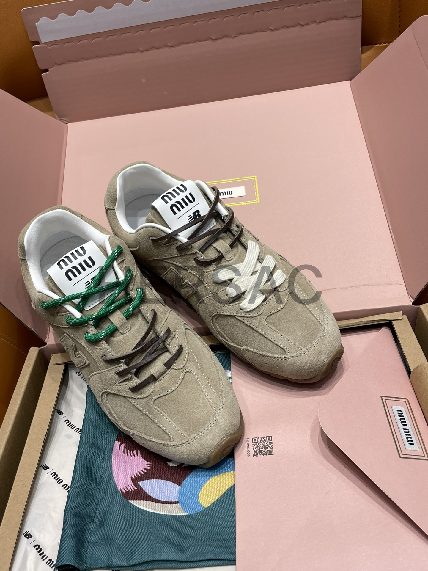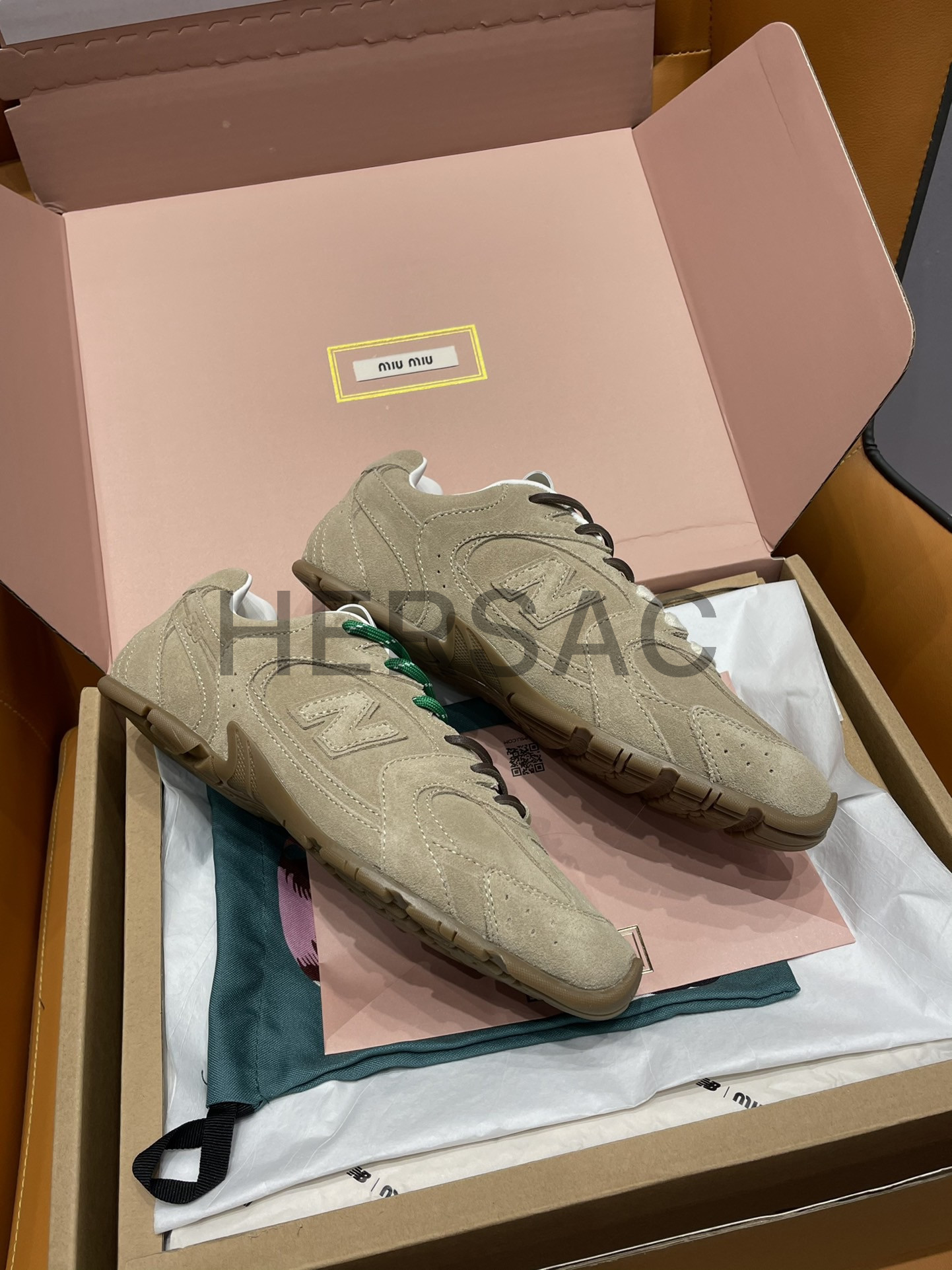 미우미우 뉴발란스 X 미우미우 스웨이드 및 메쉬 스니커즈 5E165E_Z5O_F0379_F_D005
