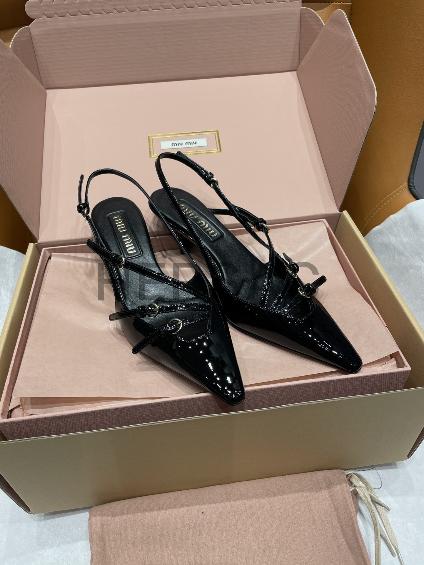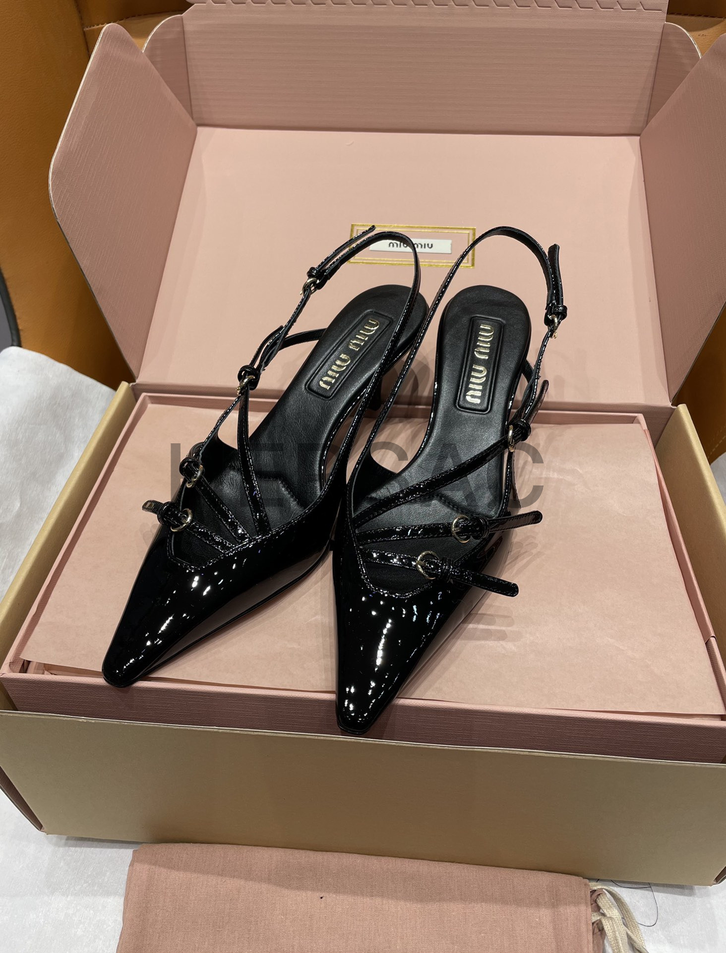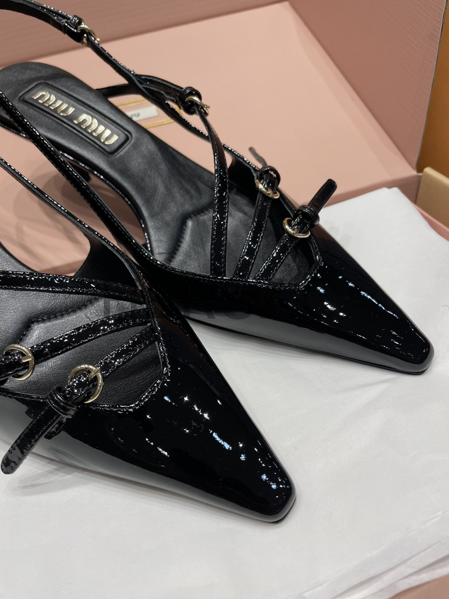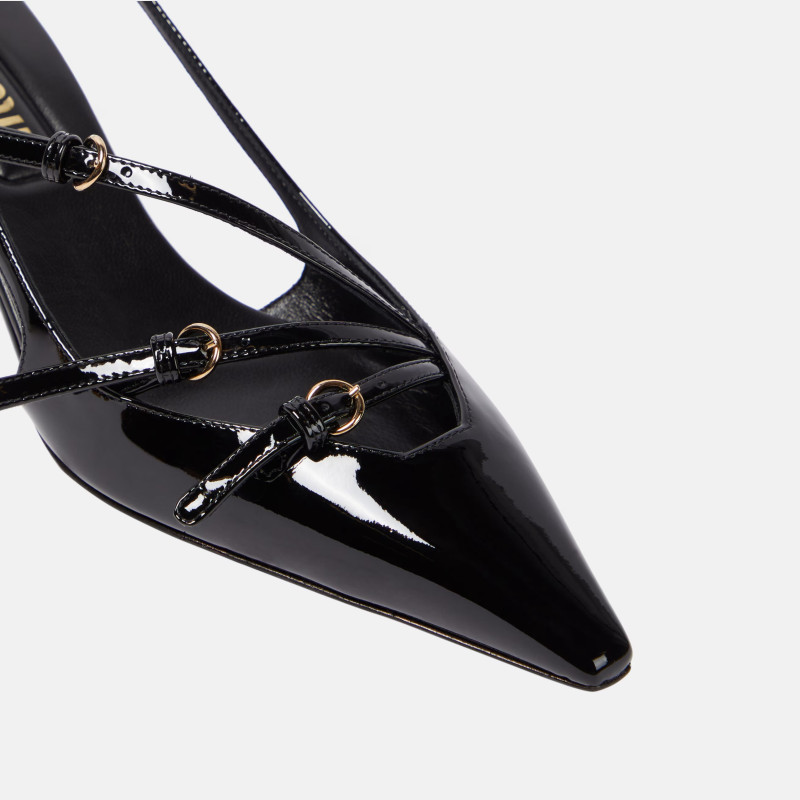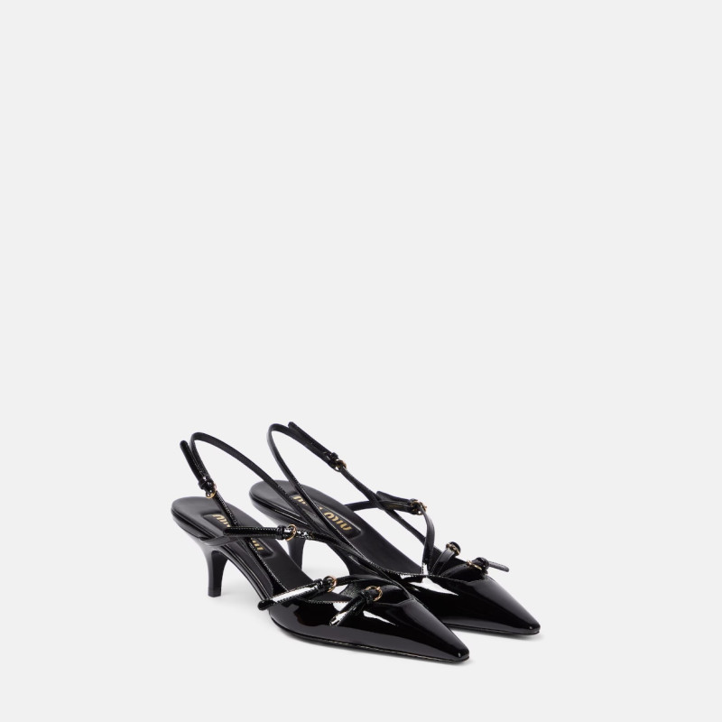미우미우 버클 장식의 에나멜 가죽 슬링백 5I013EM055069