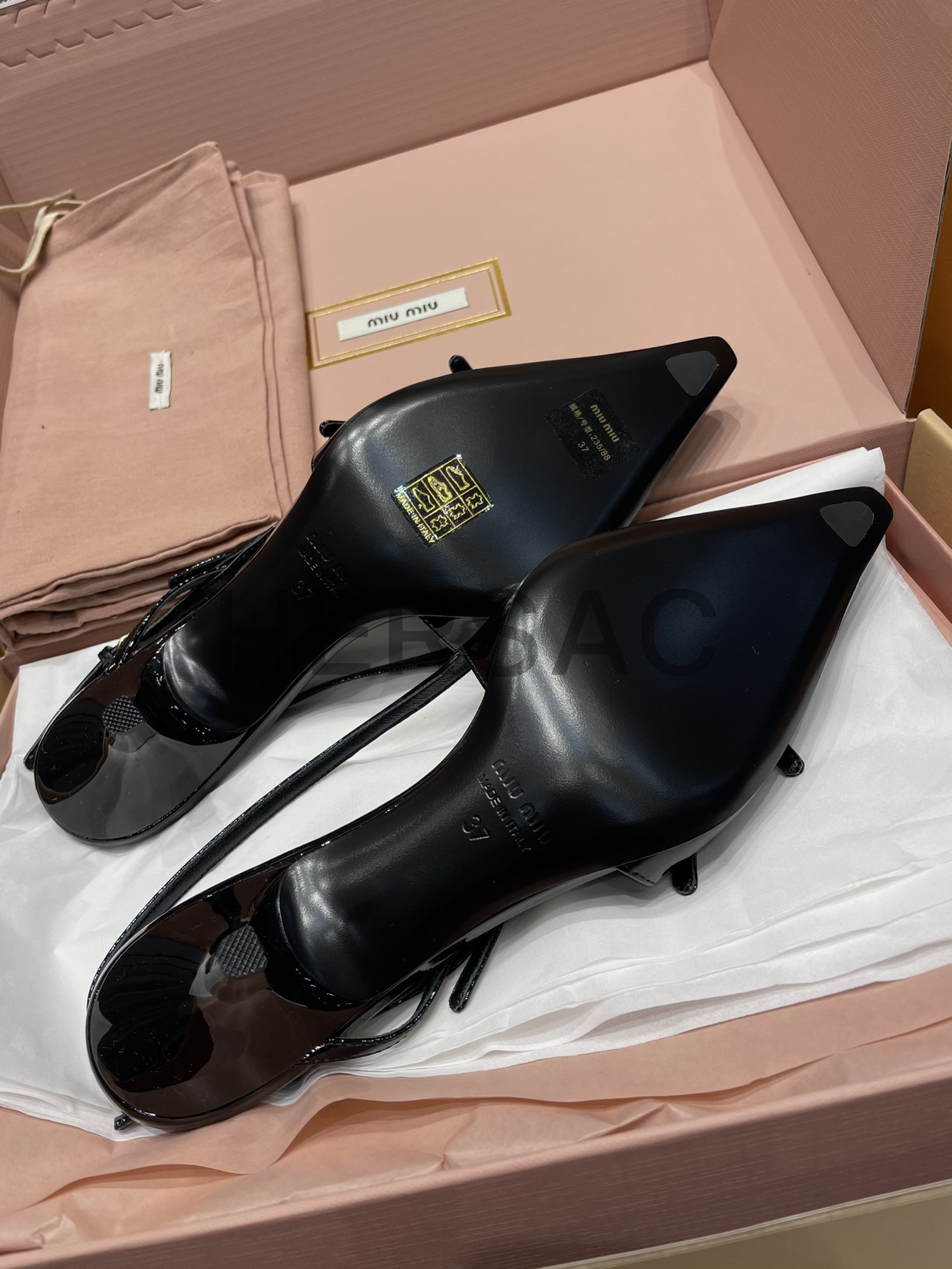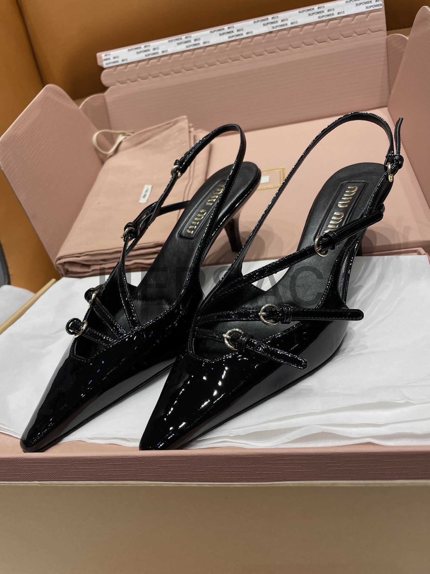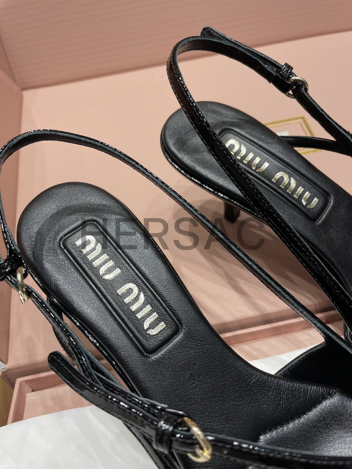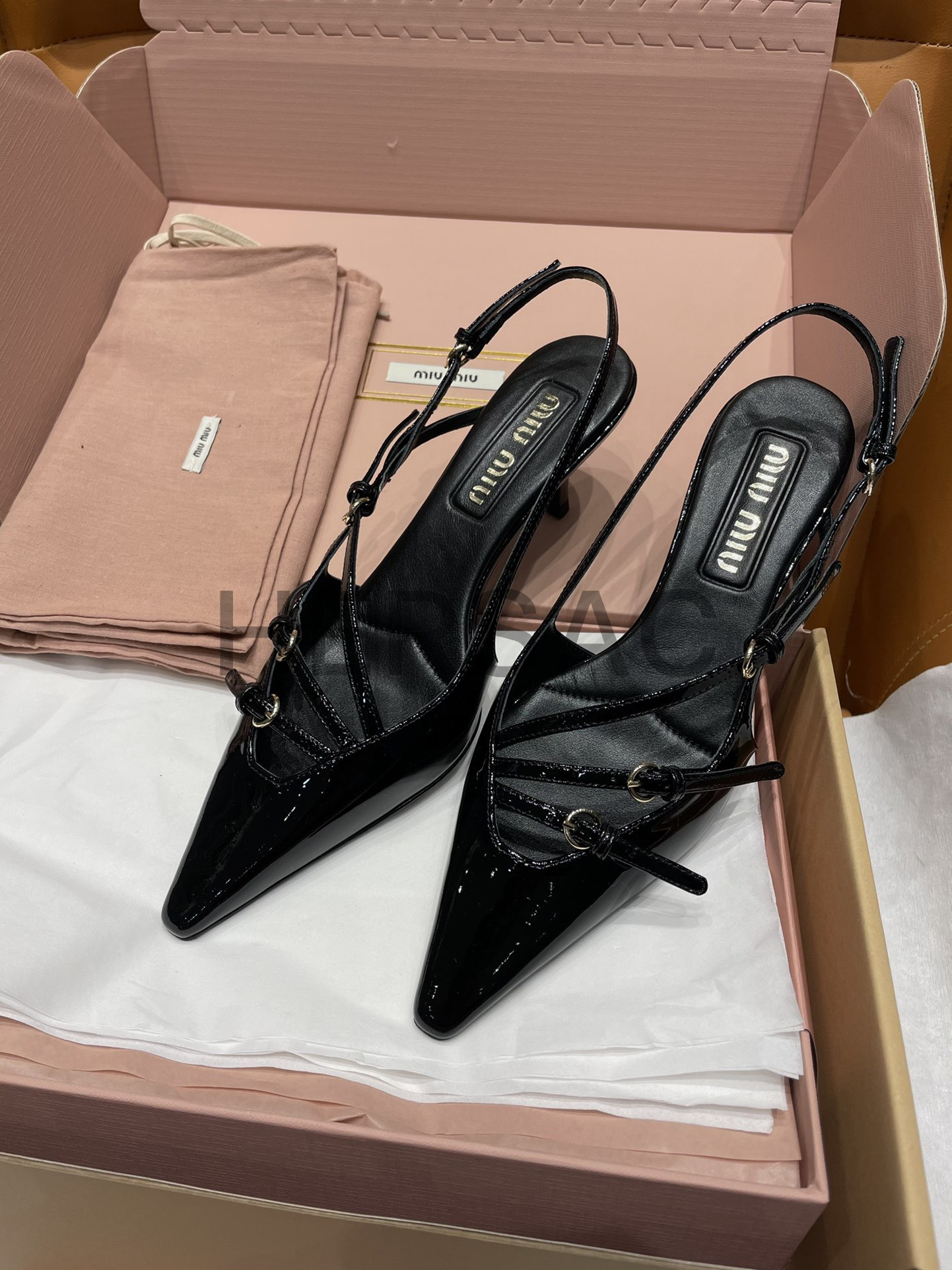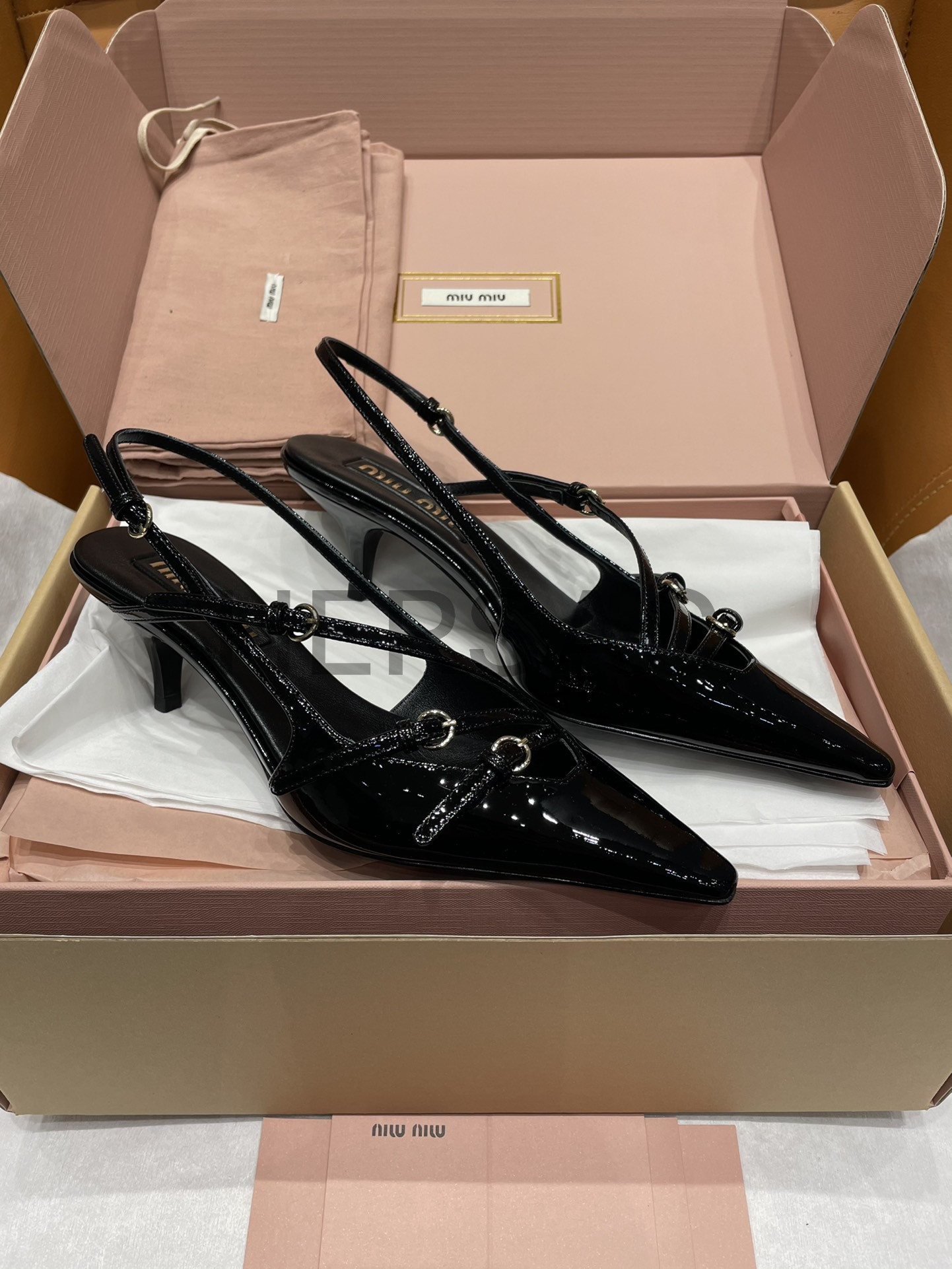 미우미우 버클 장식의 에나멜 가죽 슬링백 5I013EM055069