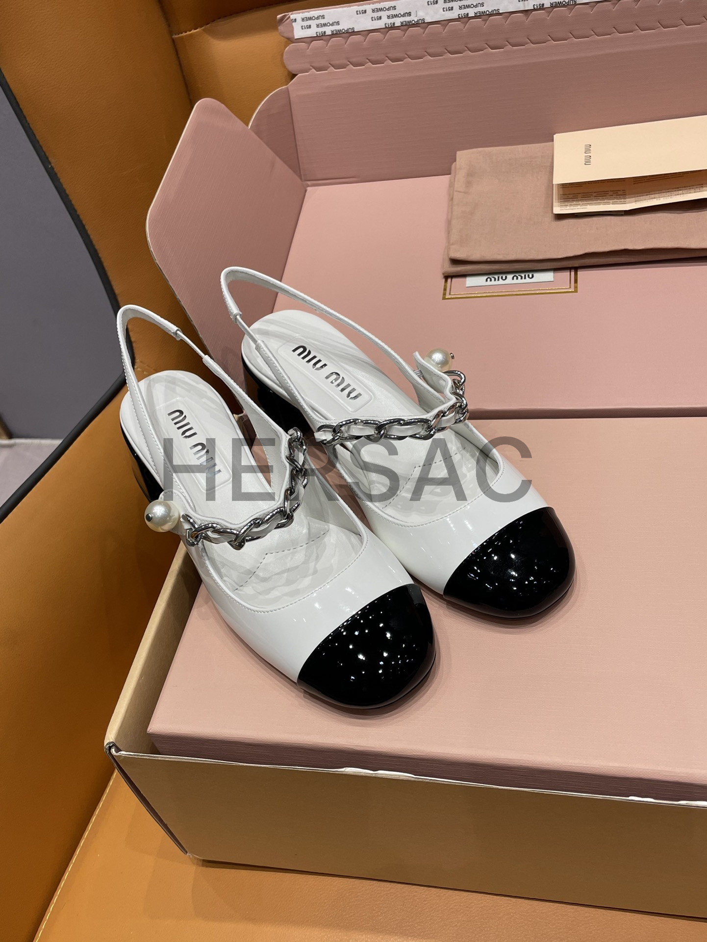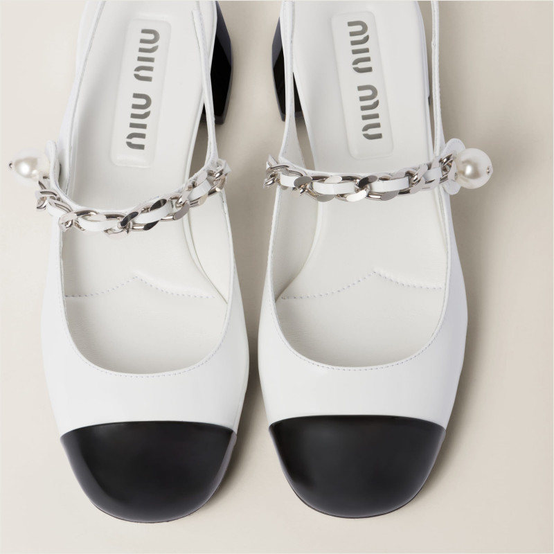 미우미우 투톤 페이턴트 가죽 슬링백 펌프스 5I045E_06E_F0964_F_035