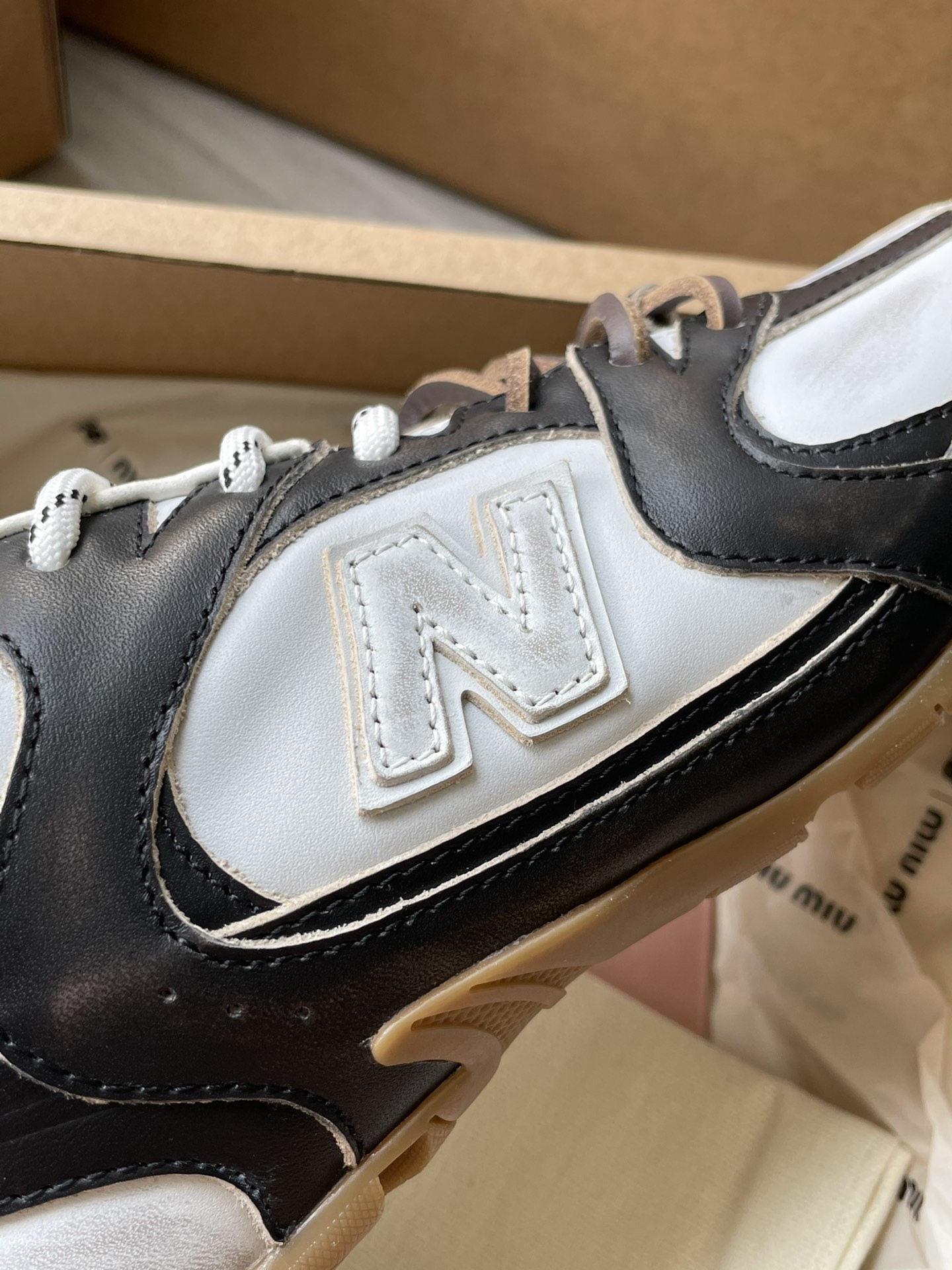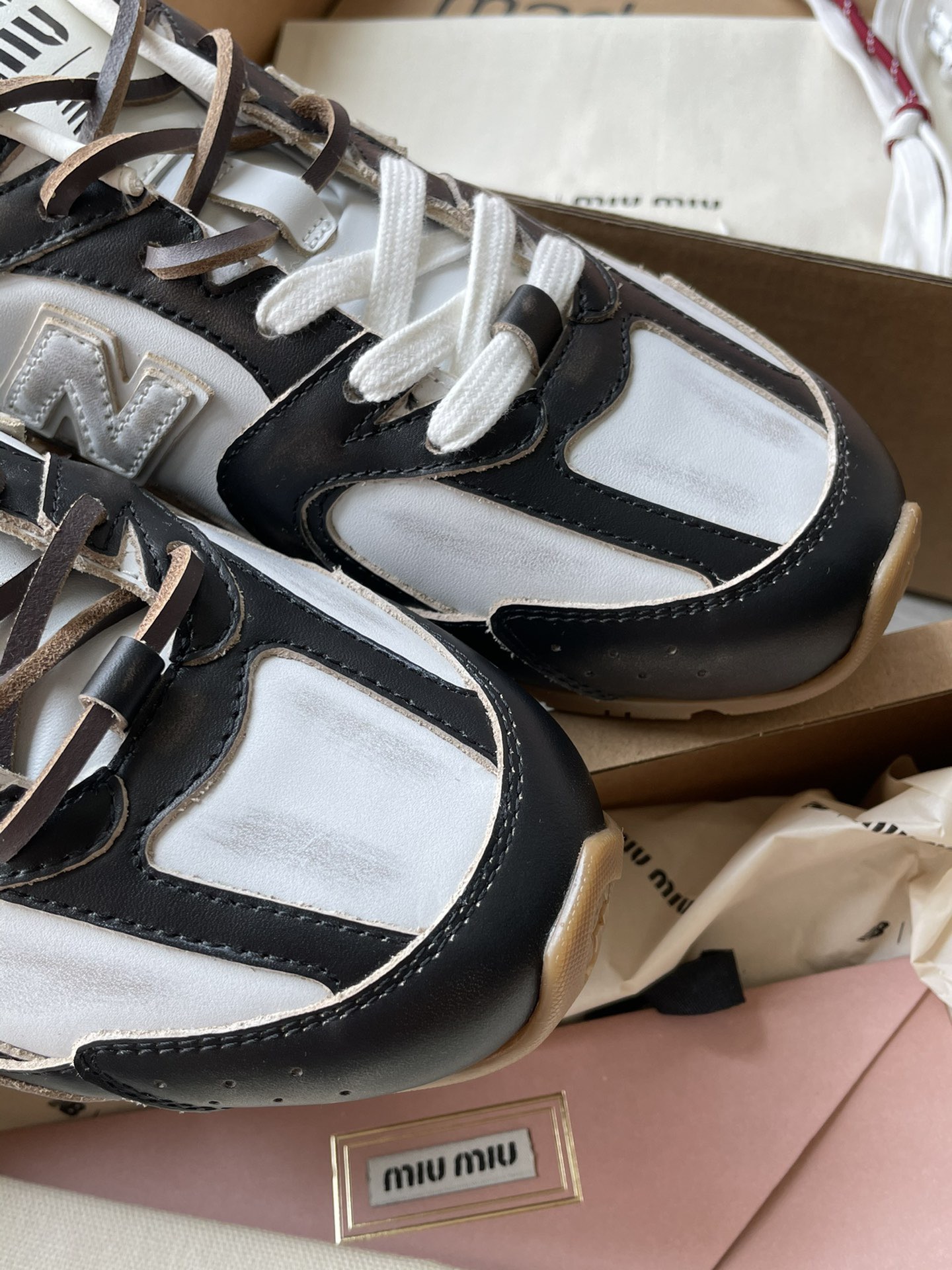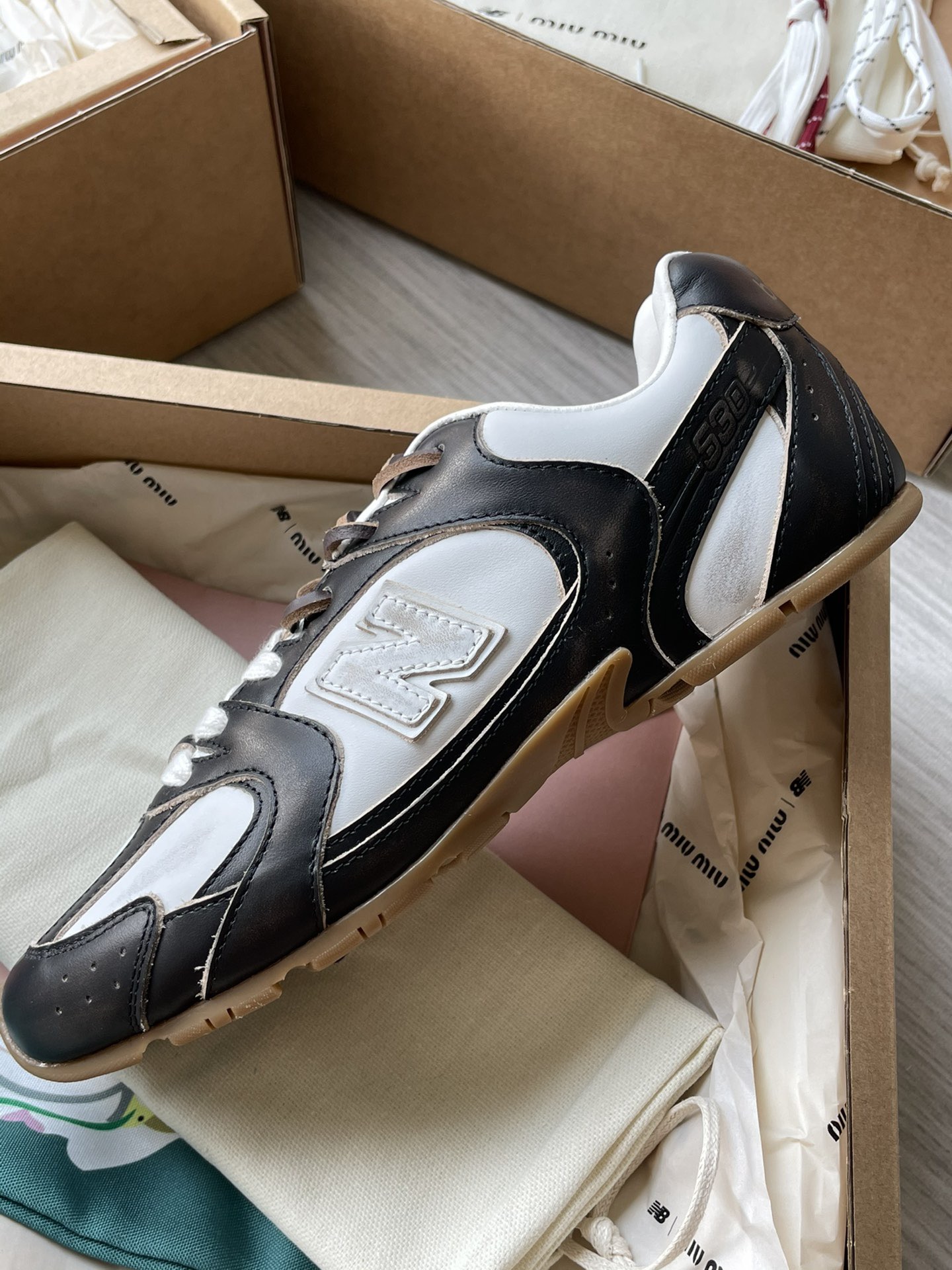 미우미우 뉴발란스 X 미우미우 530 SL 테코 송아지 가죽 스니커즈5E165E_3LOO_F0967_F_D005