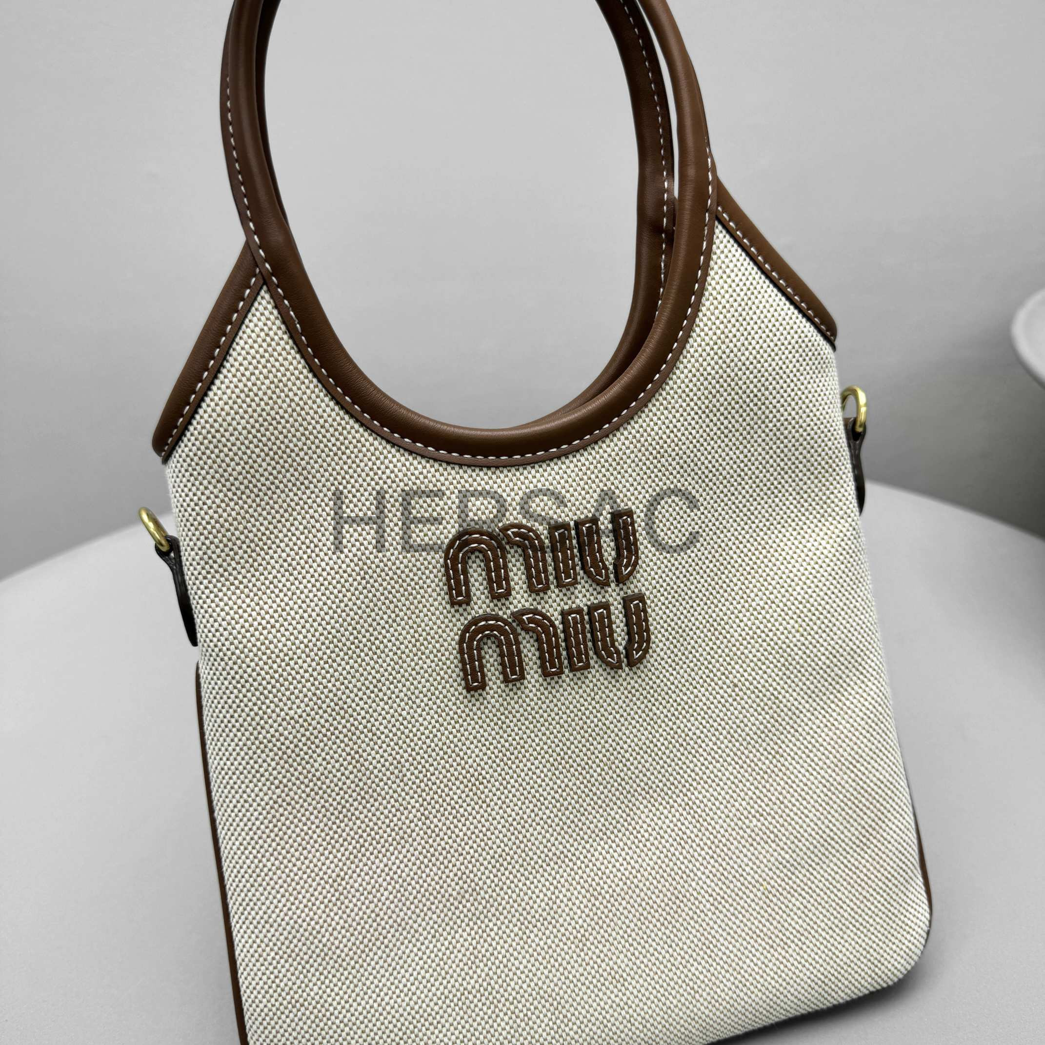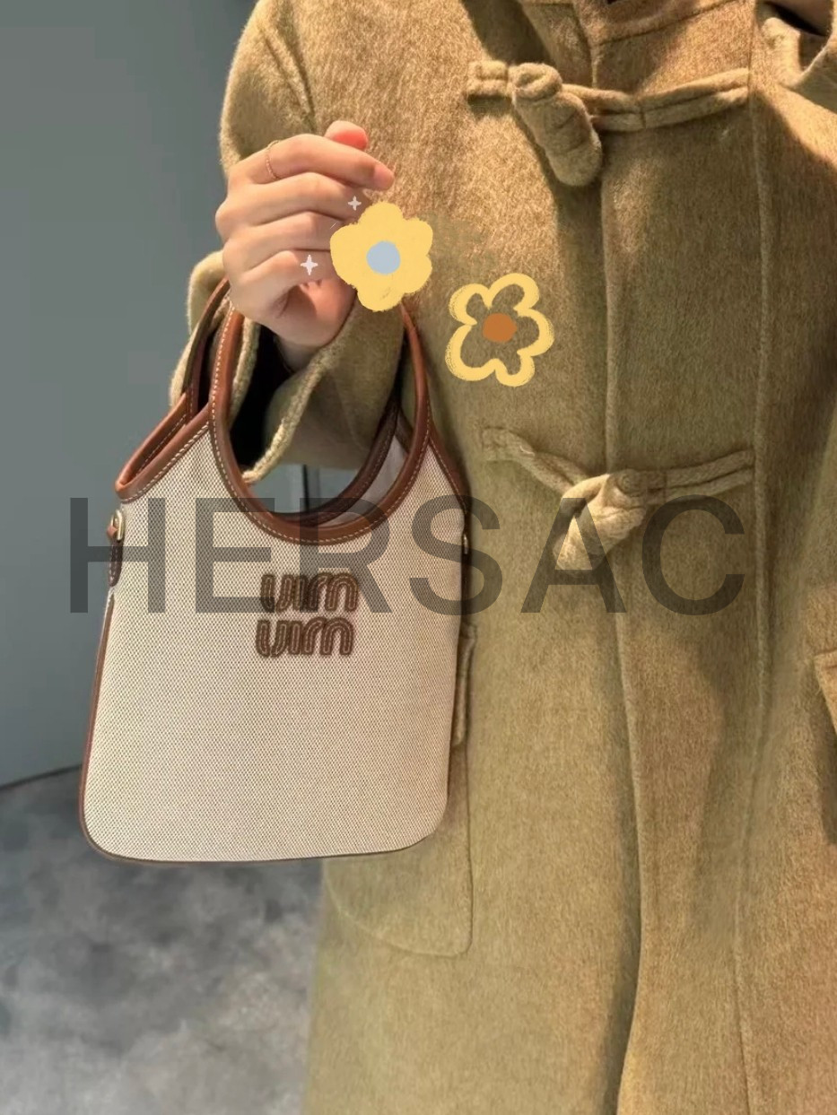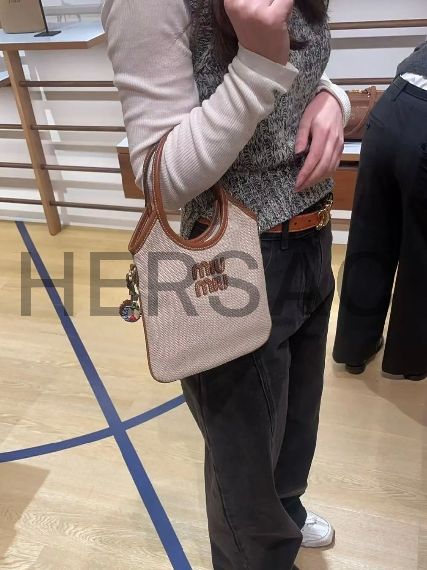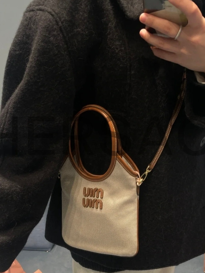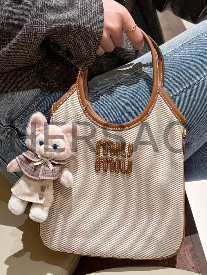 미우 미우 캔버스 및 가죽 아이비 백 5BA281_ACRN_F062F_V_OLF