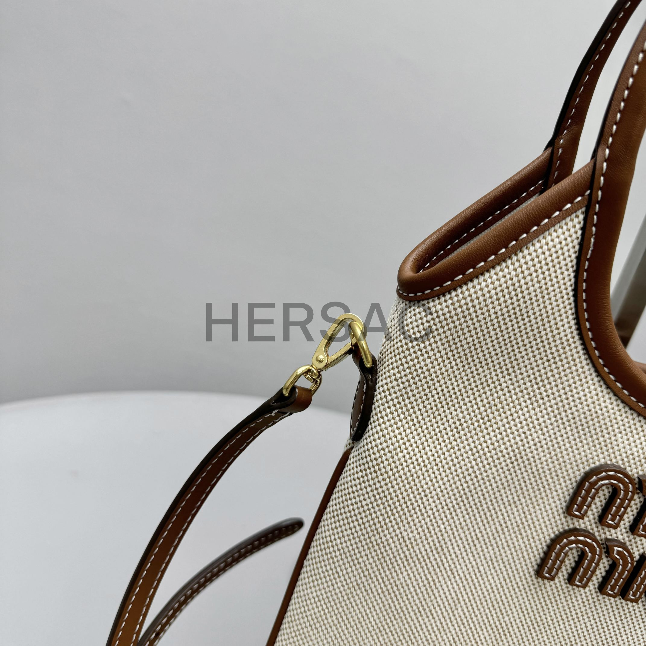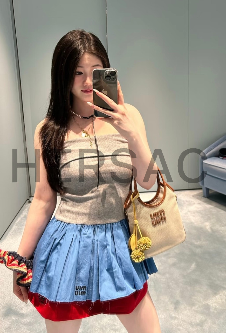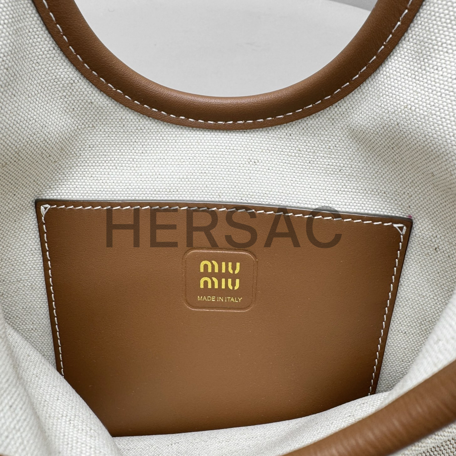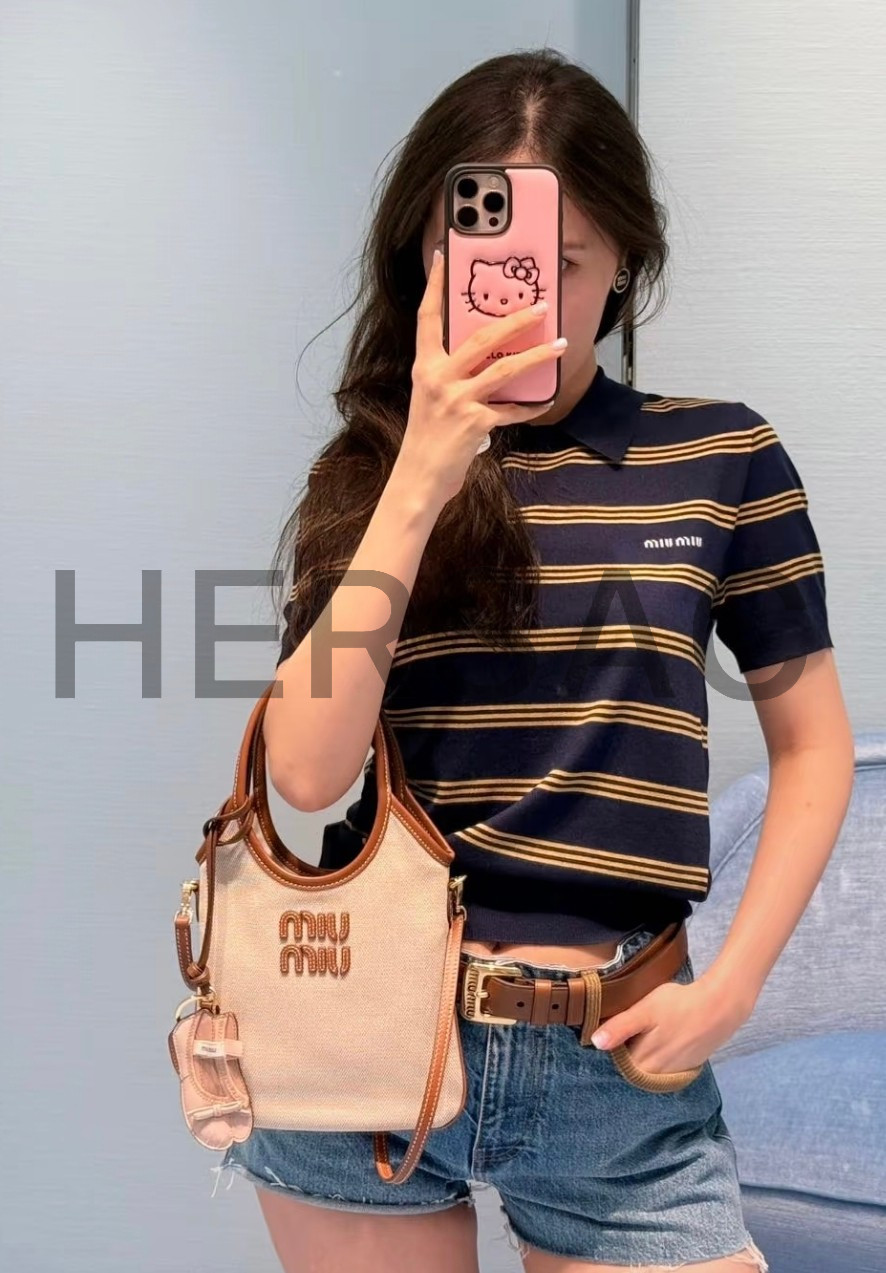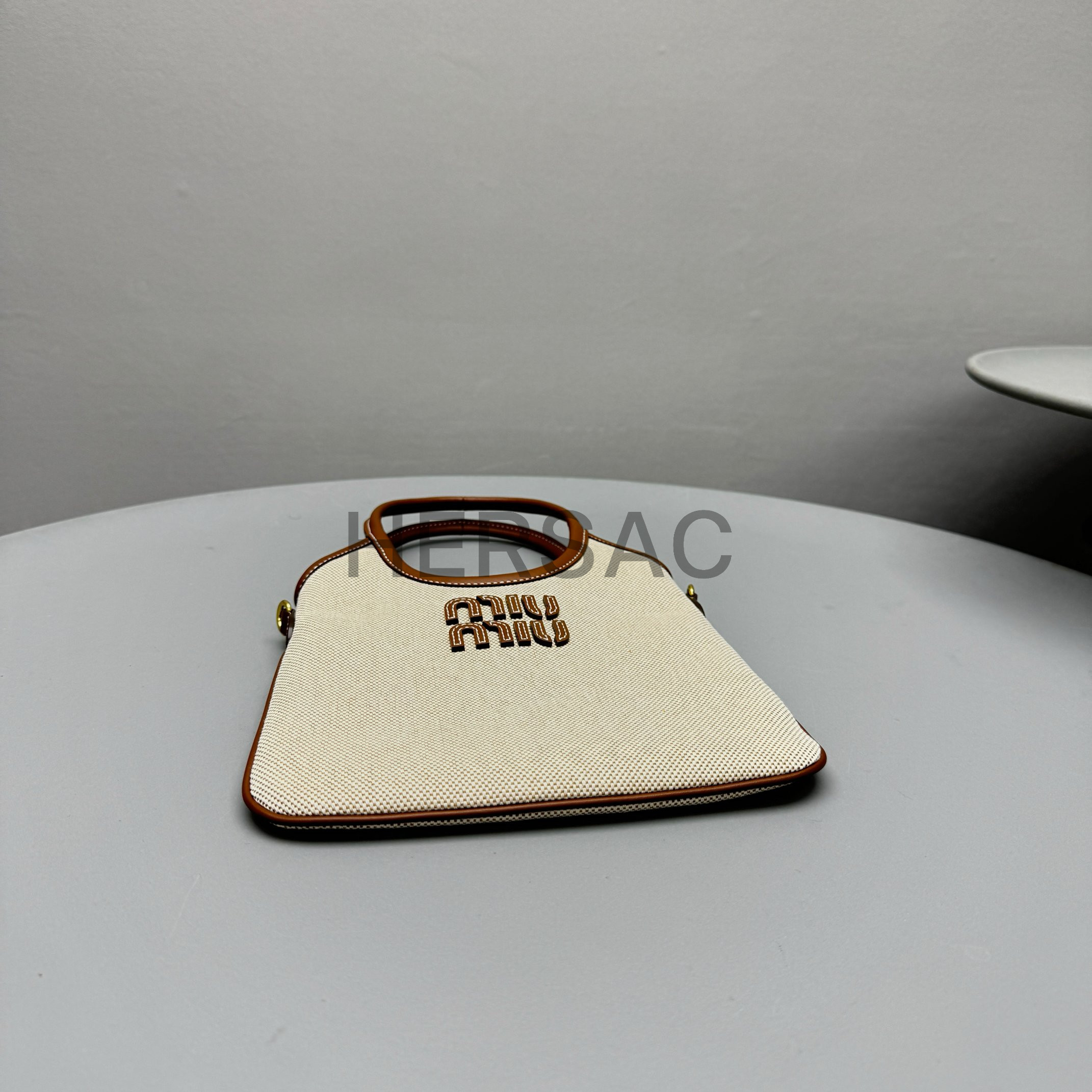 미우 미우 캔버스 및 가죽 아이비 백 5BA281_ACRN_F062F_V_OLF