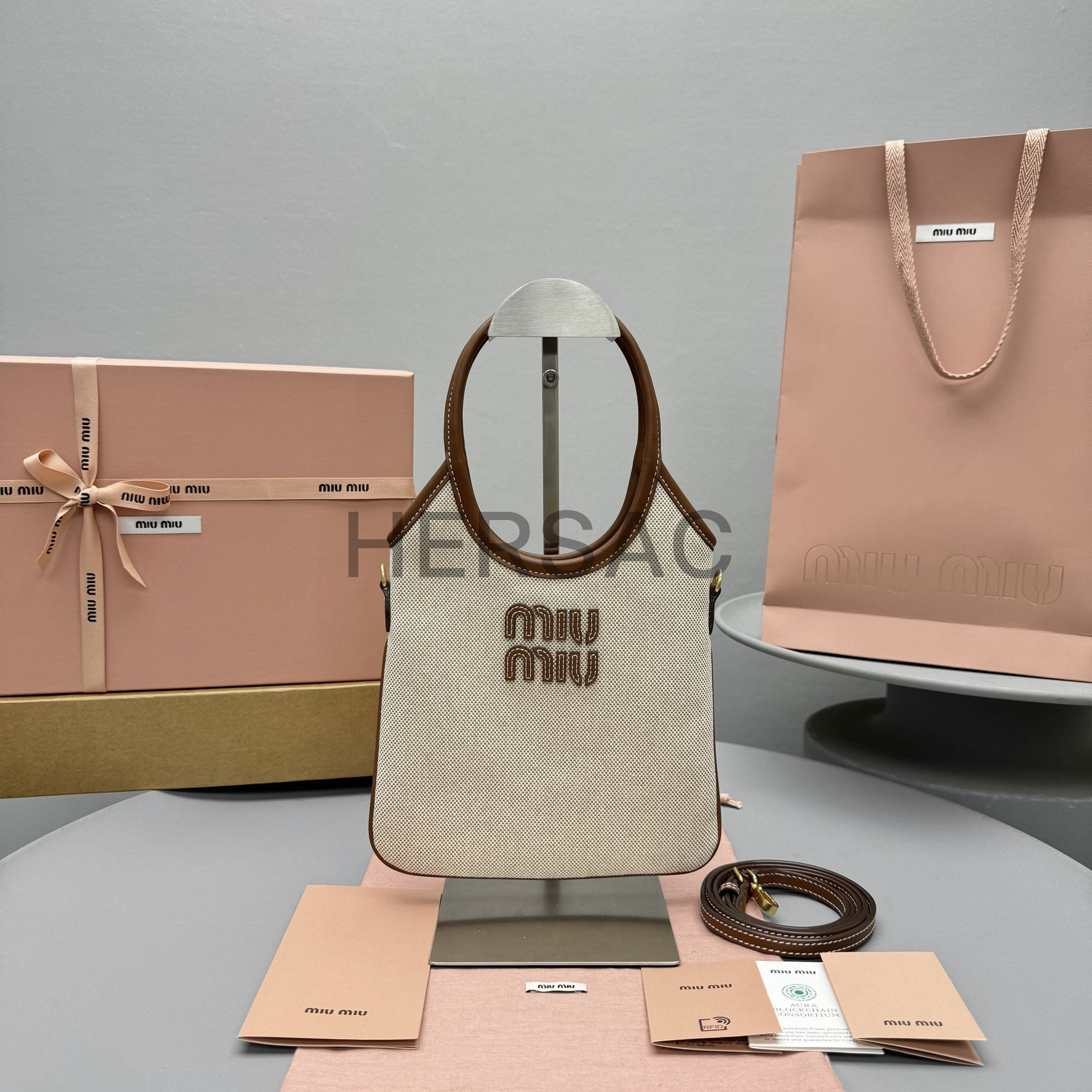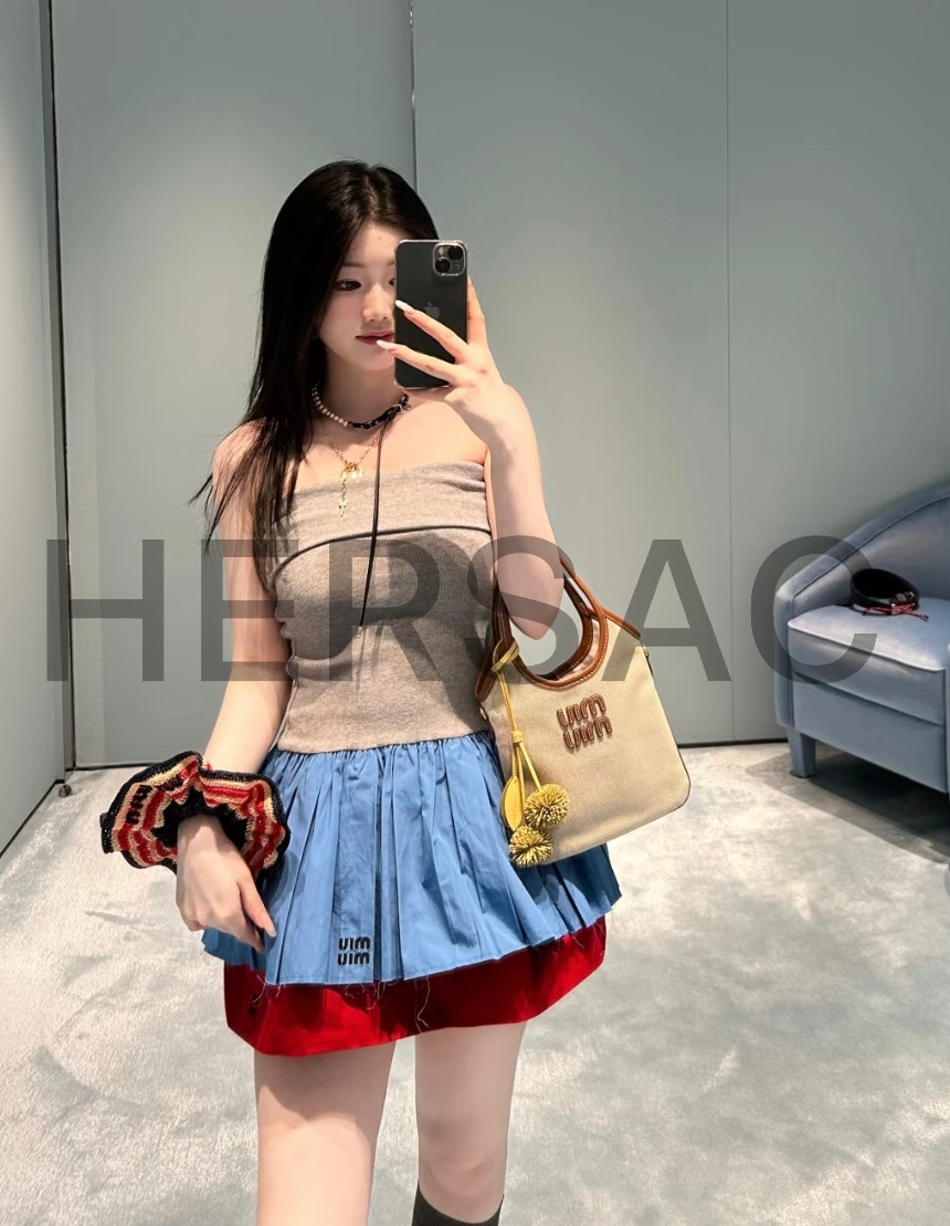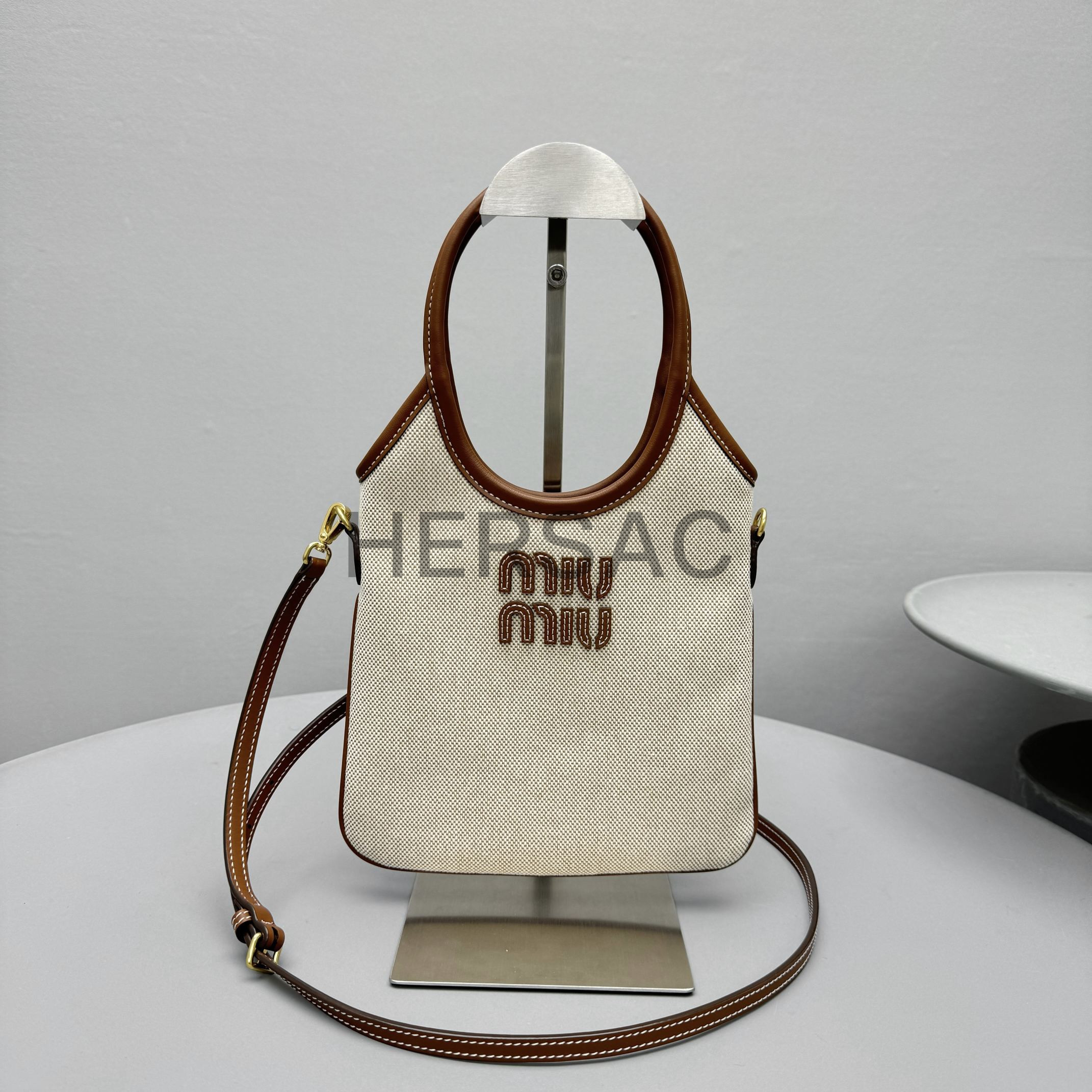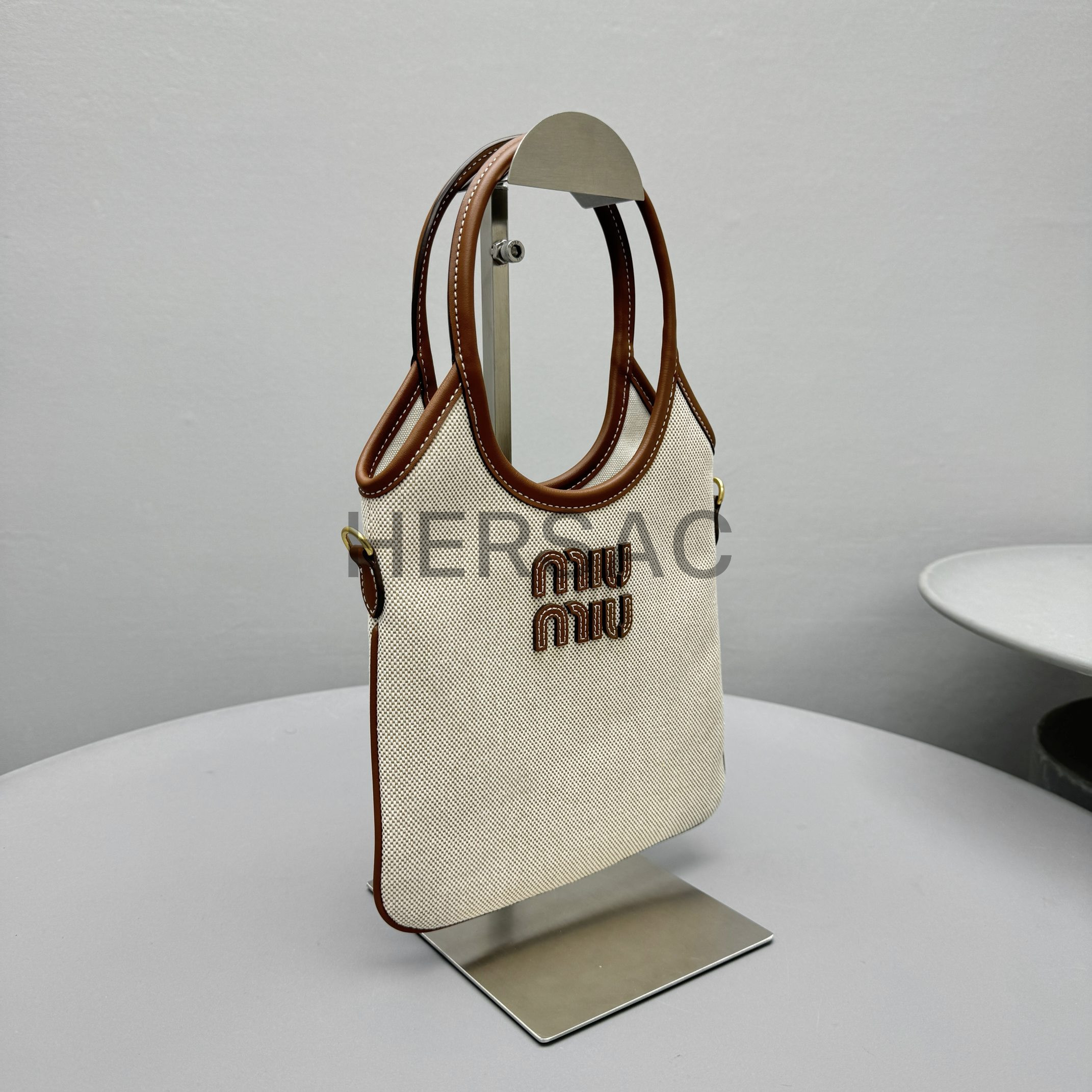 미우 미우 캔버스 및 가죽 아이비 백 5BA281_ACRN_F062F_V_OLF