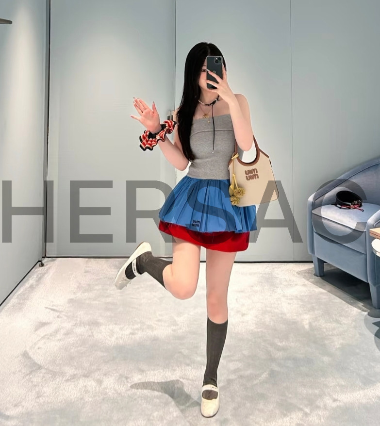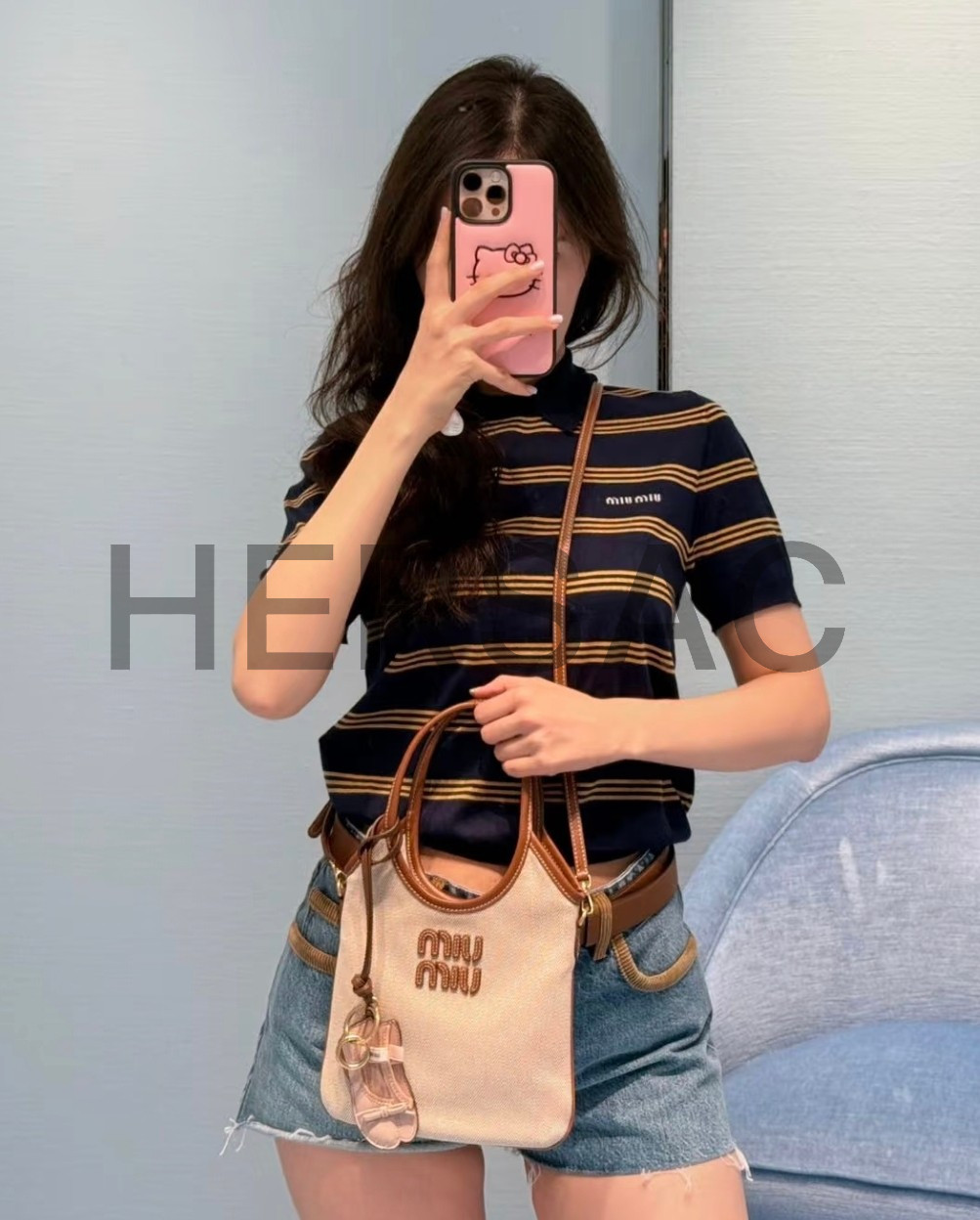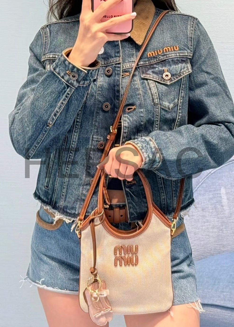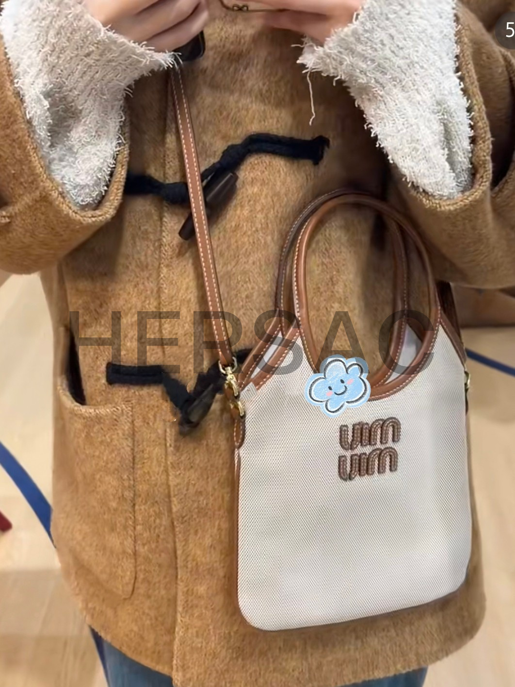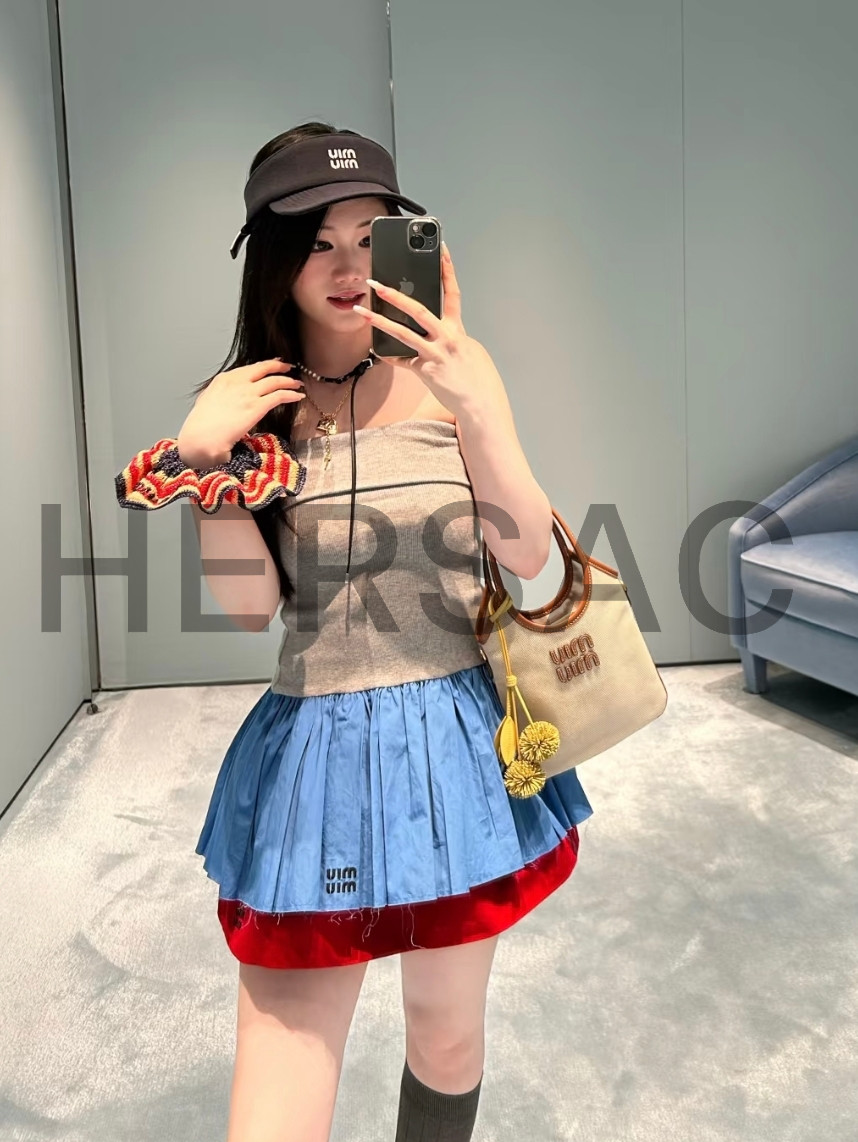 미우 미우 캔버스 및 가죽 아이비 백 5BA281_ACRN_F062F_V_OLF