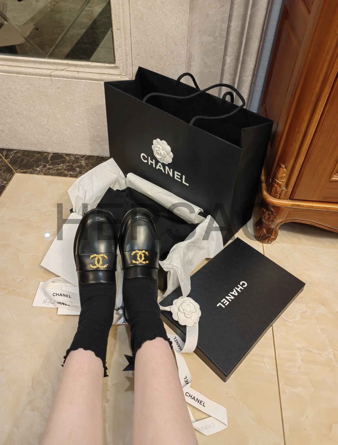 샤넬 24S 까멜리아 CC 모카신 블랙 G45663 B16429 94305