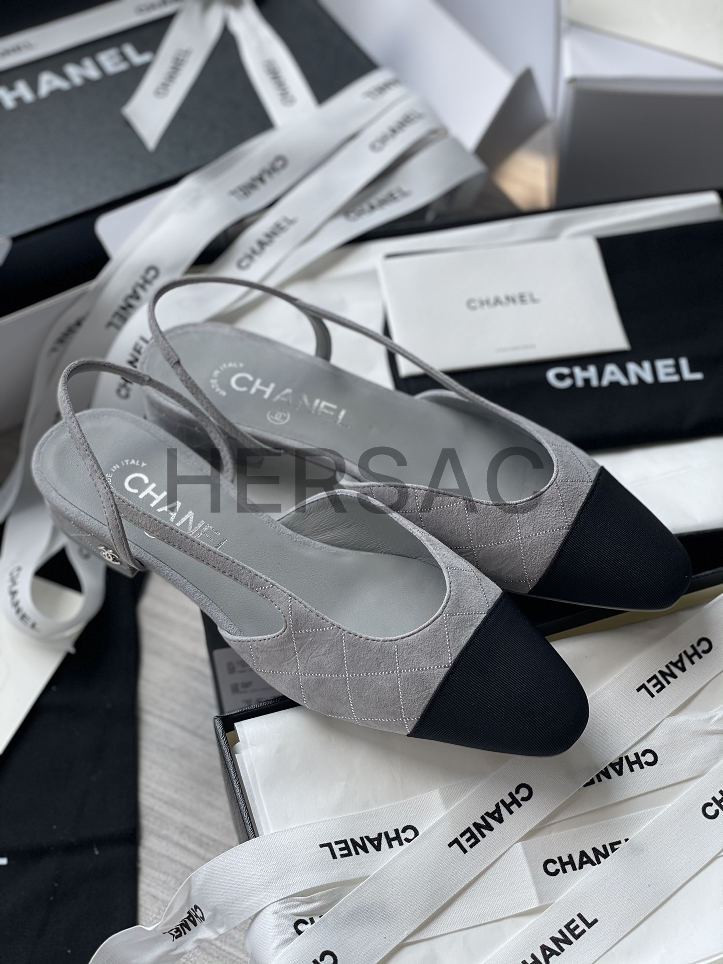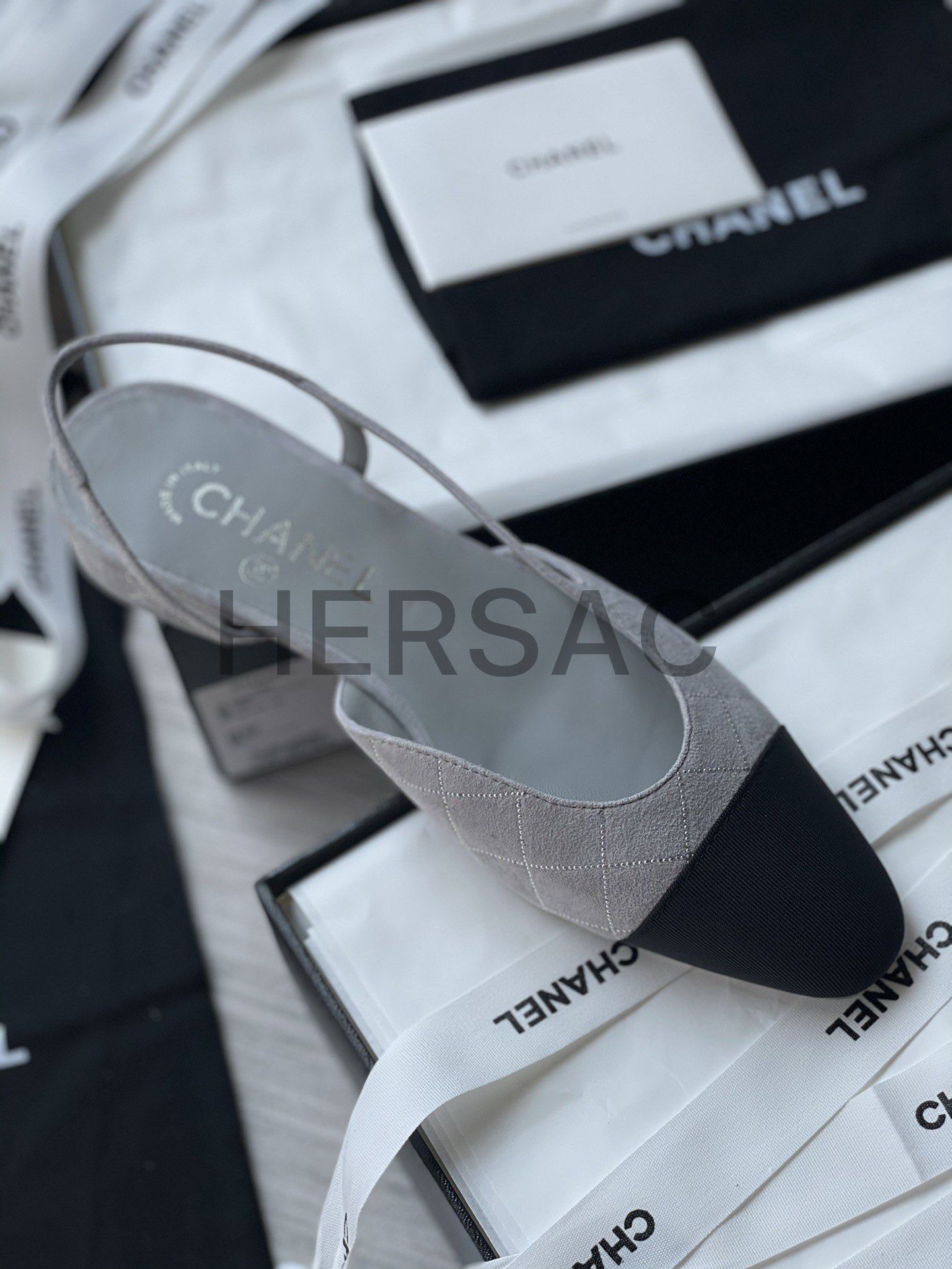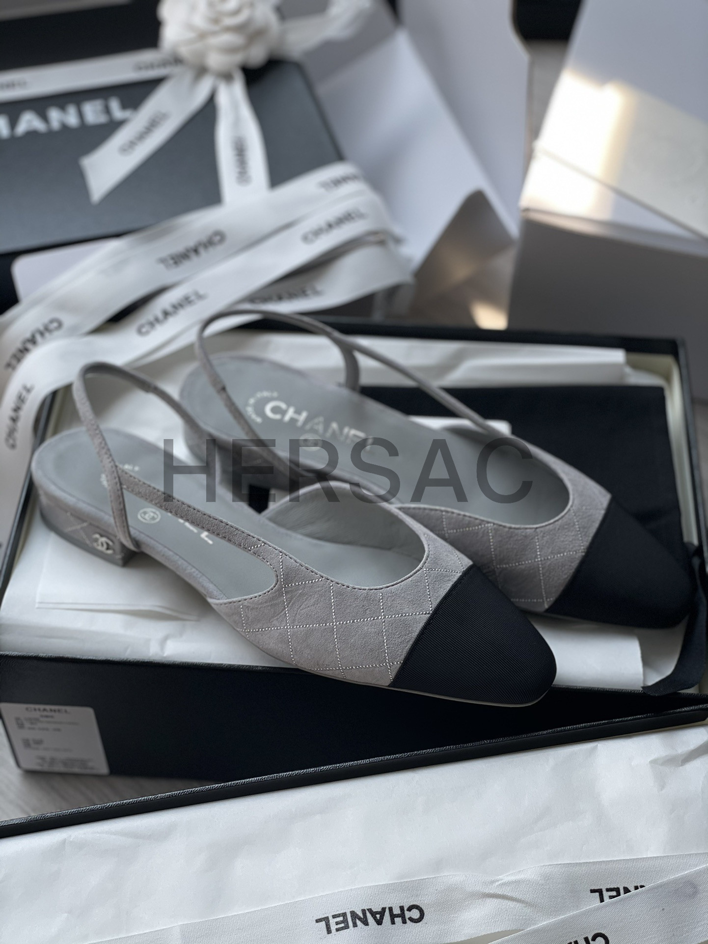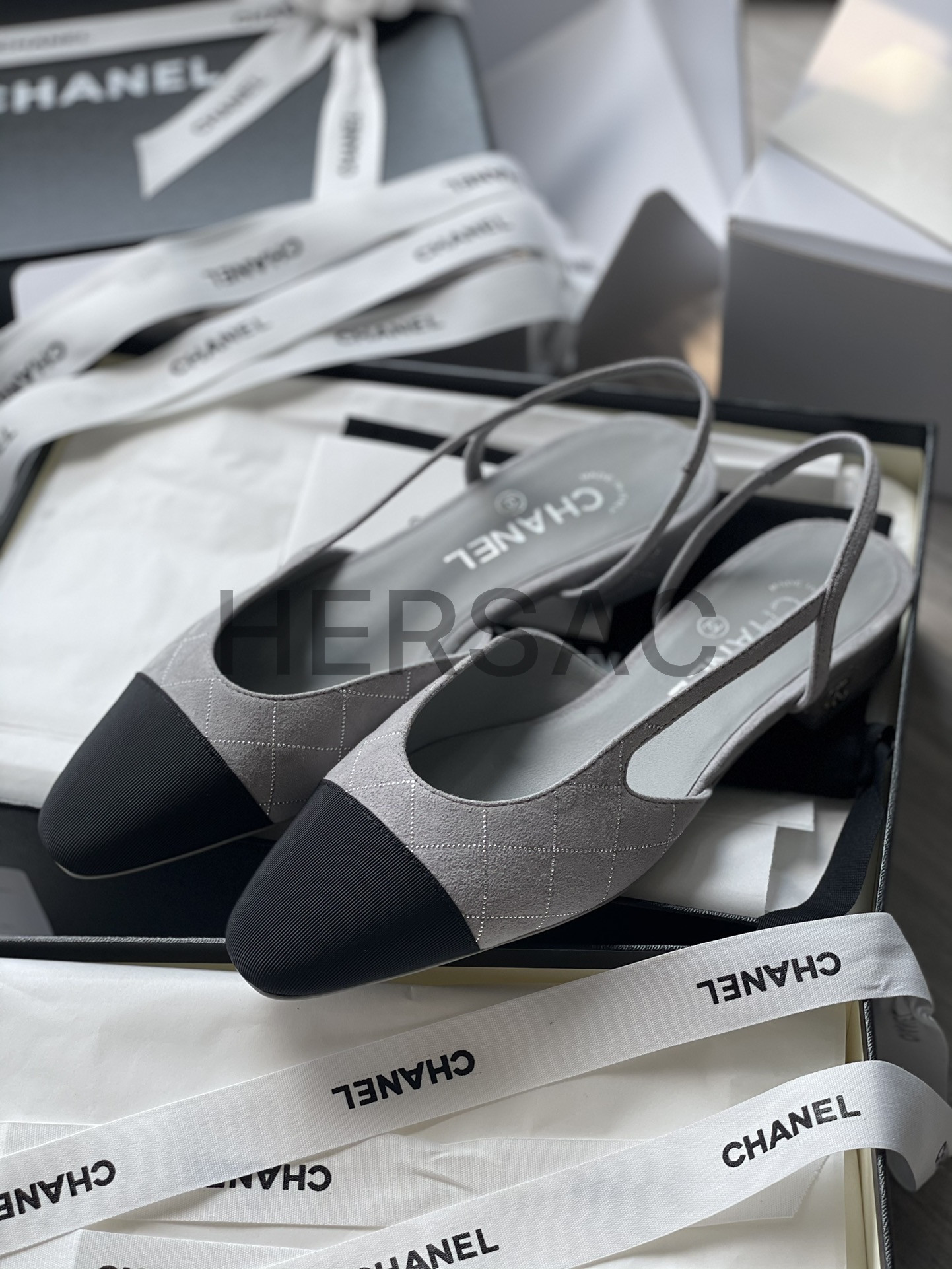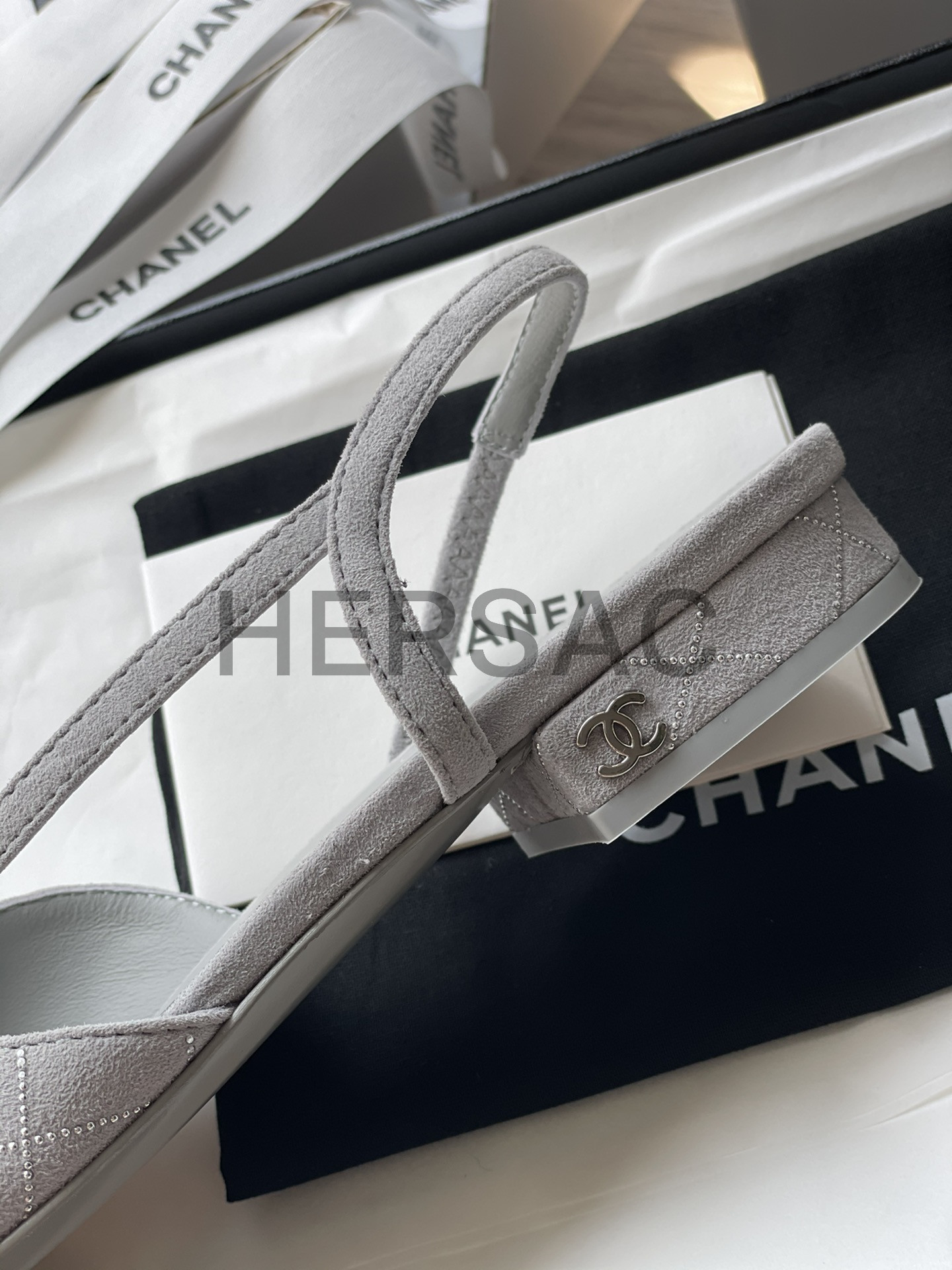 샤넬 슬링 스웨이드 고트스킨 그로그랭 그레이 실버 블랙 G31319 B19042 NACKW