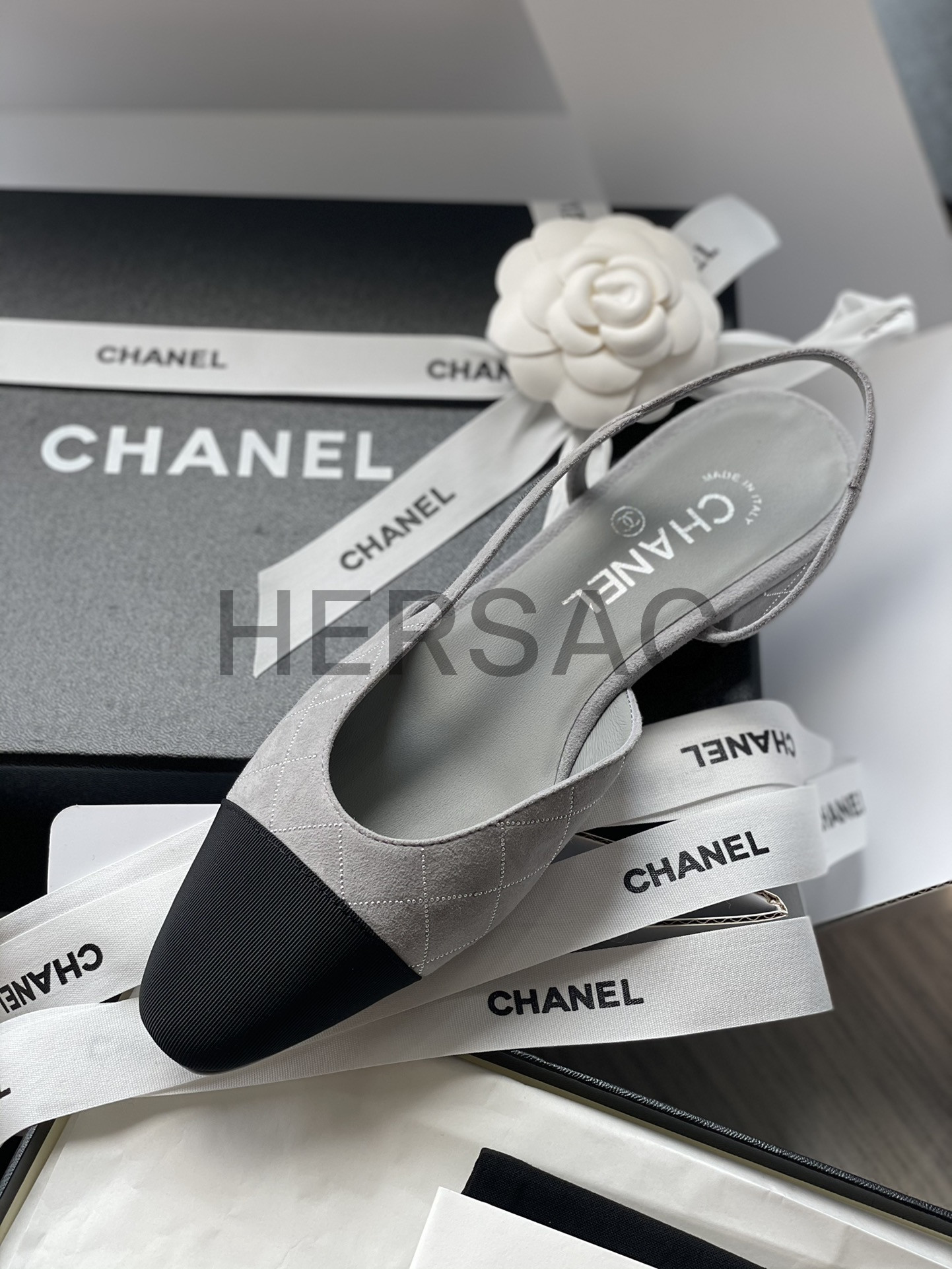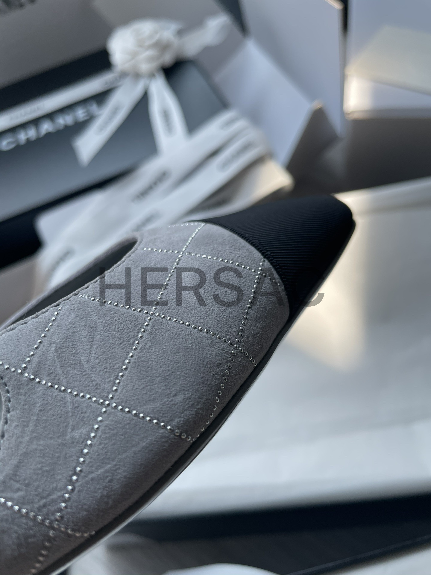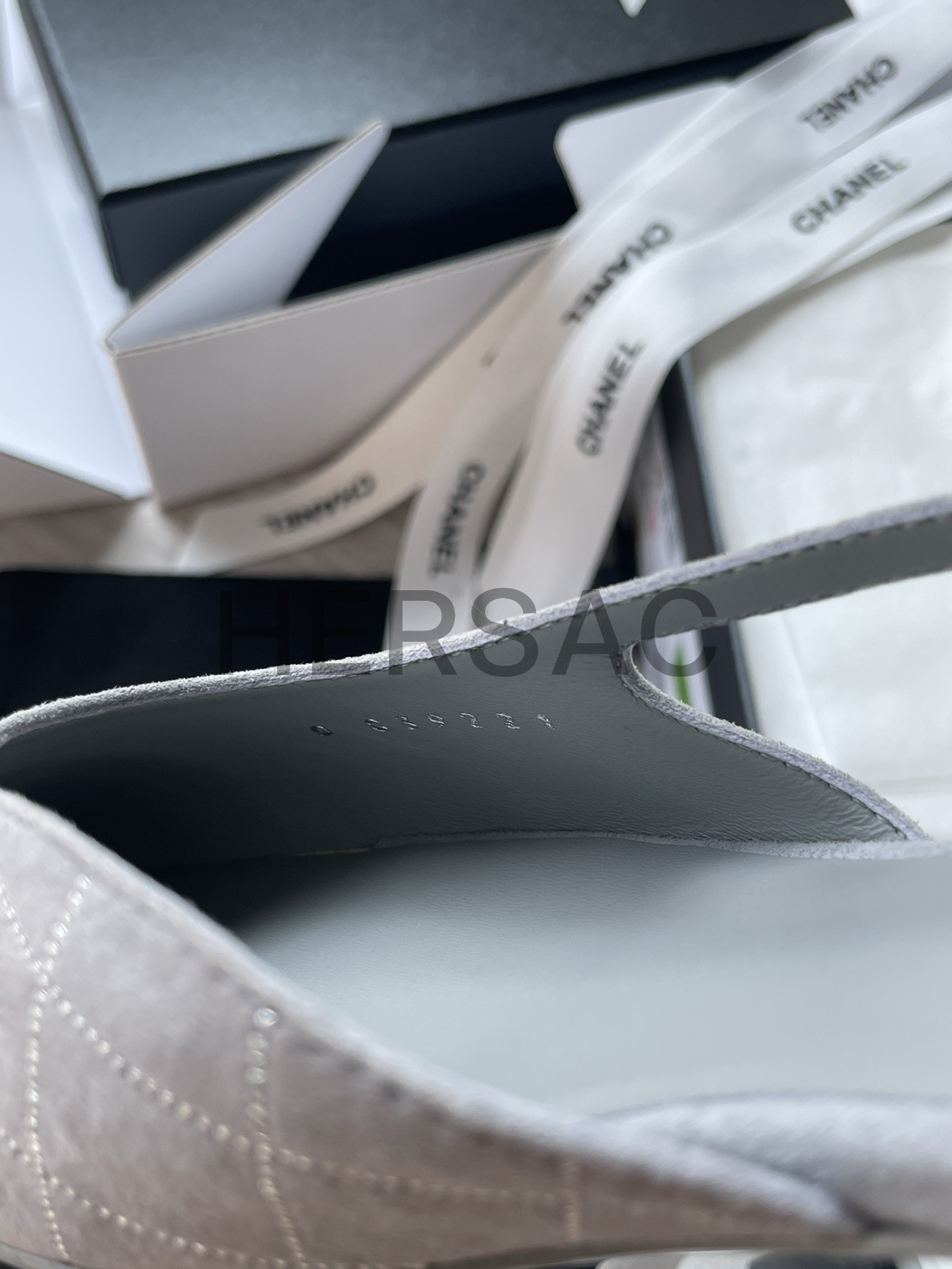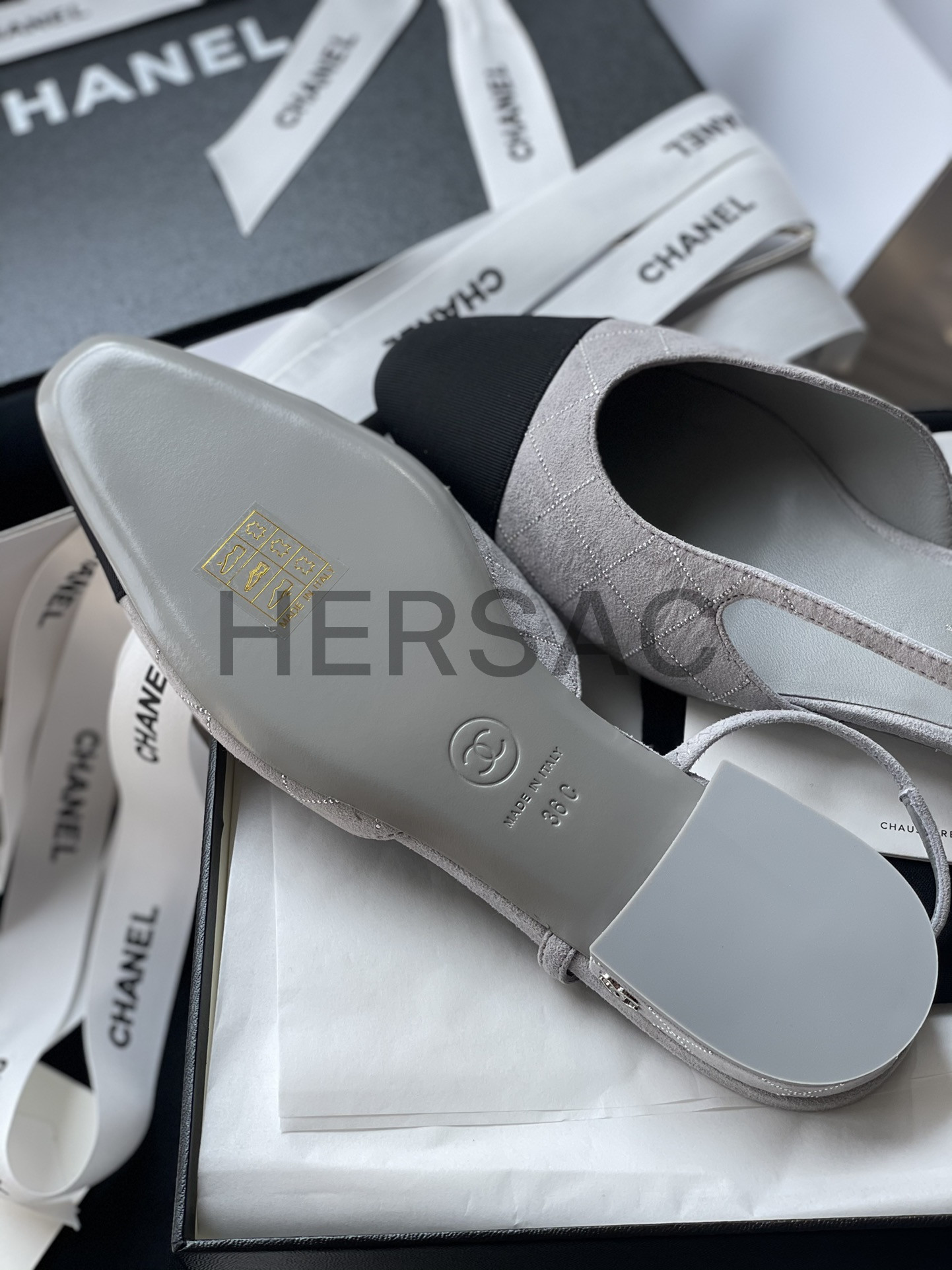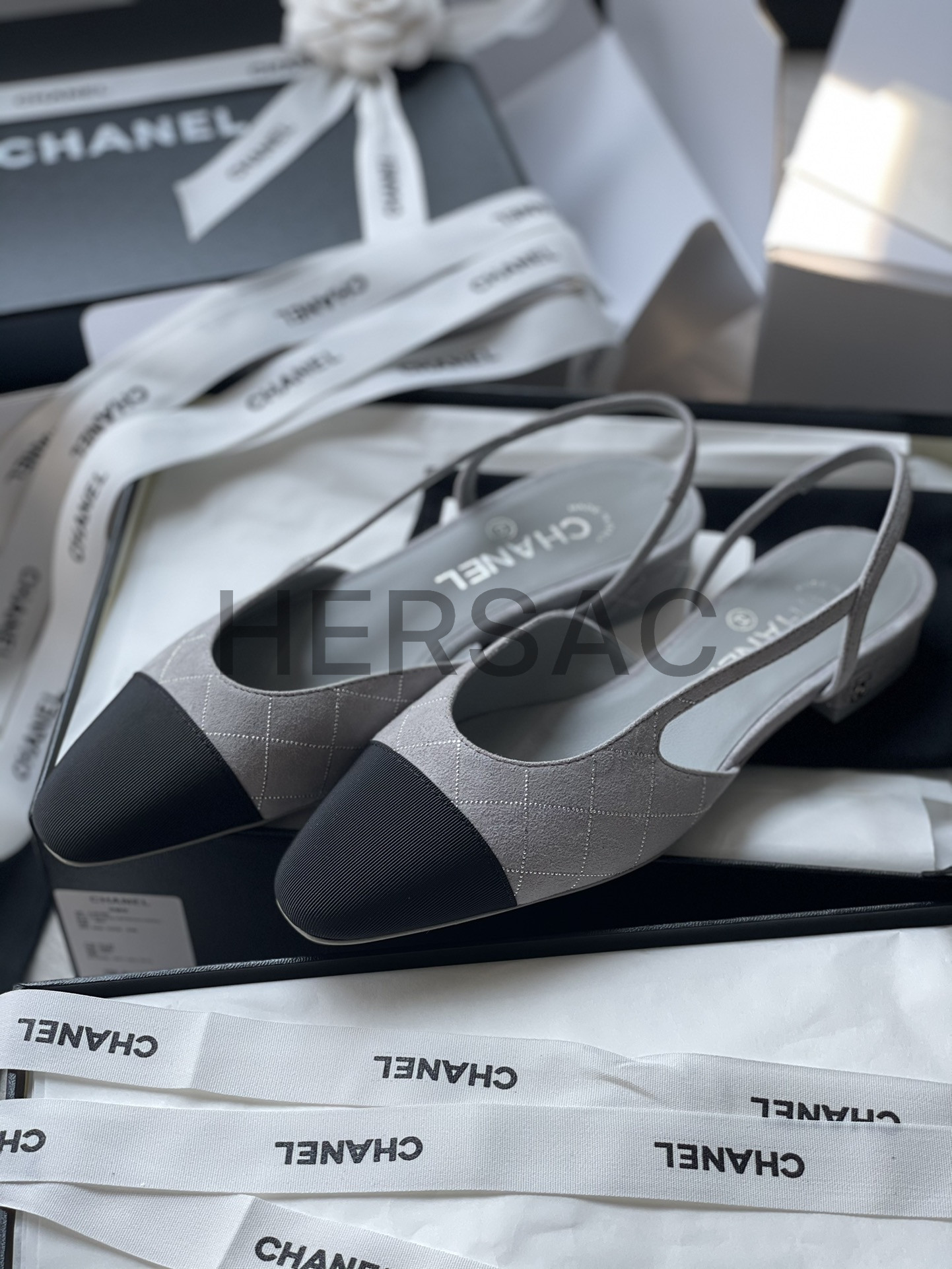 샤넬 슬링 스웨이드 고트스킨 그로그랭 그레이 실버 블랙 G31319 B19042 NACKW