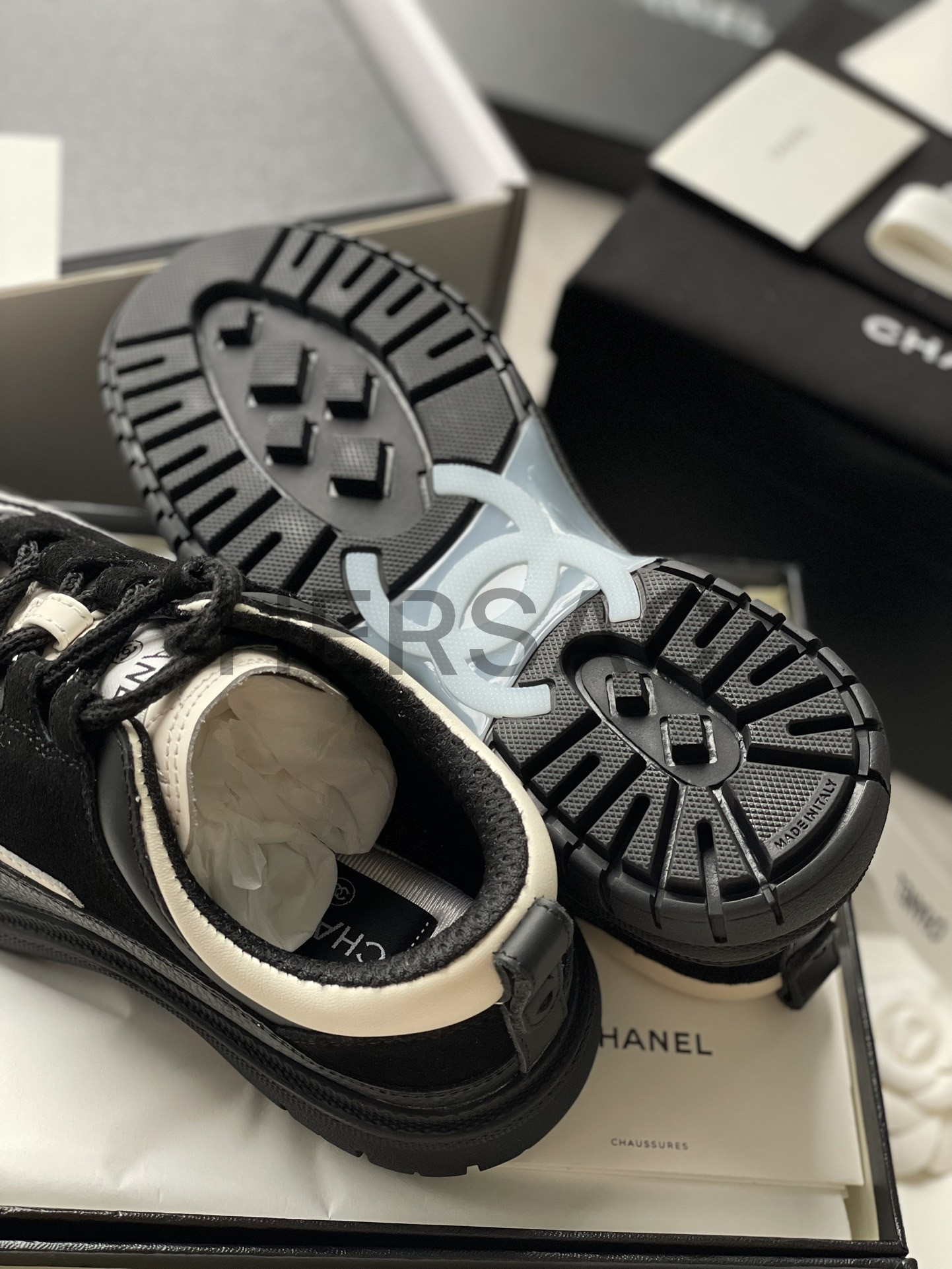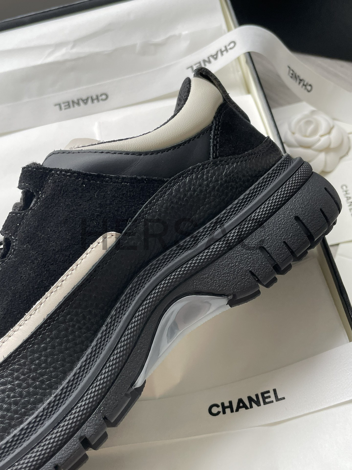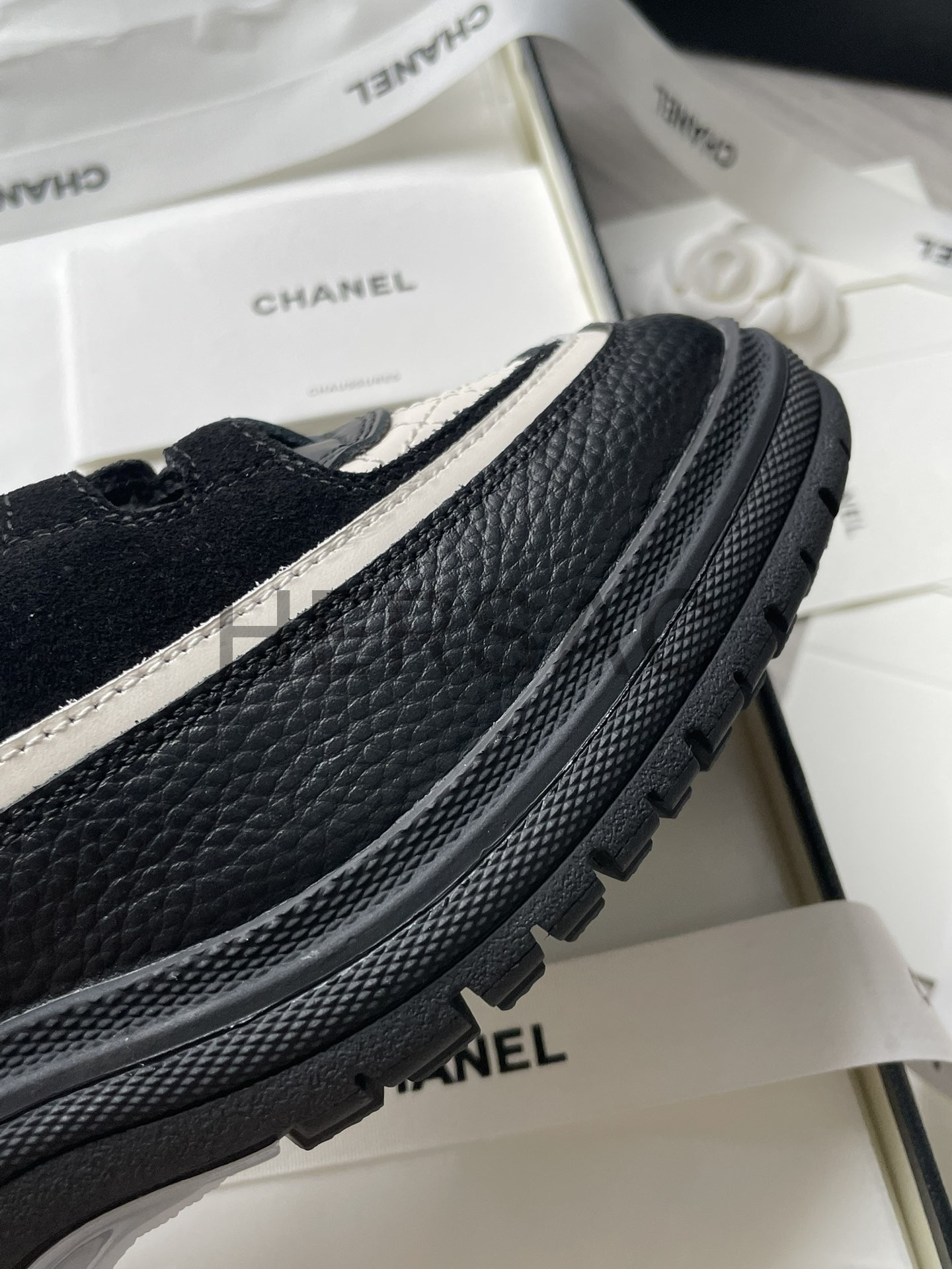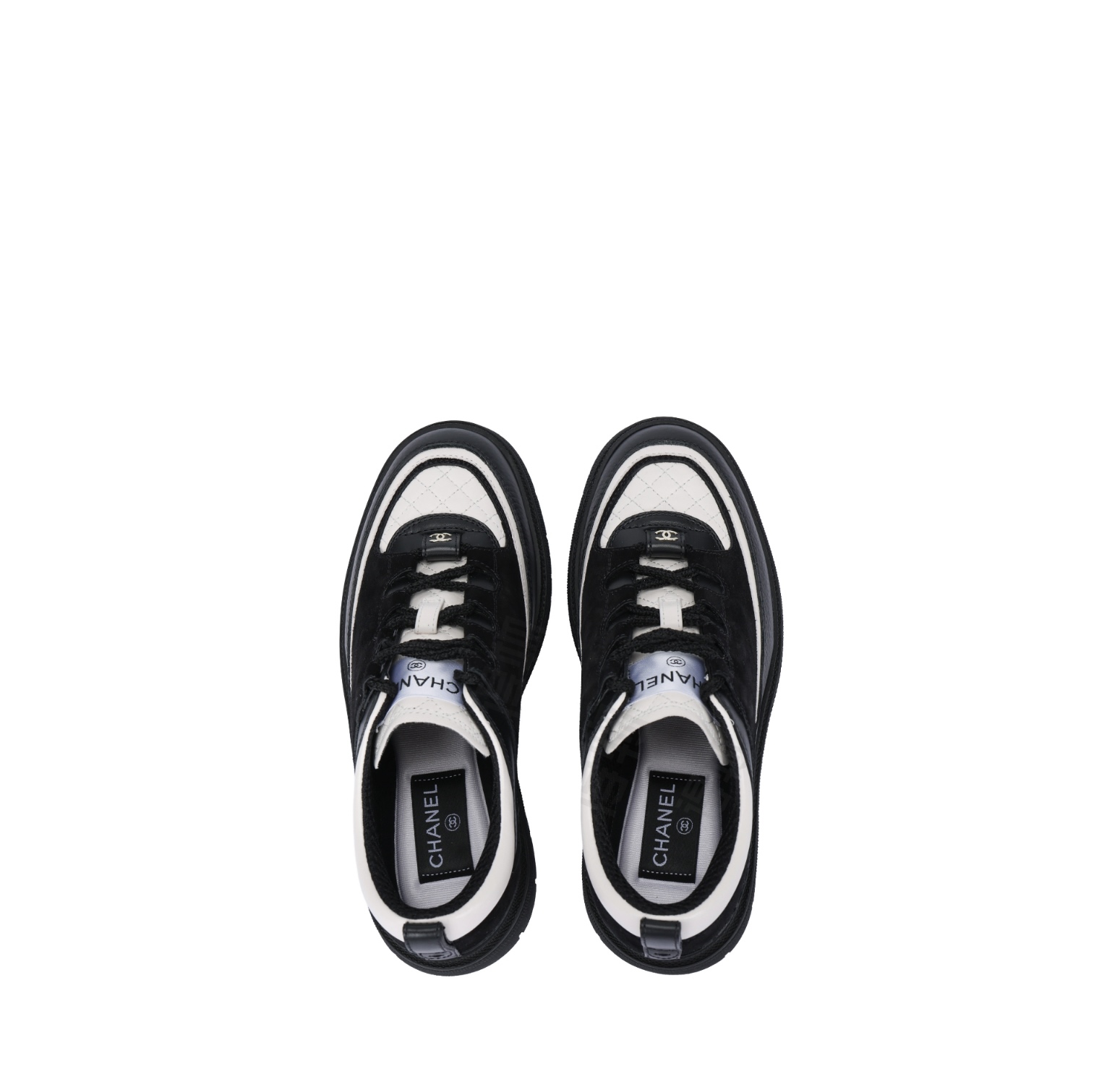 샤넬 스니커즈 카프스킨 스웨이드 카프스킨 램스킨 블랙 화이트 G46258 B21627 U3085