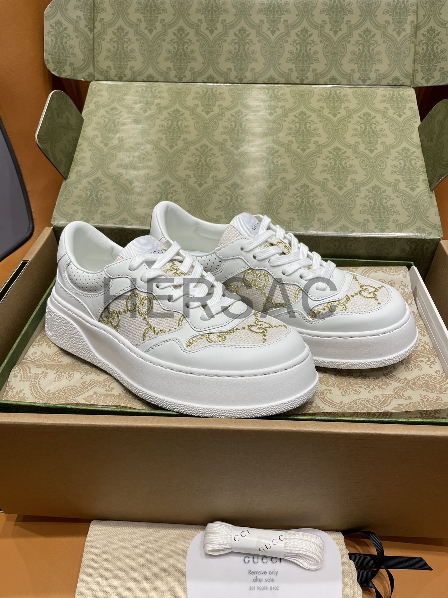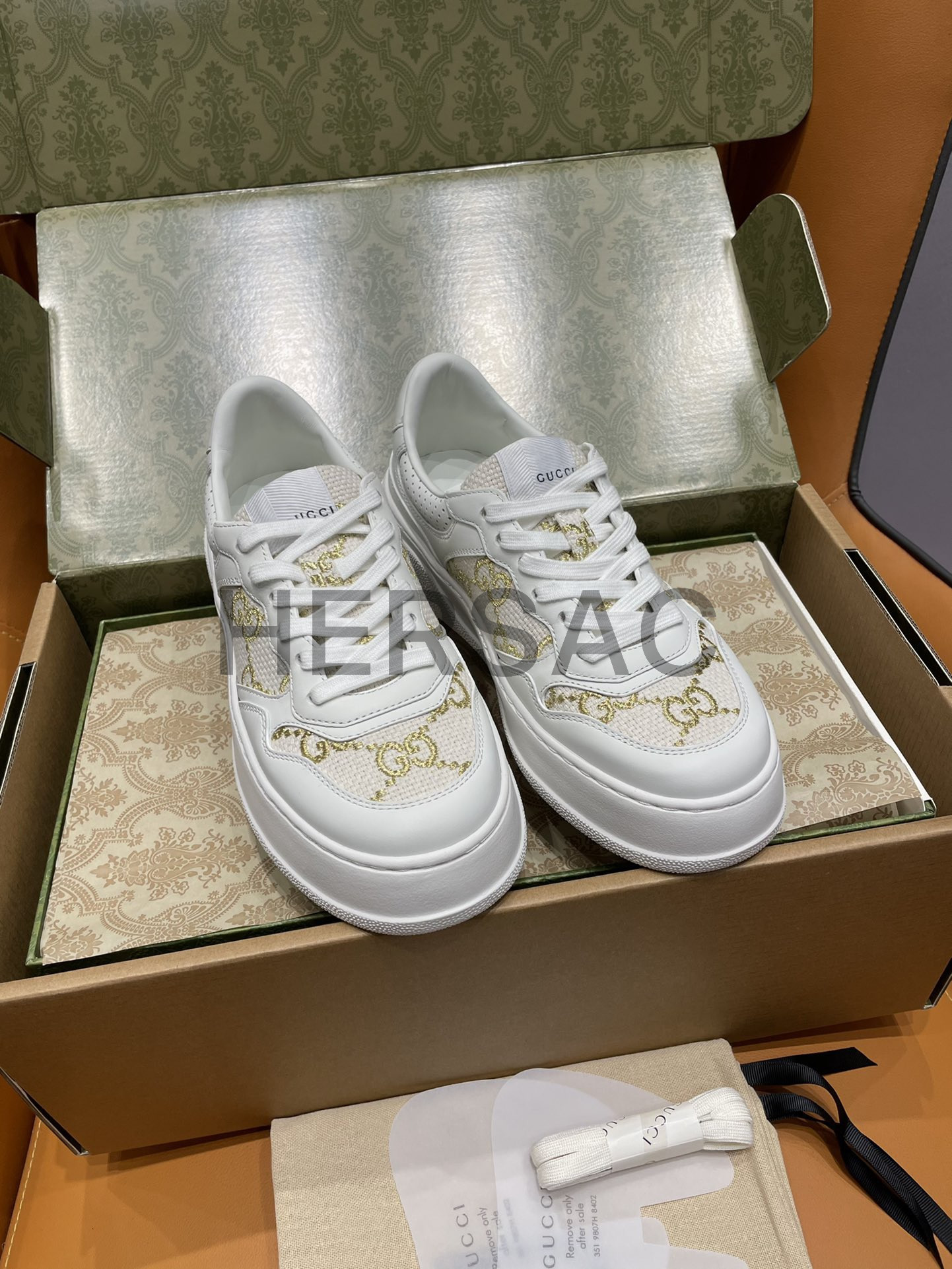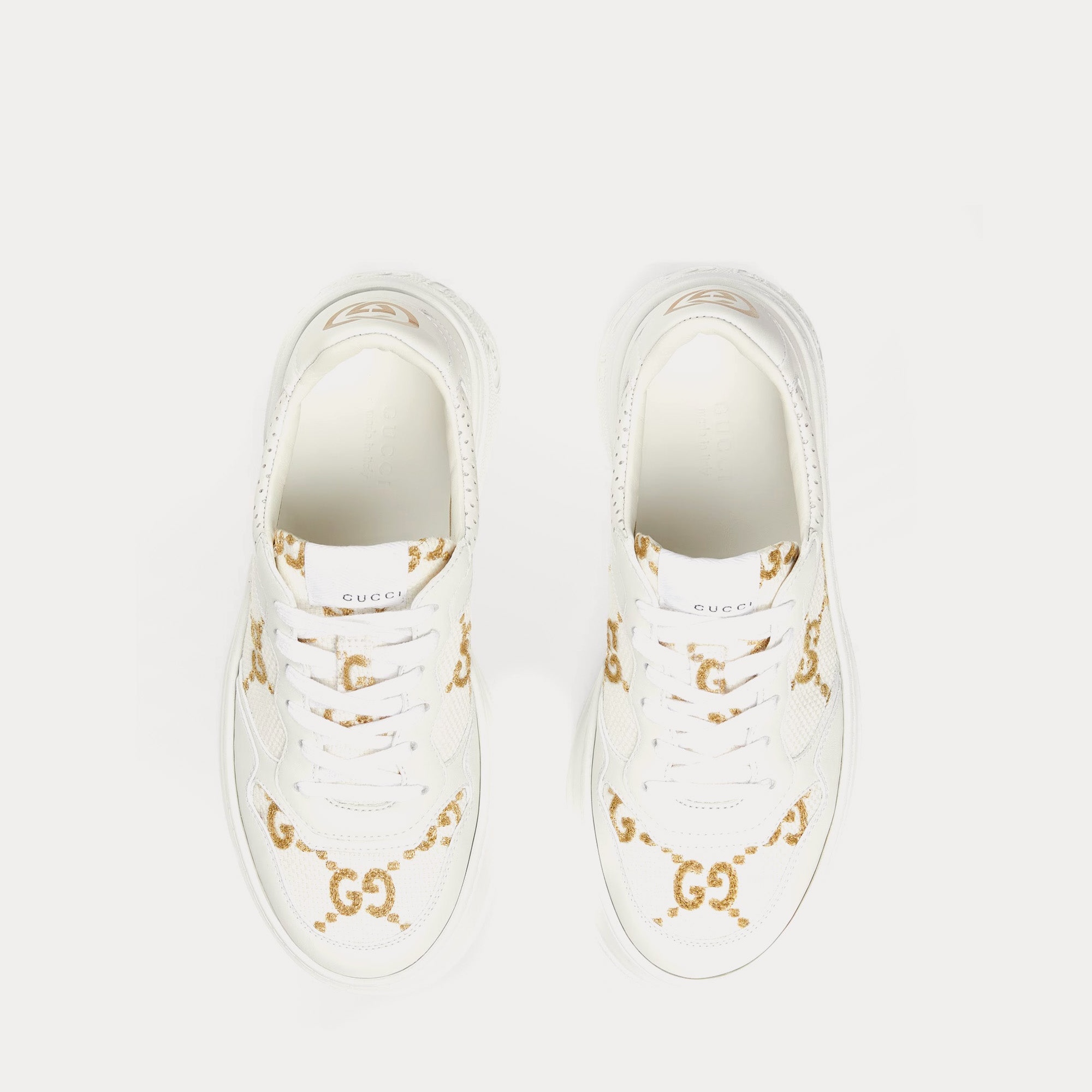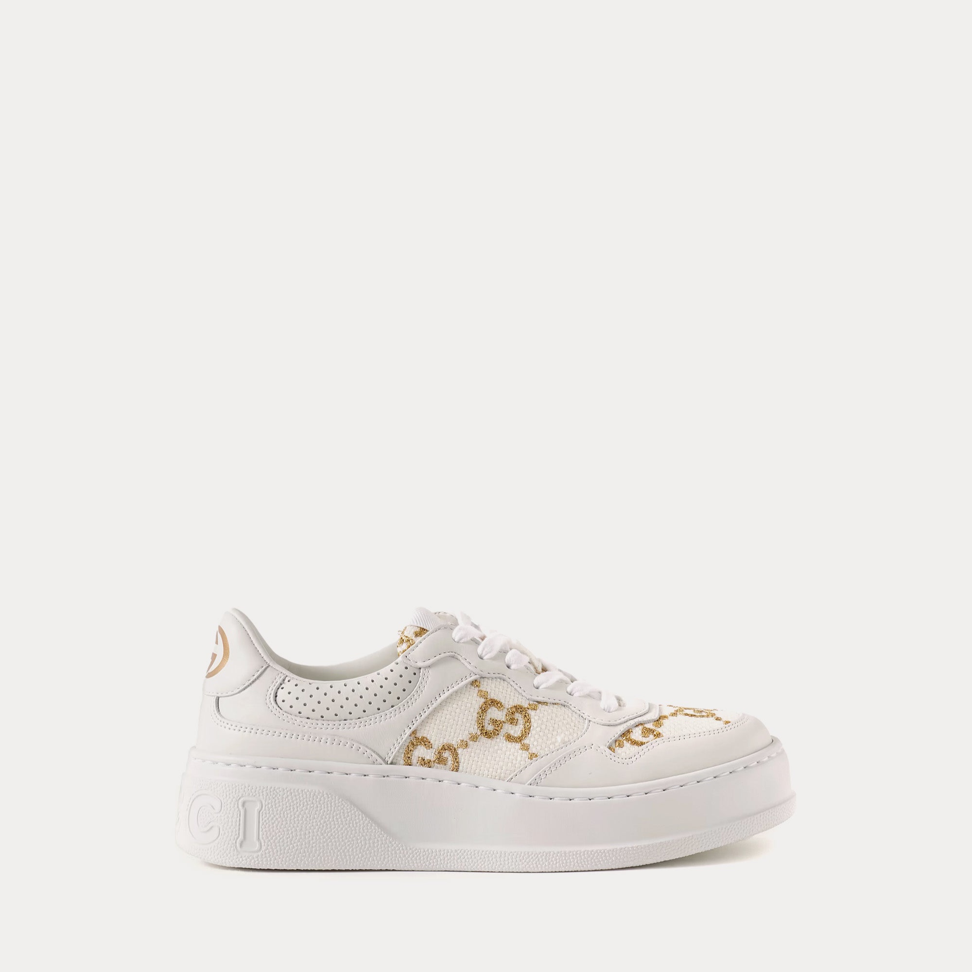 구찌 골드 라메 GG 패브릭 화이트 로우탑 GG 플랫폼 스니커즈 670408 AACXG 9059