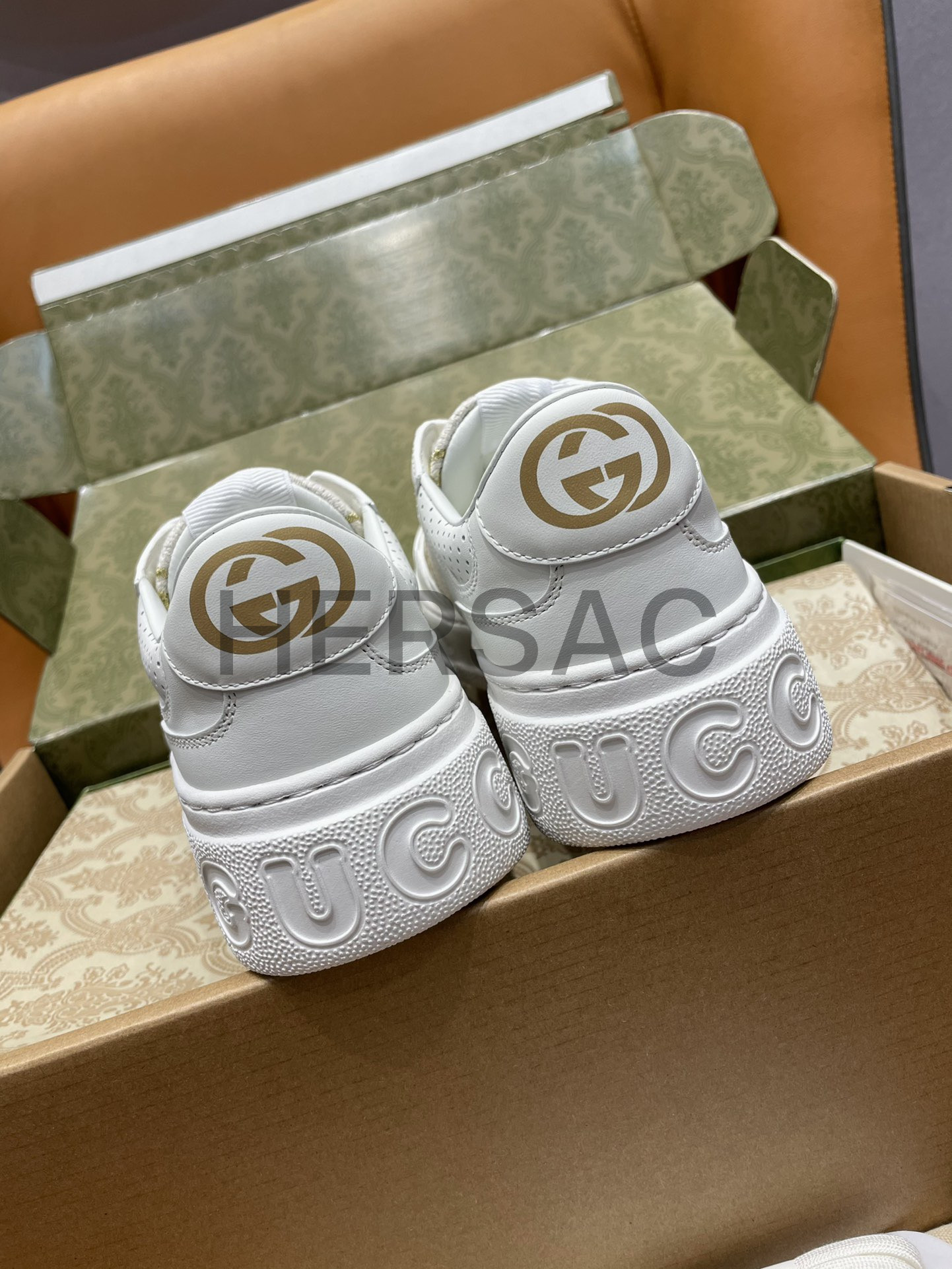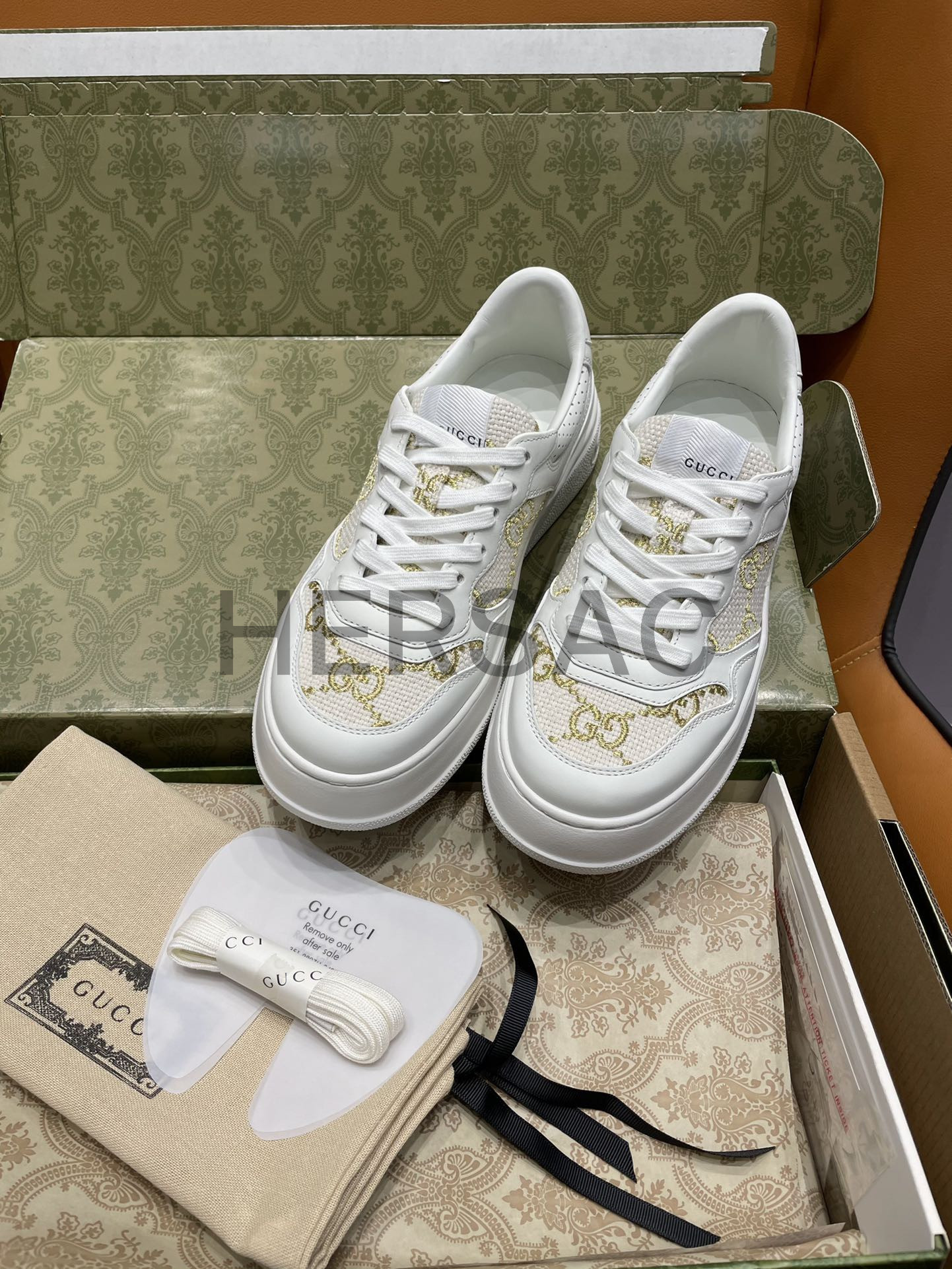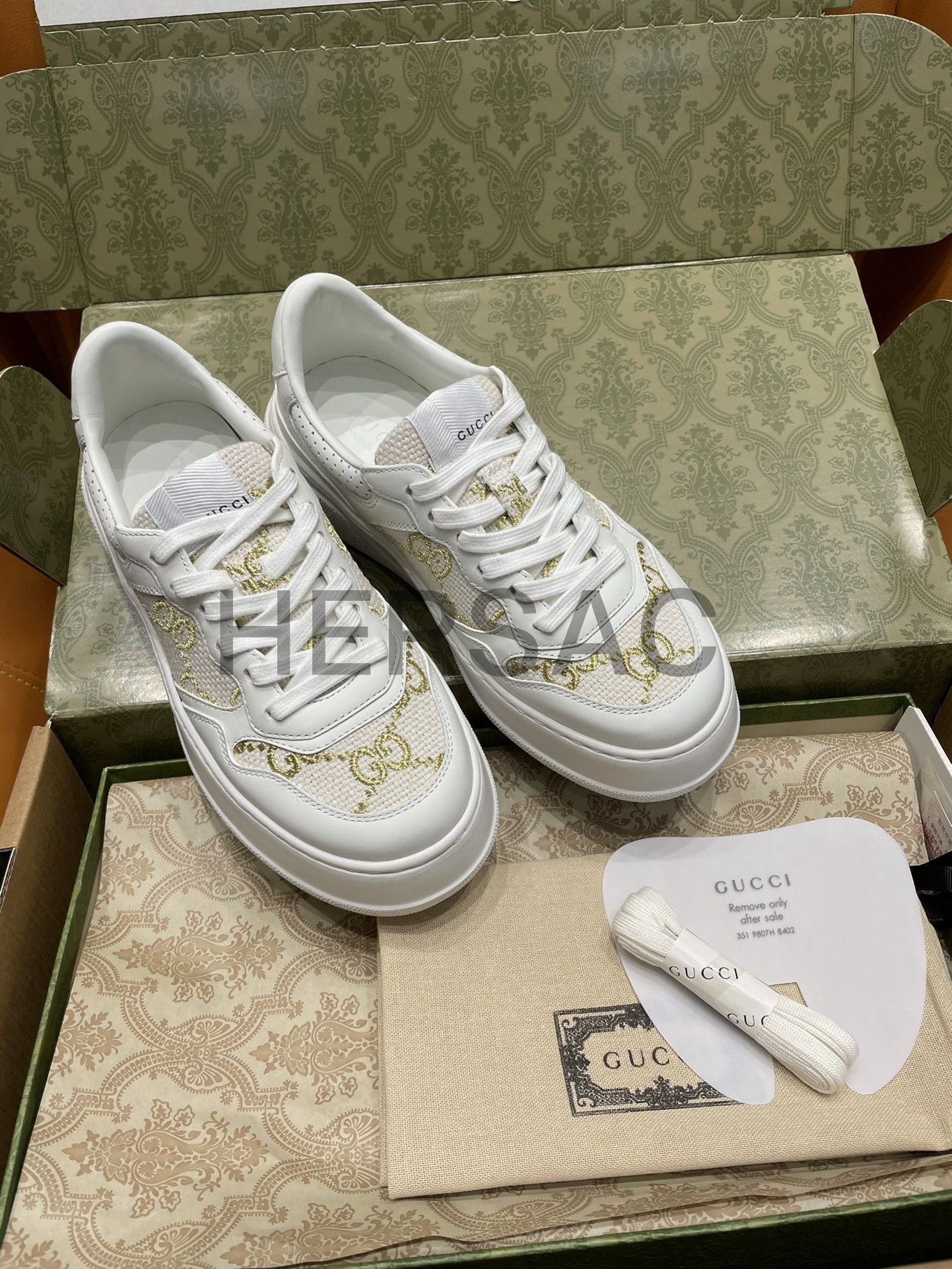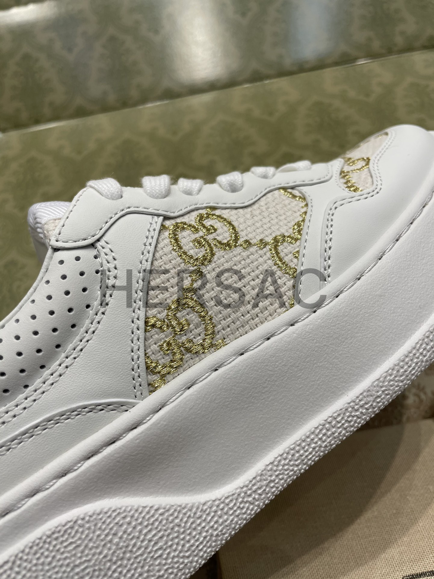 구찌 골드 라메 GG 패브릭 화이트 로우탑 GG 플랫폼 스니커즈 670408 AACXG 9059