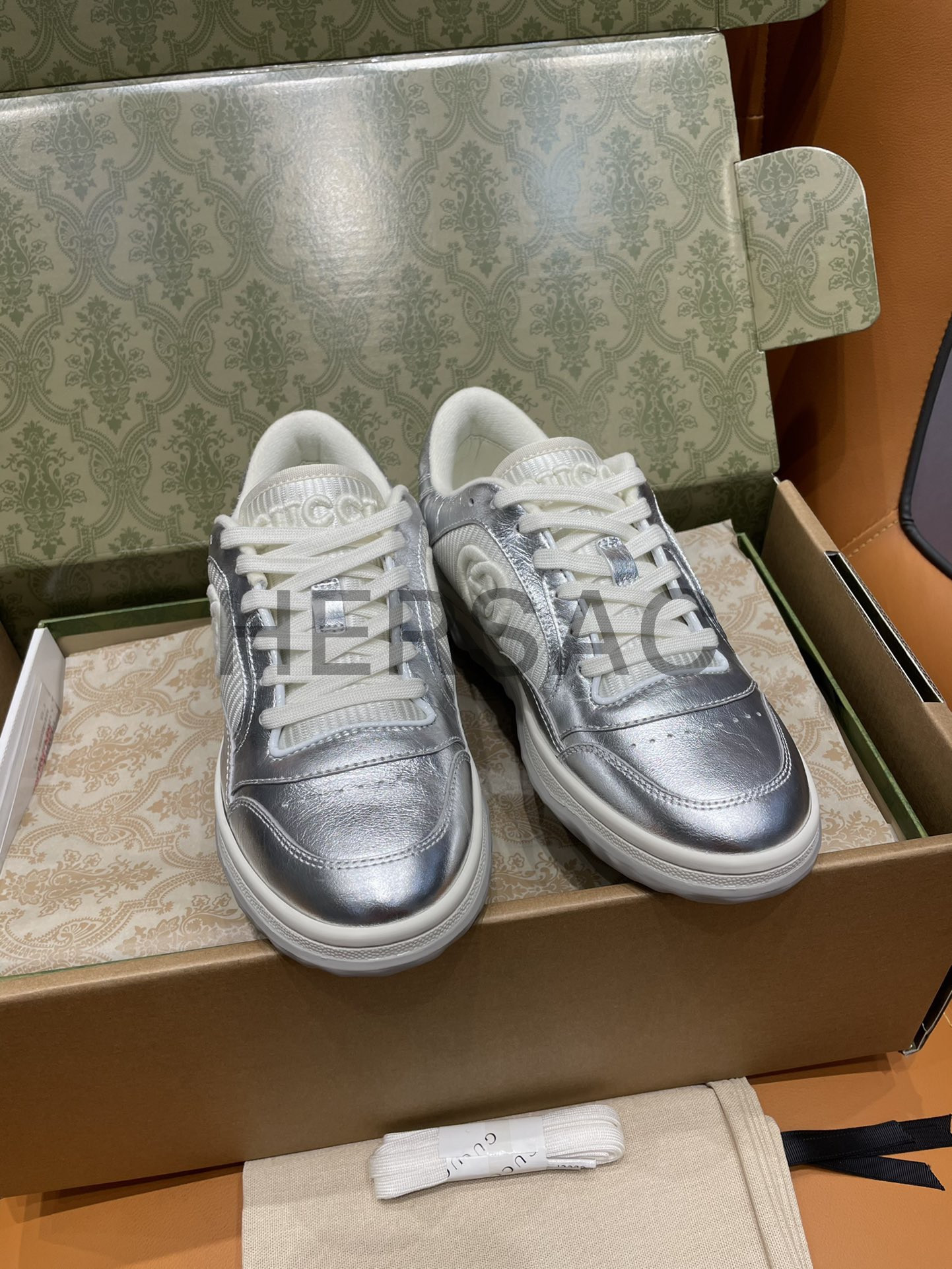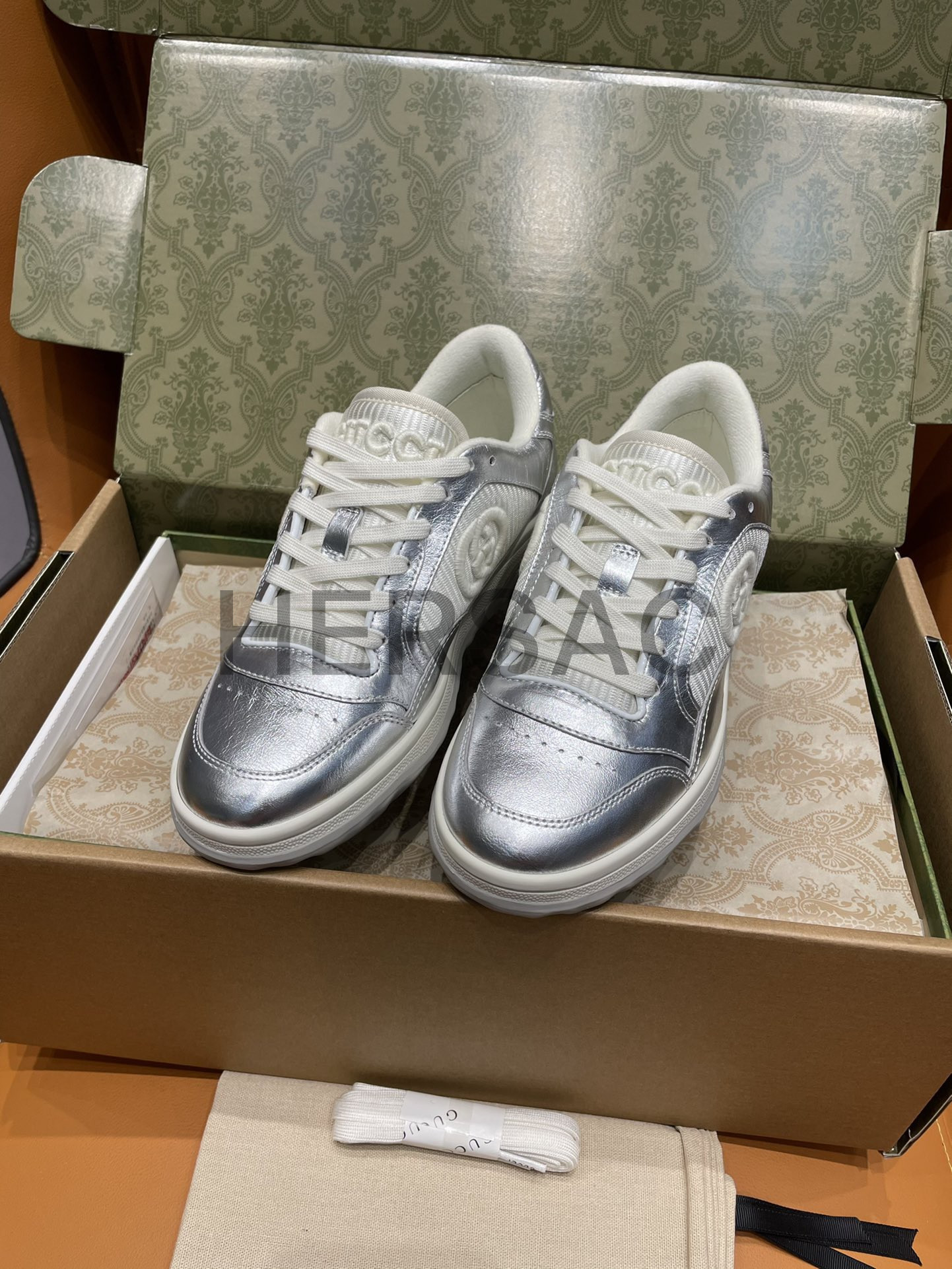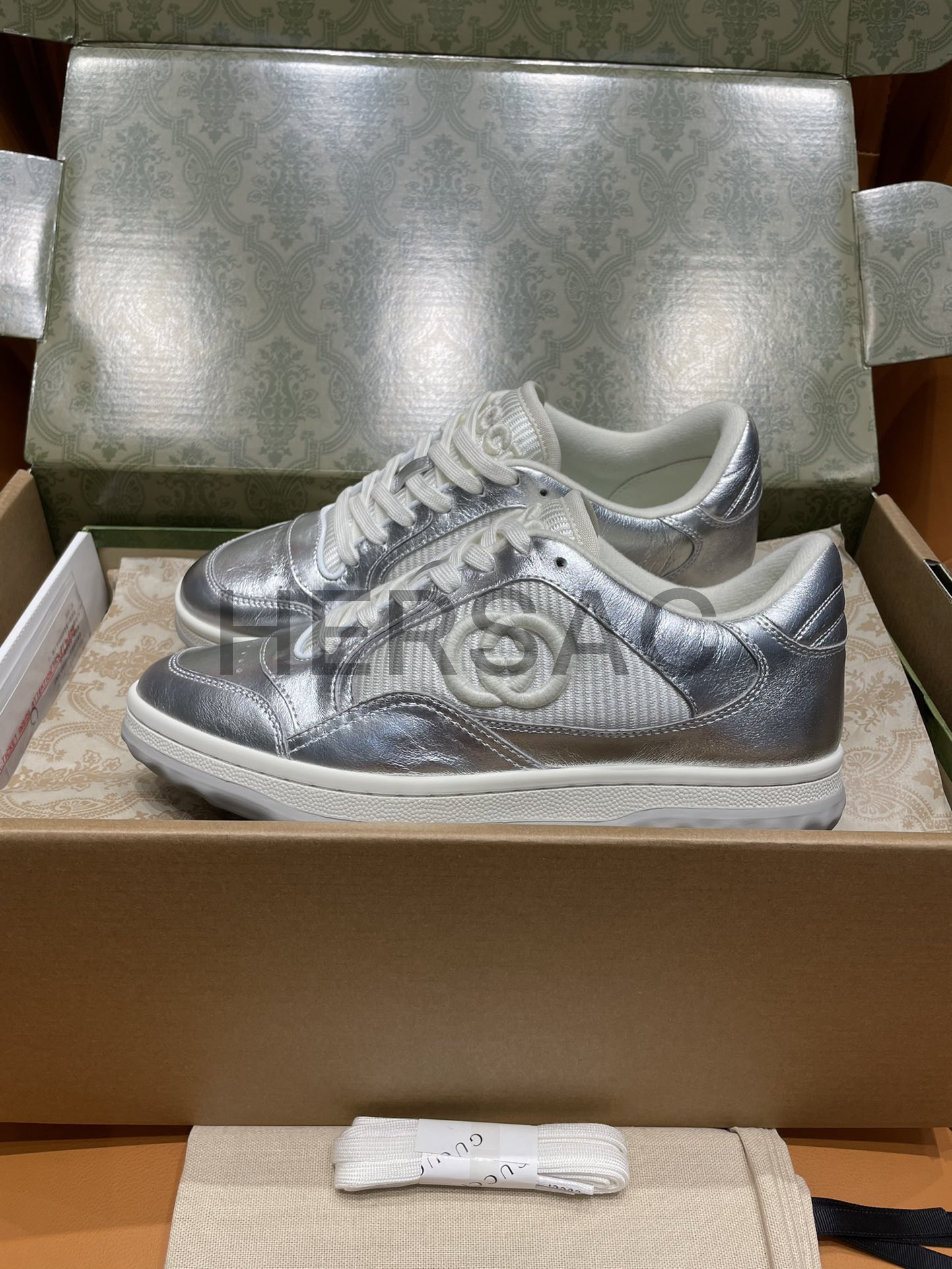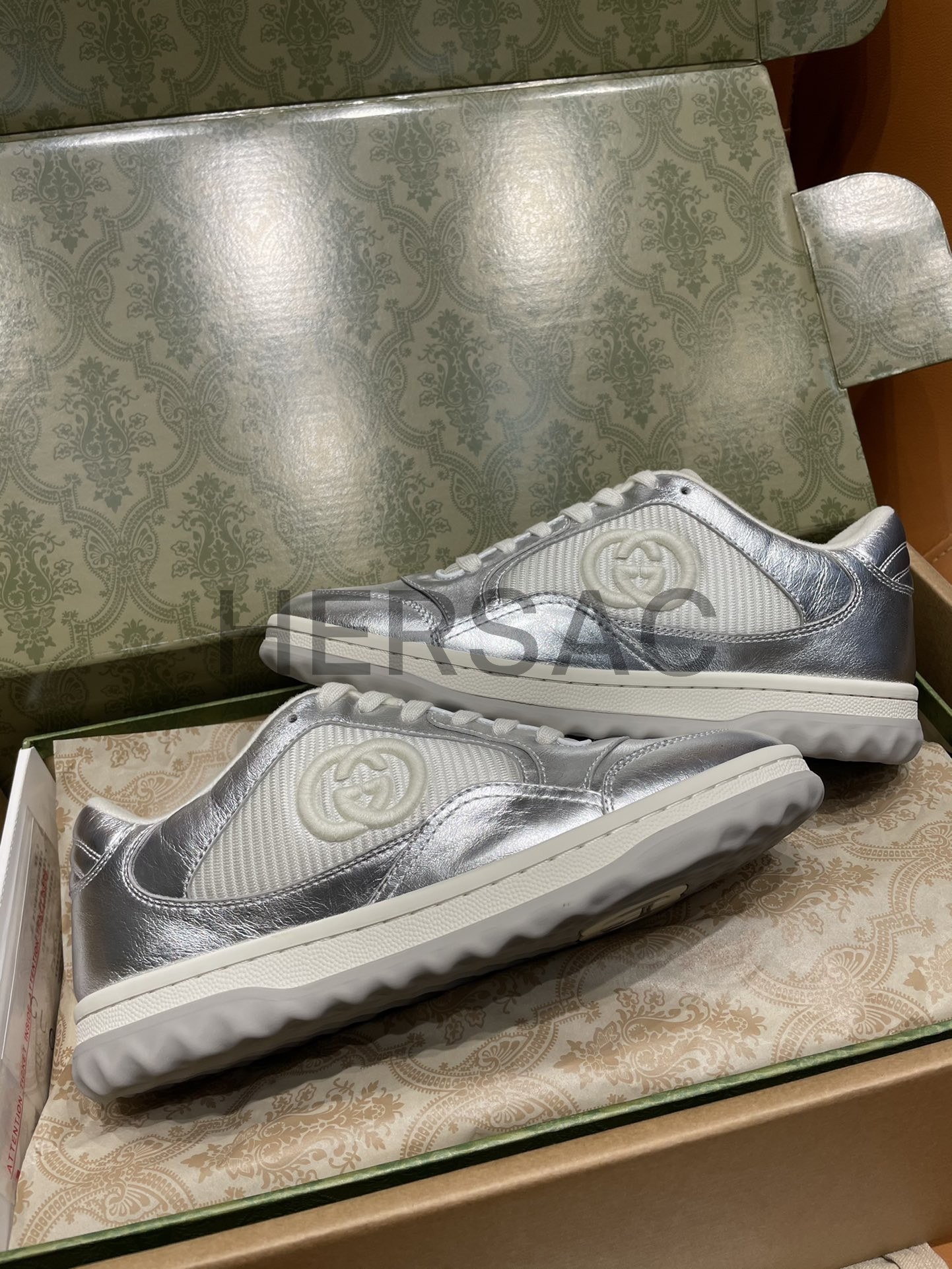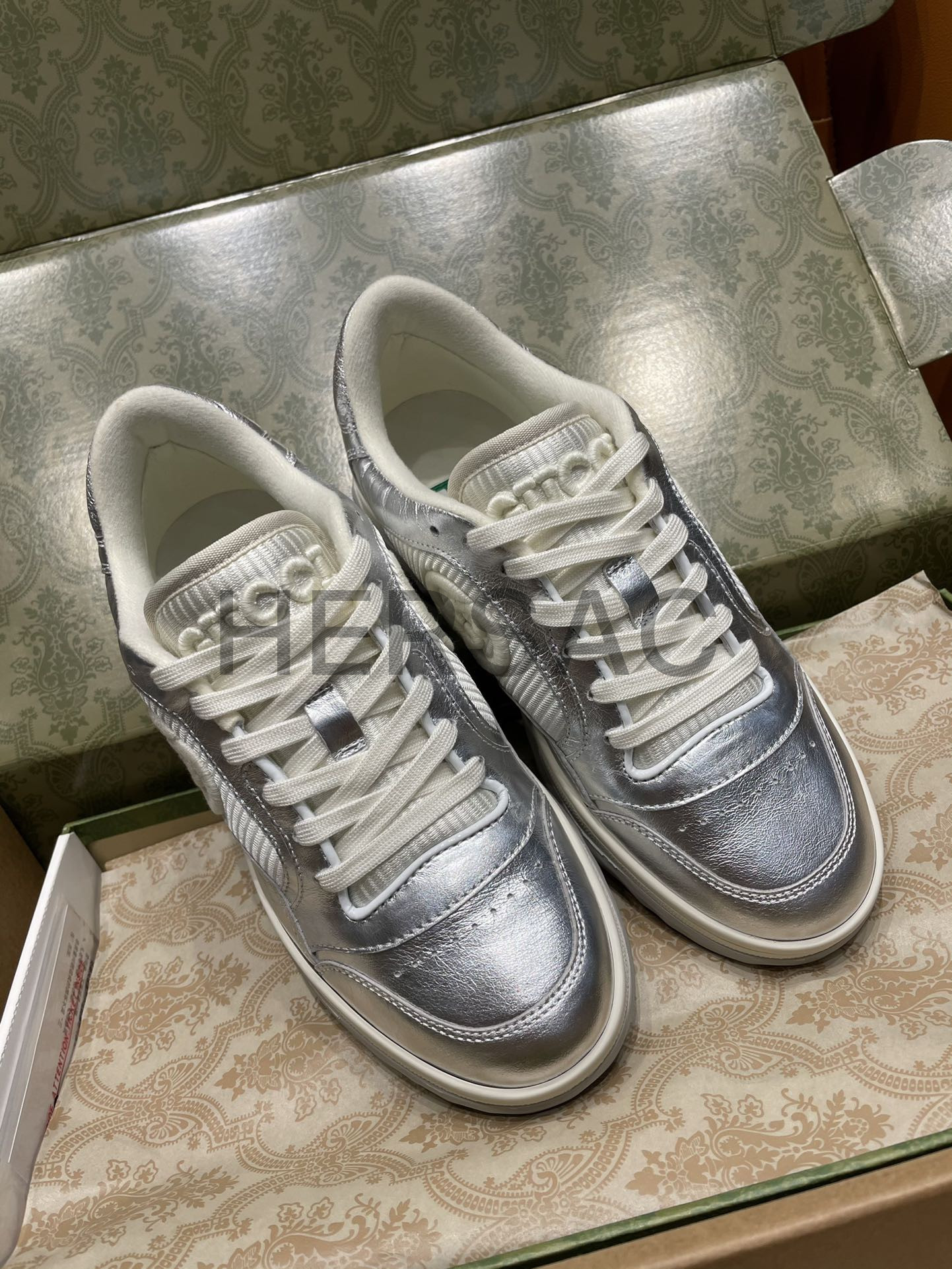 구찌 맥80 메탈릭 실버 가죽 스니커즈 750834 AACA9 8141