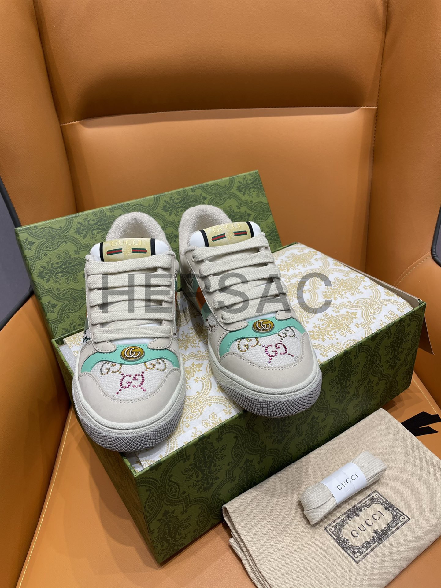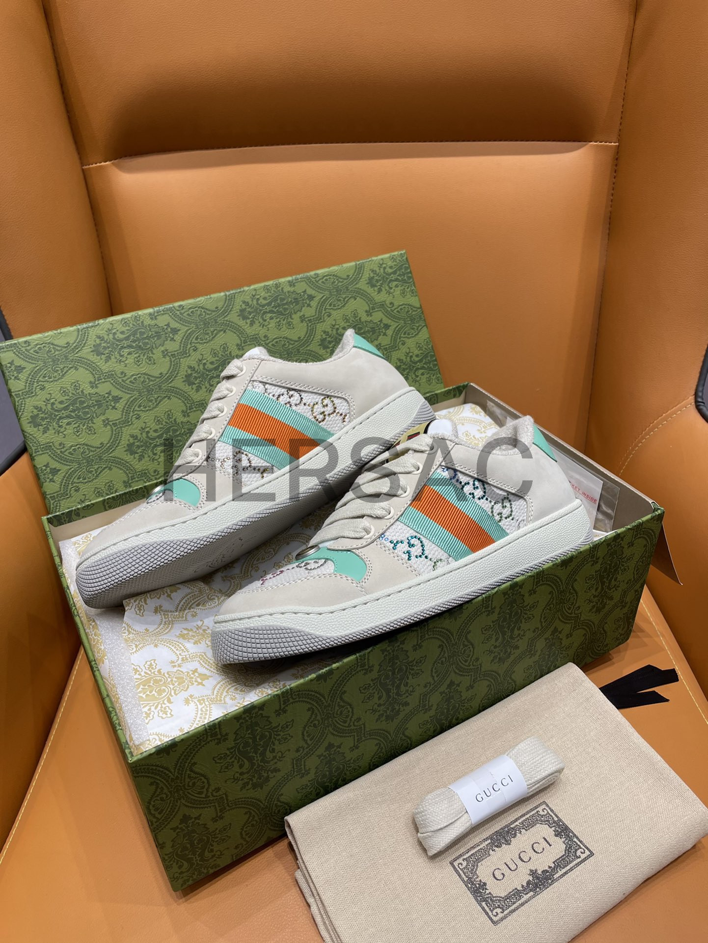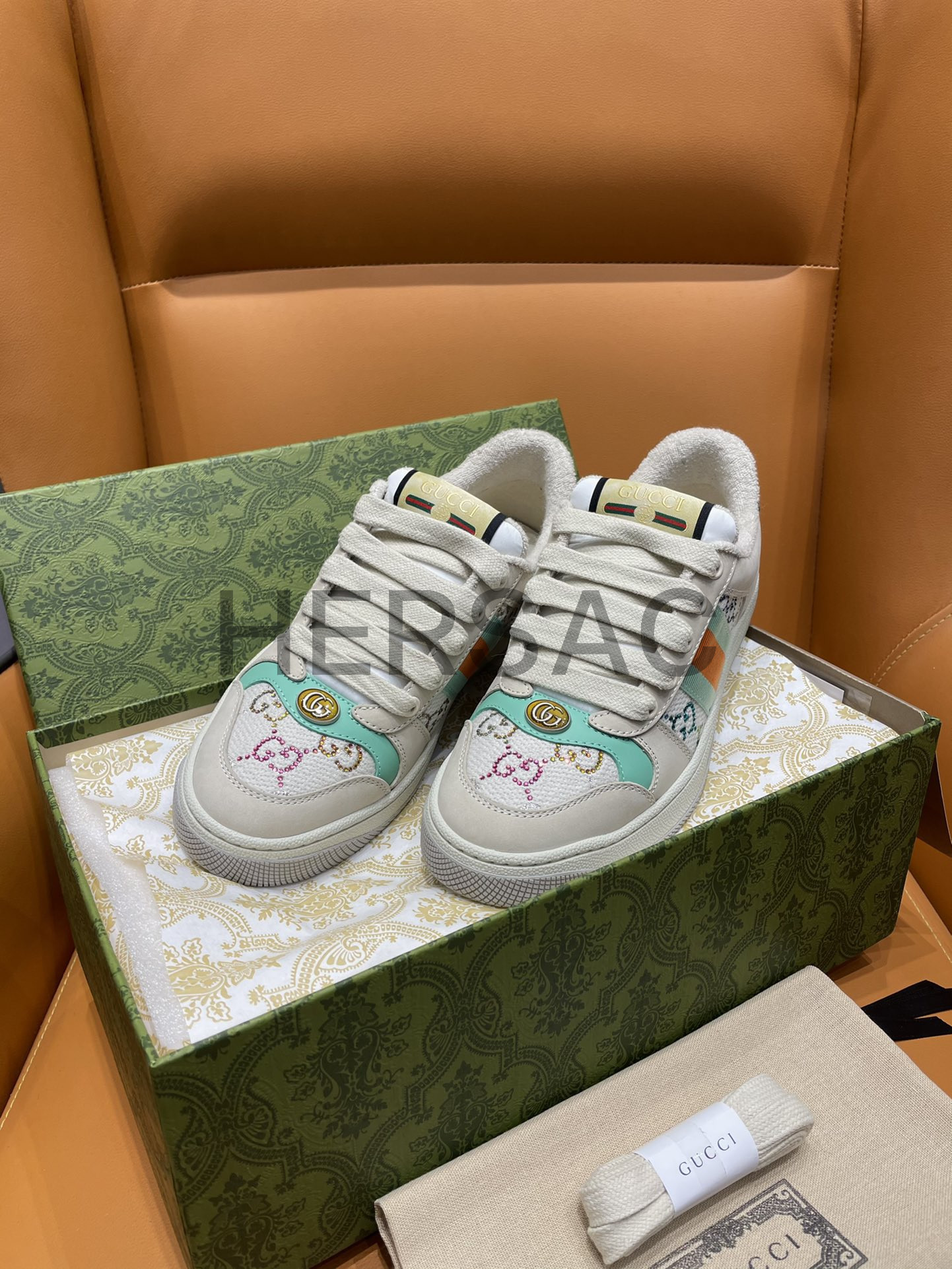 구찌 스크리너 장식 가죽 스니커즈 732193 FABH2 9178