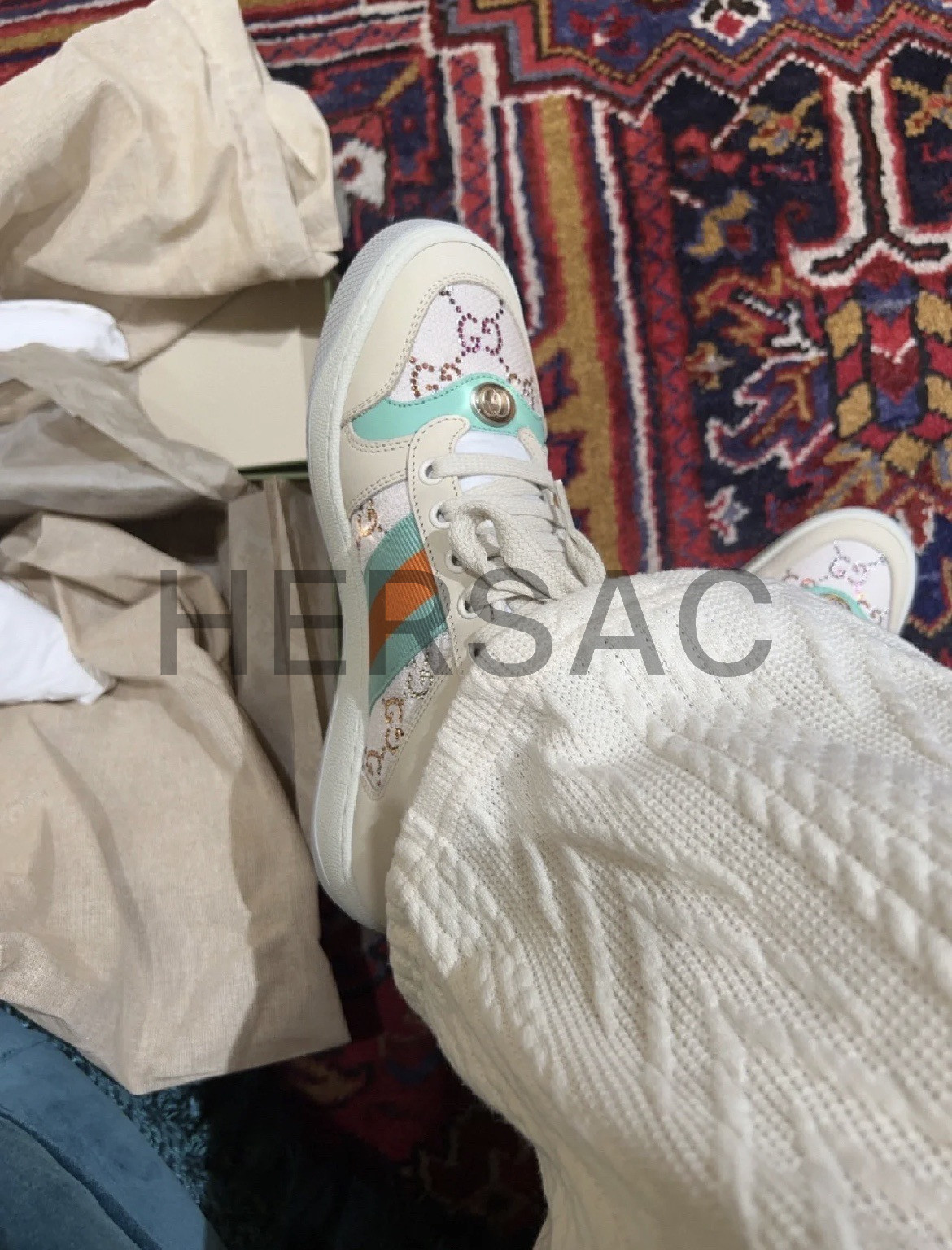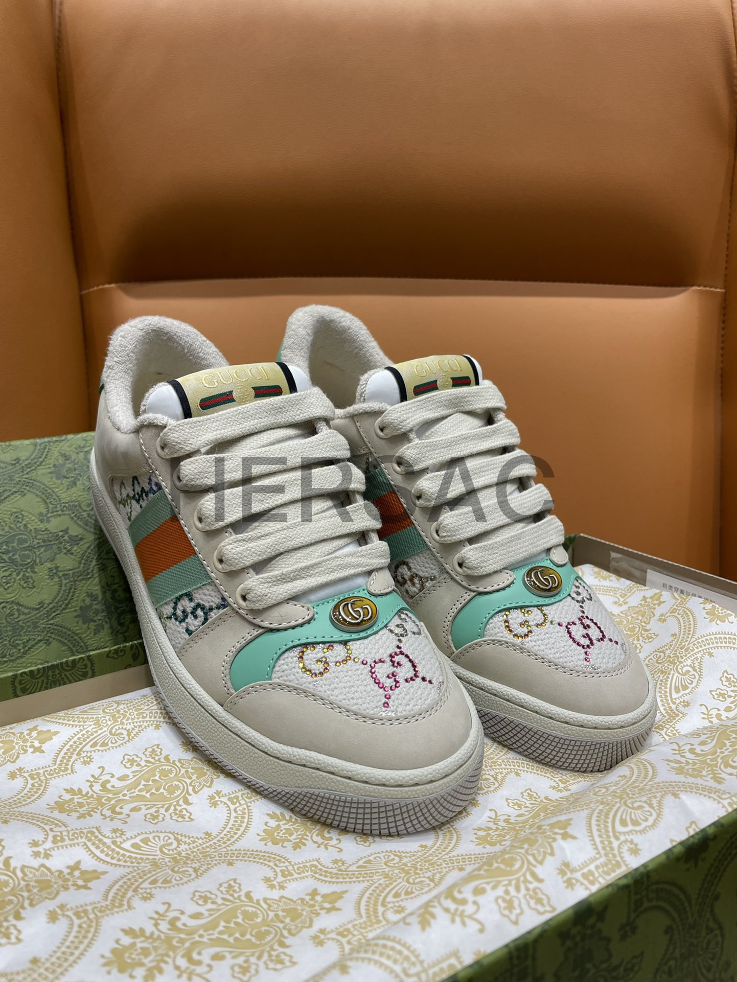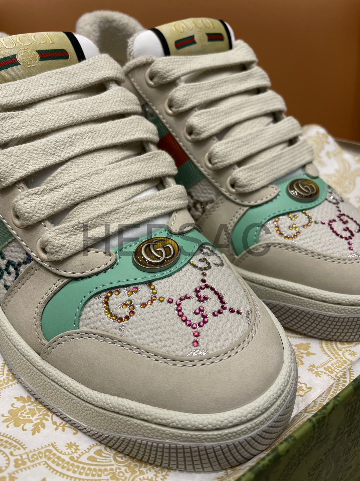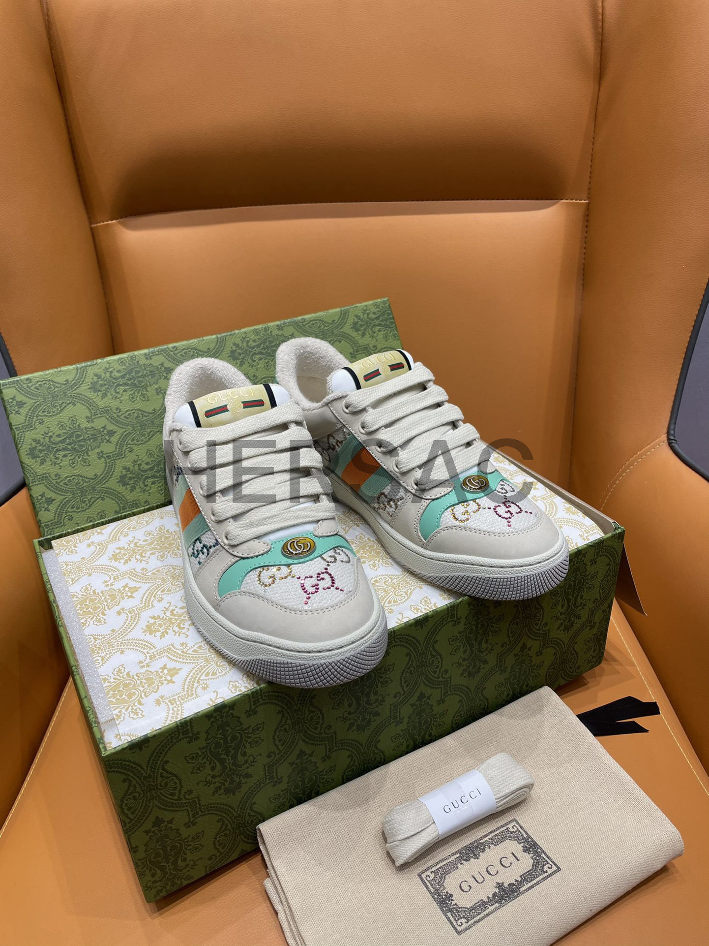 구찌 스크리너 장식 가죽 스니커즈 732193 FABH2 9178