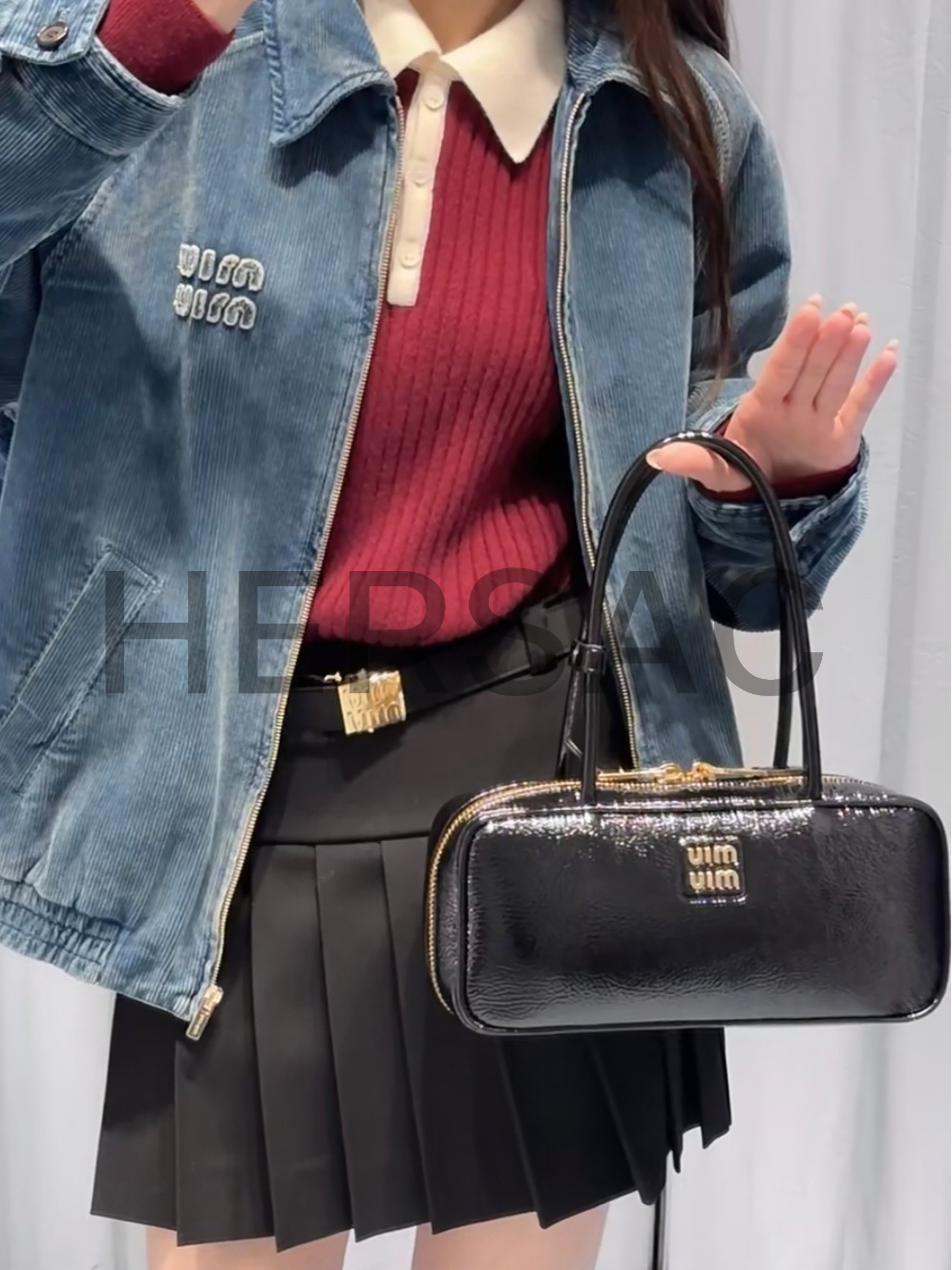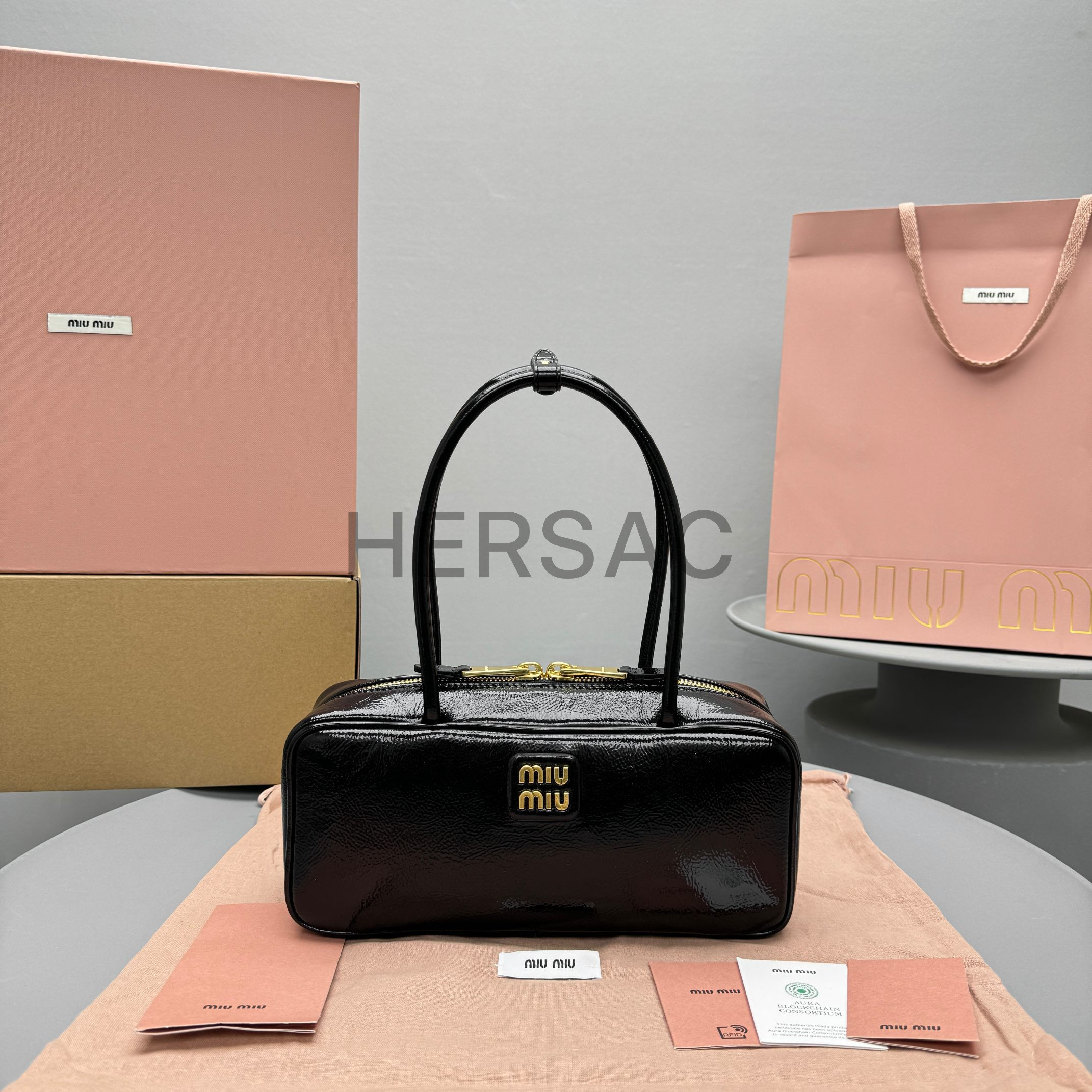 미우 미우 보 나플락 페이턴트 가죽 백 5BB173_ADNT_F0002_V_OLO