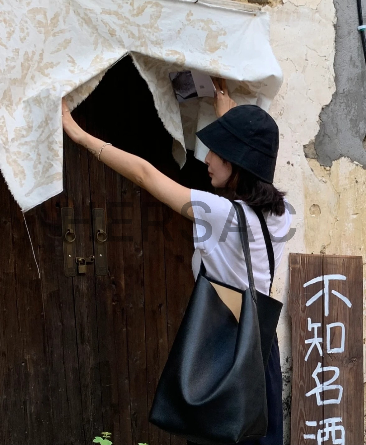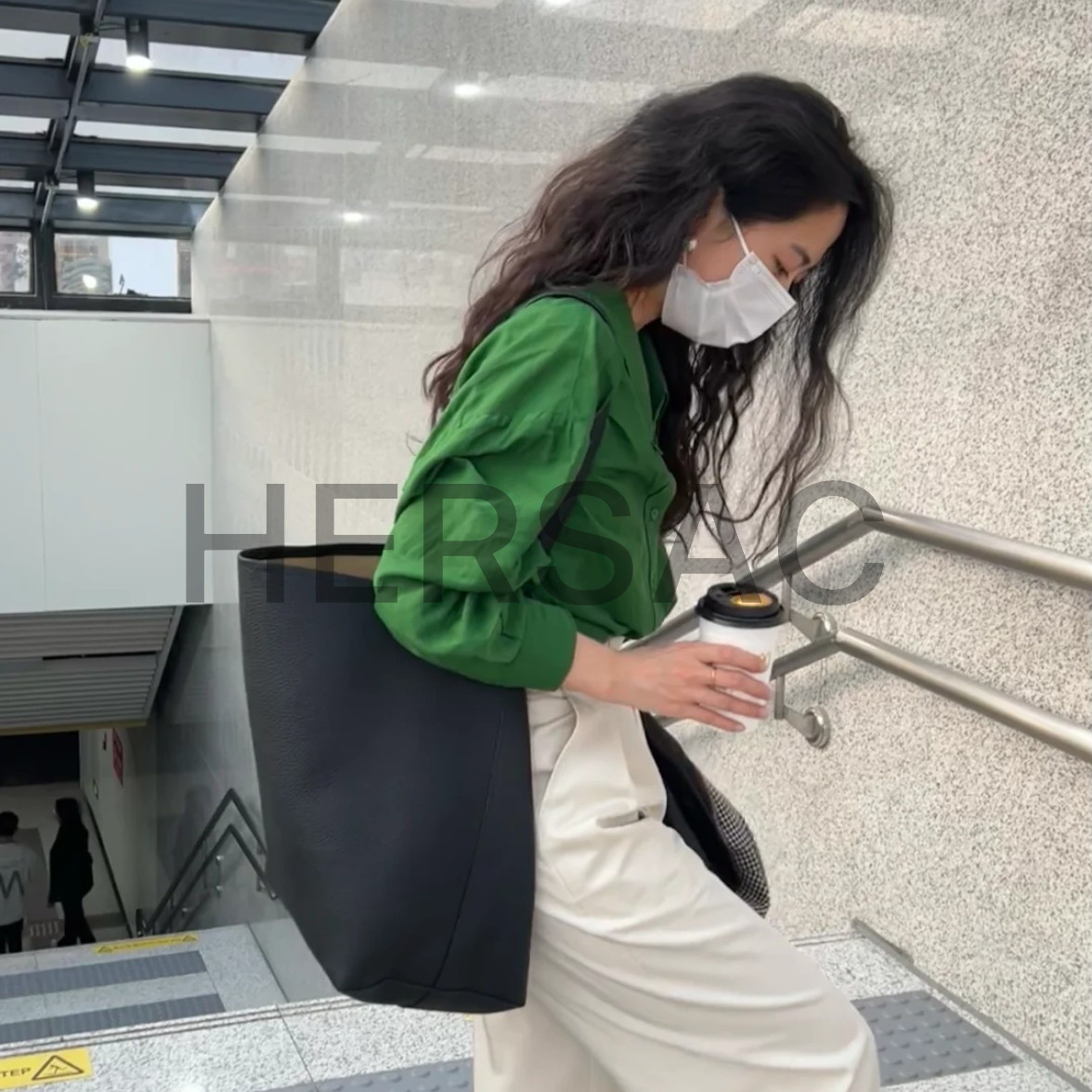 더 로우 라지 NS 파크 토트백 가죽 W1273L129BLK