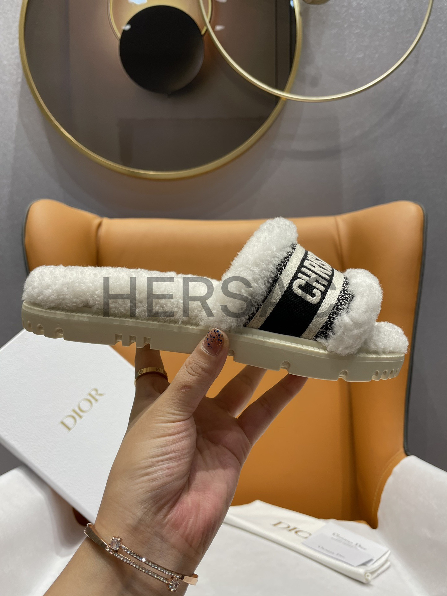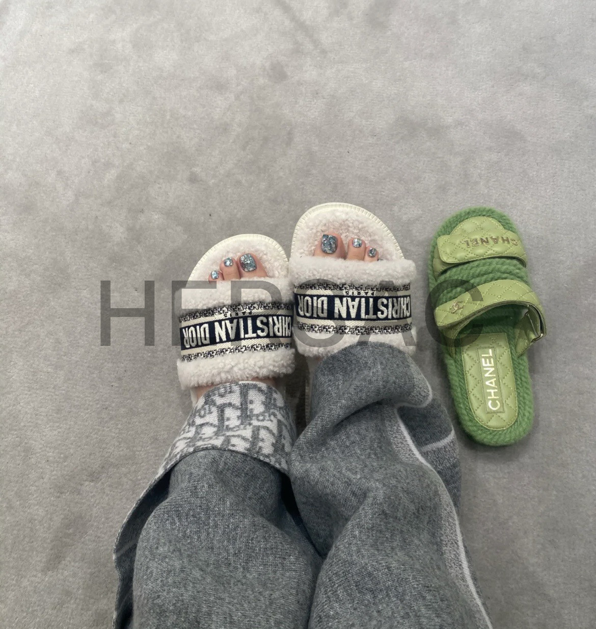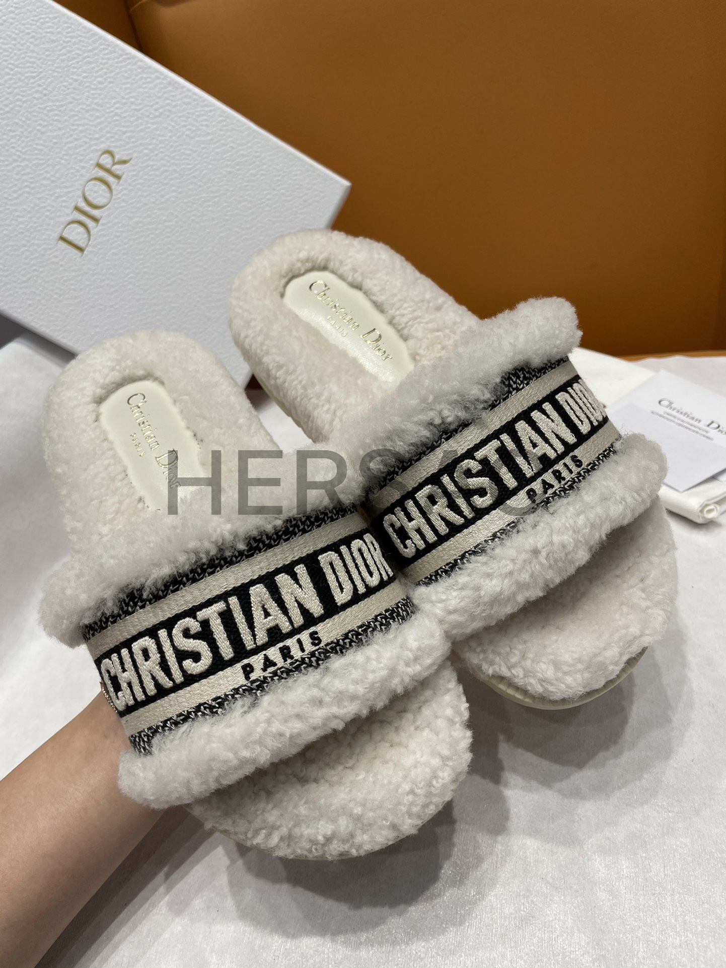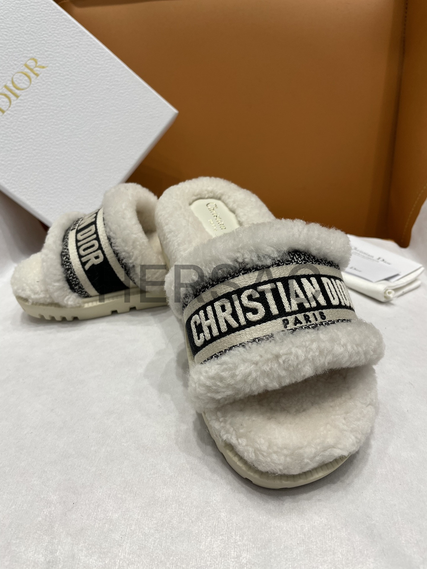 디올 시어링 캔버스 자수 드웨이 10mm 슬라이드 샌들 KCQ551ESK_S38U