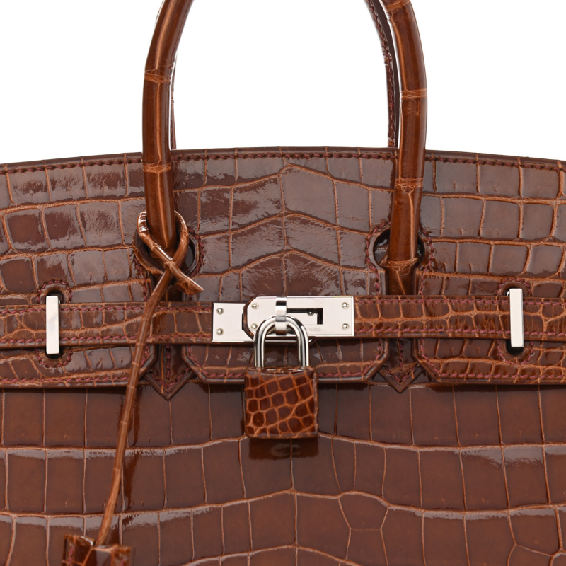 Hermes Birkin 25 Glossy Alligator Miel Silver