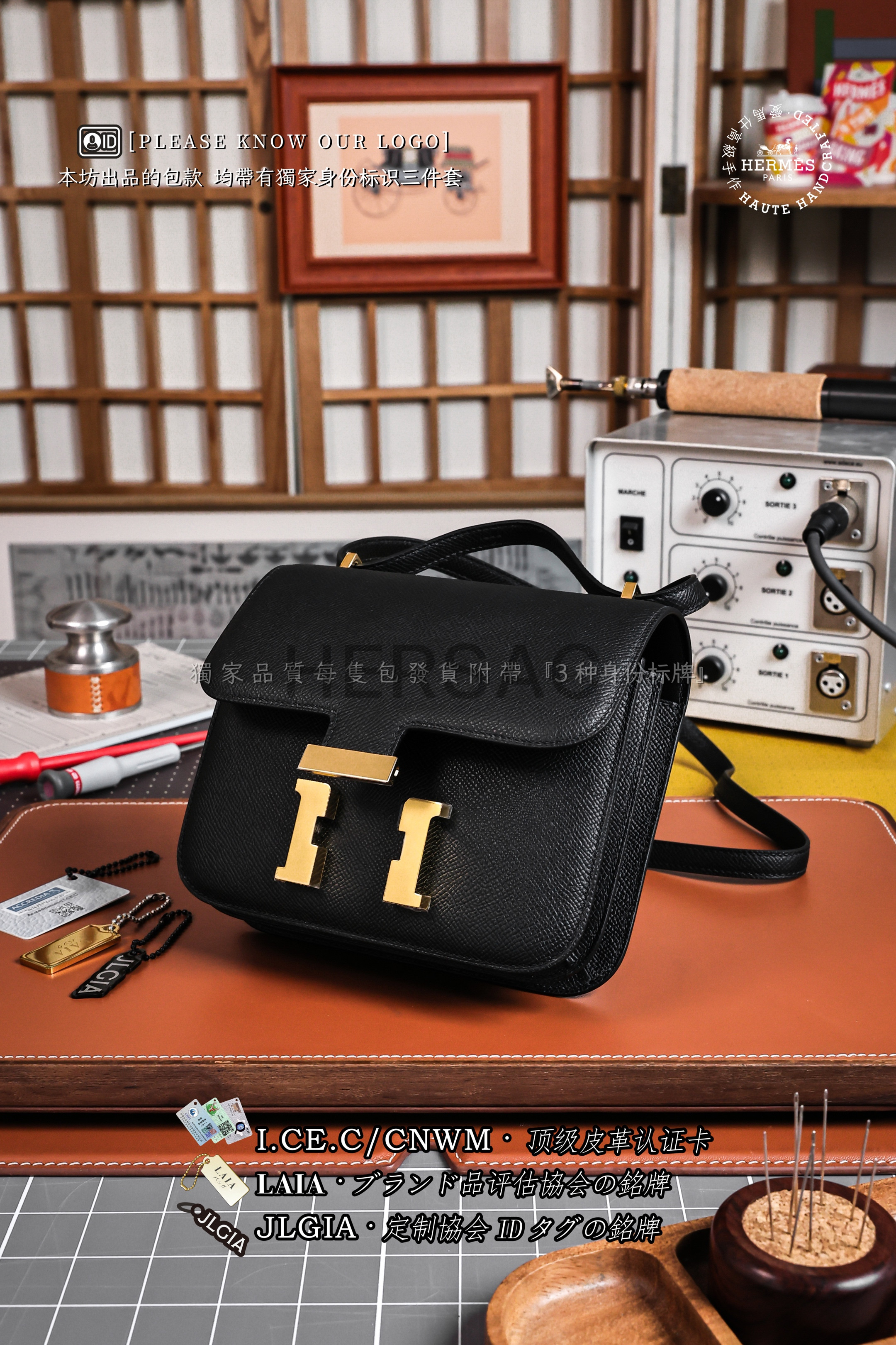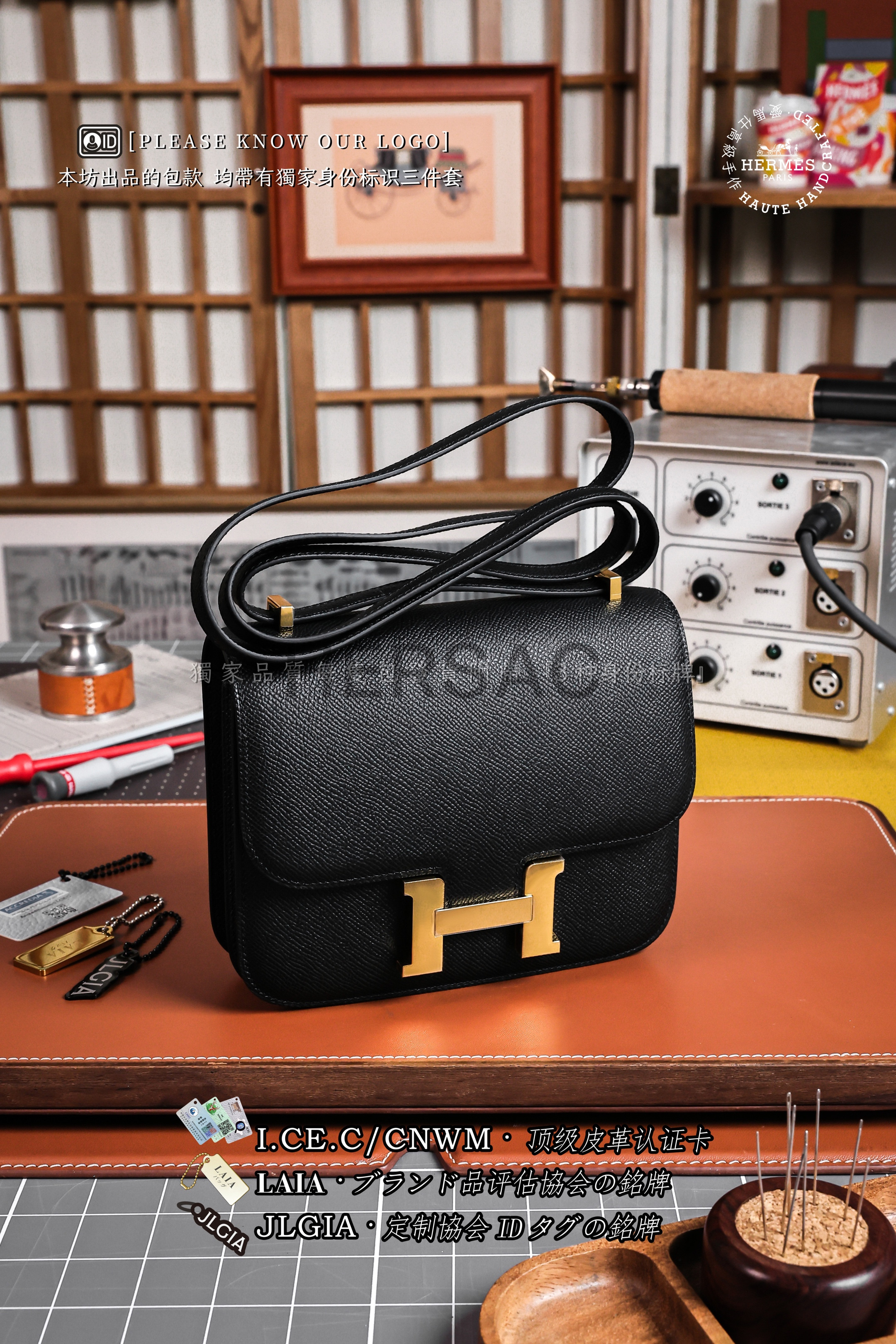에르메스 콘스탄스 19 앱송 블랙 골드 H056347CC89