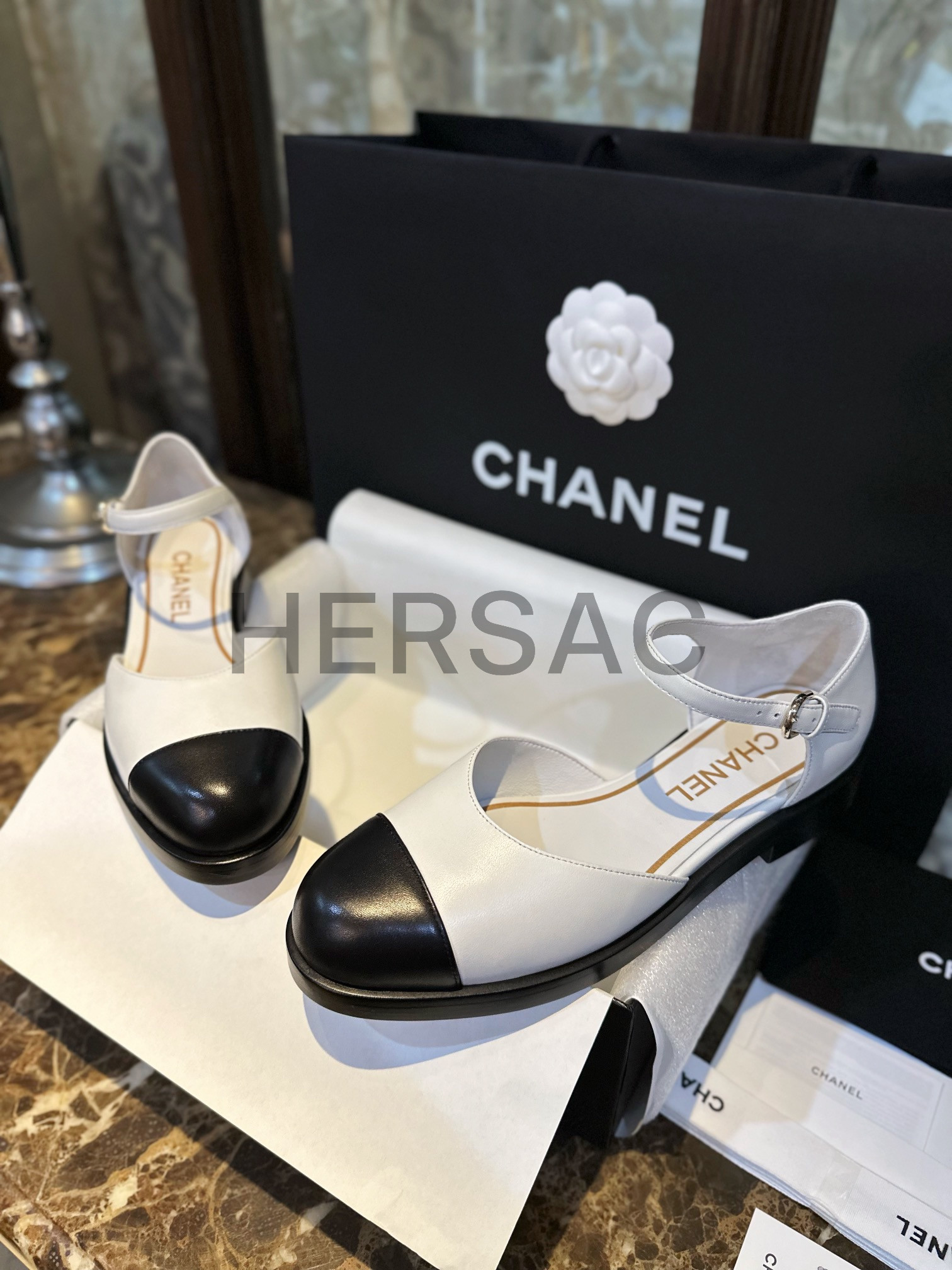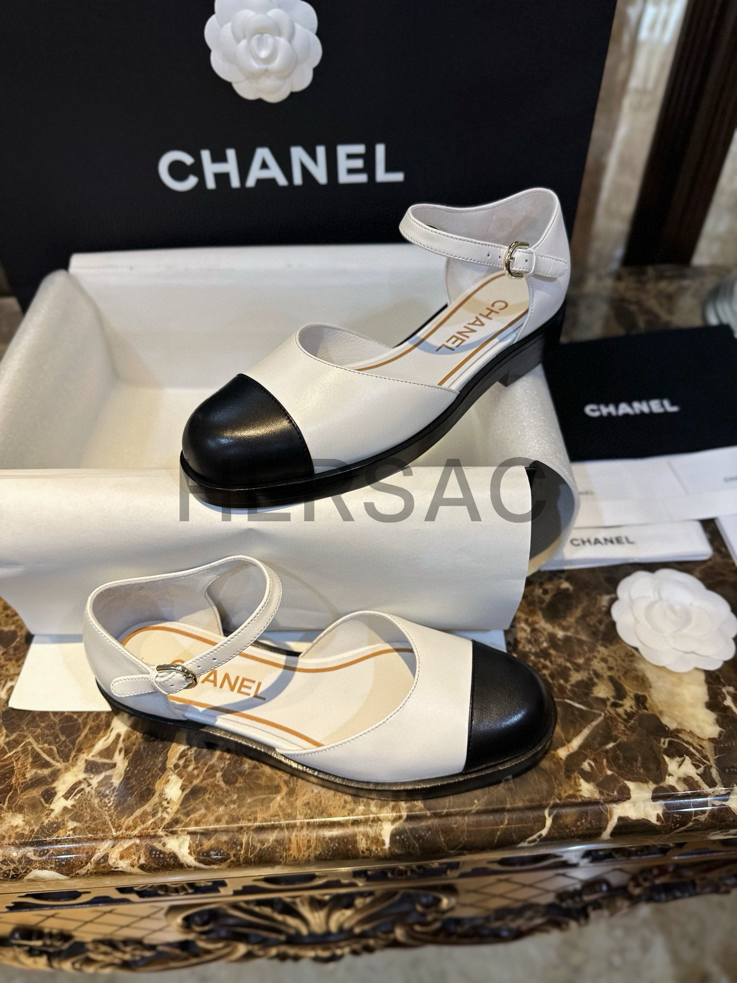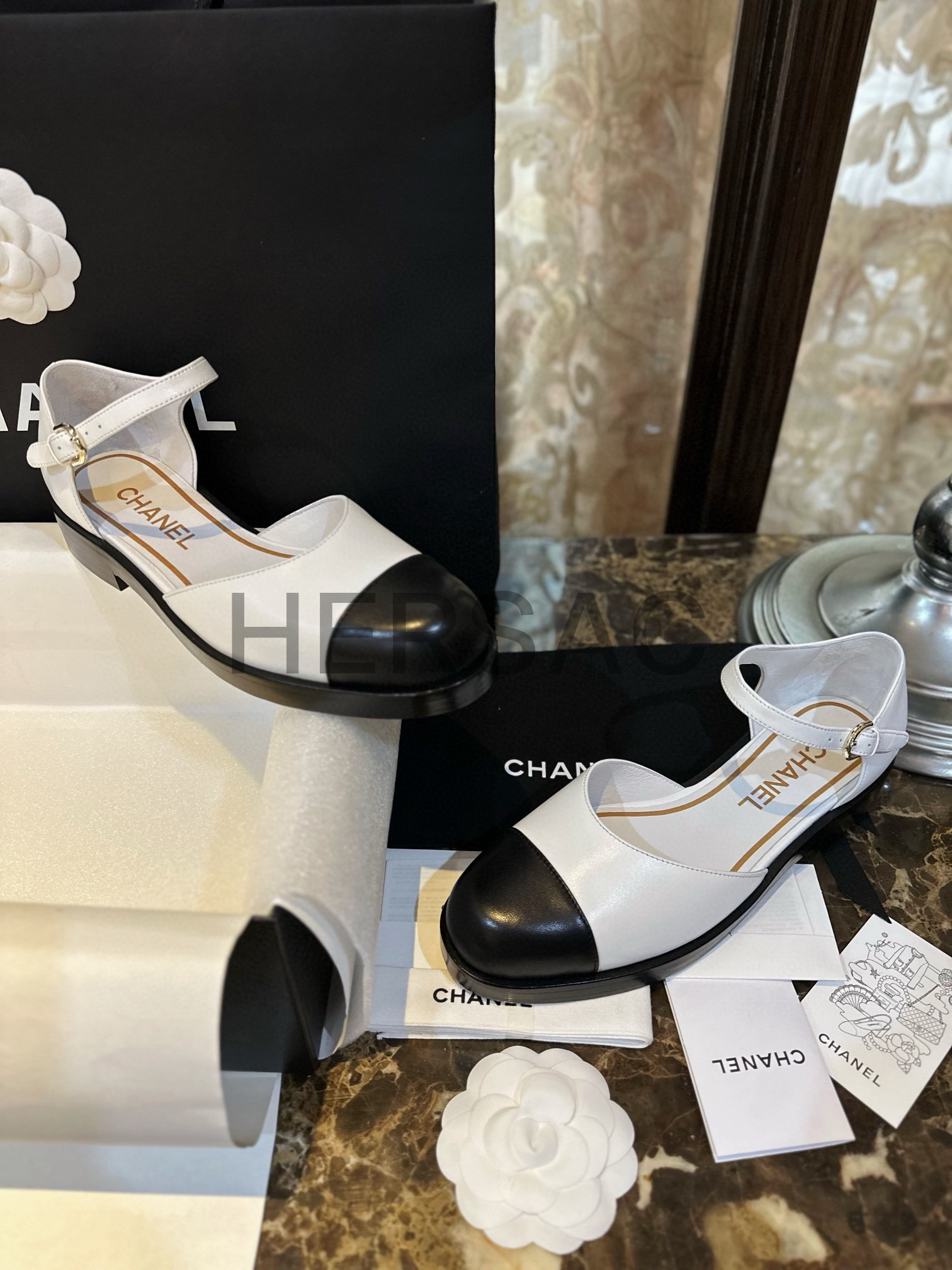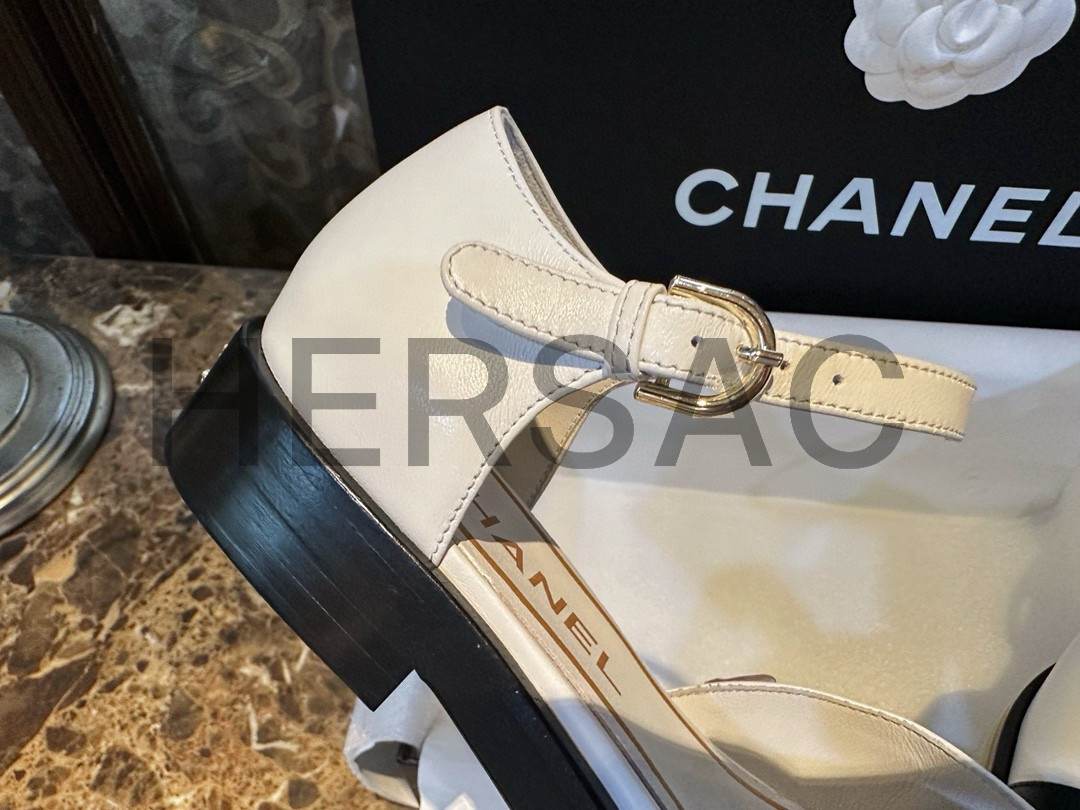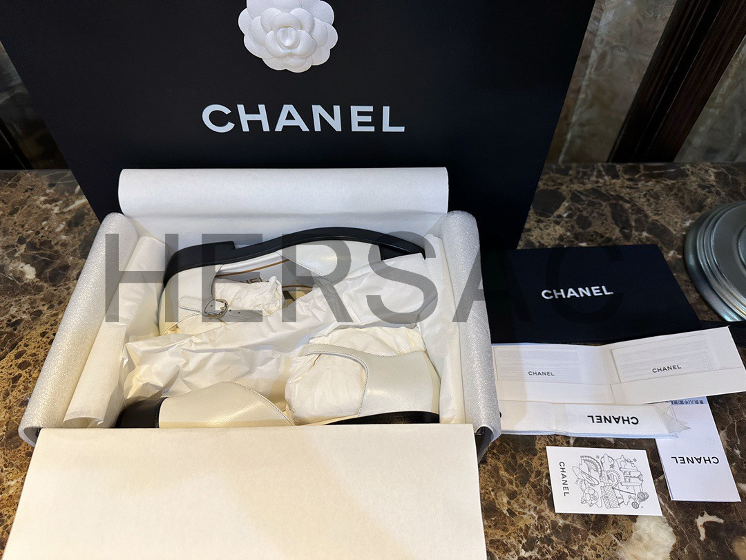 샤넬 화이트 레더 메리제인 슈즈 G39858