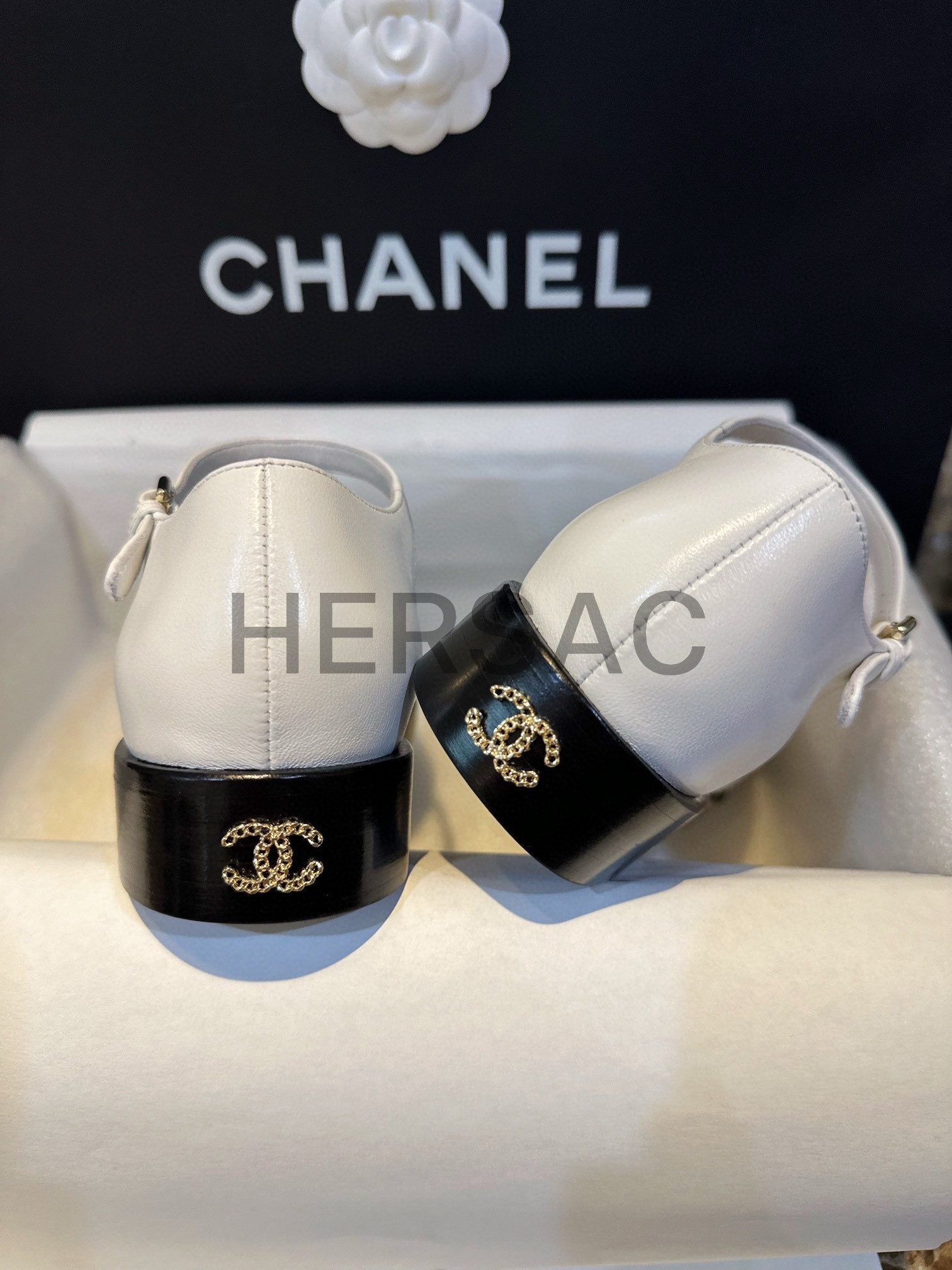 CHANEL White Leather Mary Jane Shoes > 플랫&발레리나&메리제인