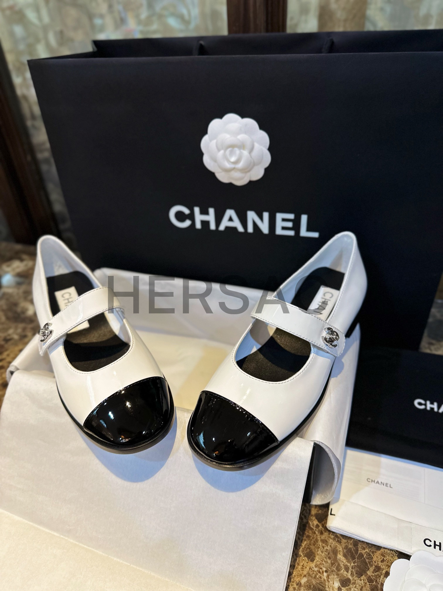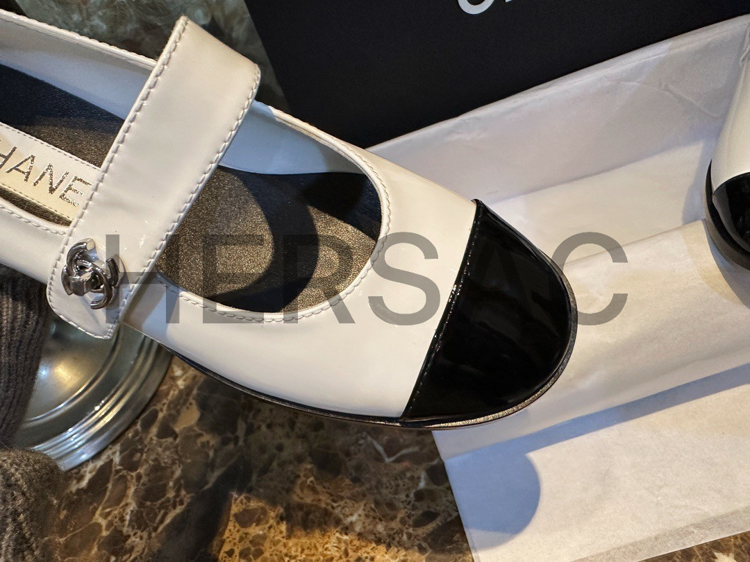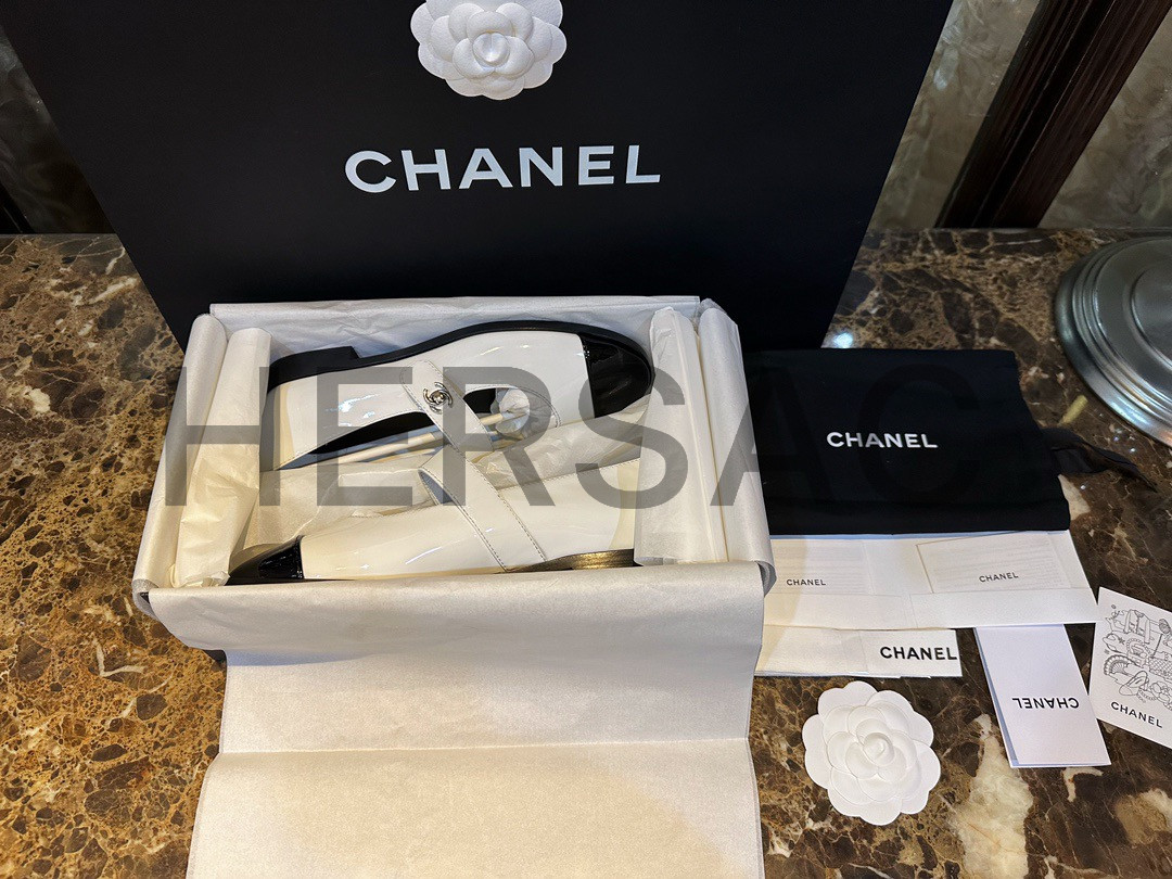 CHANEL Mary Jane Patent Kapskin White Shoes > 플랫&발레리나&메리제인