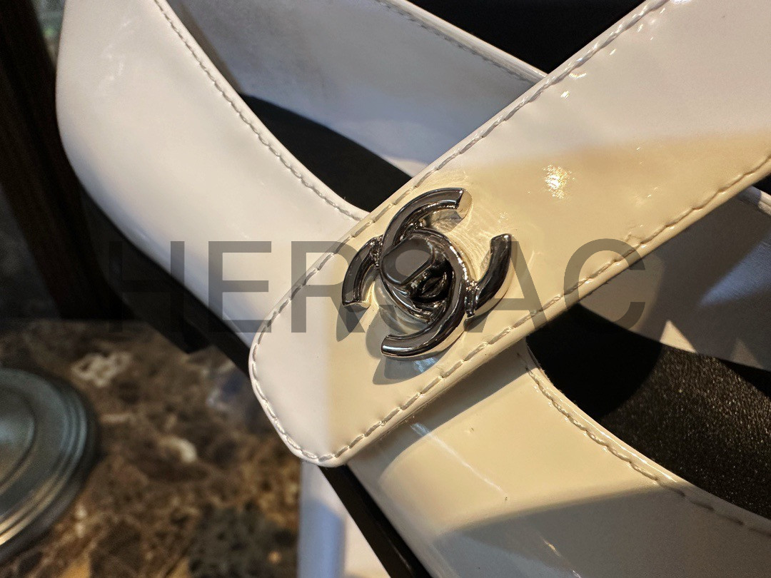 샤넬 메리 제인 페이턴트 카프스킨 화이트슈즈 G45280