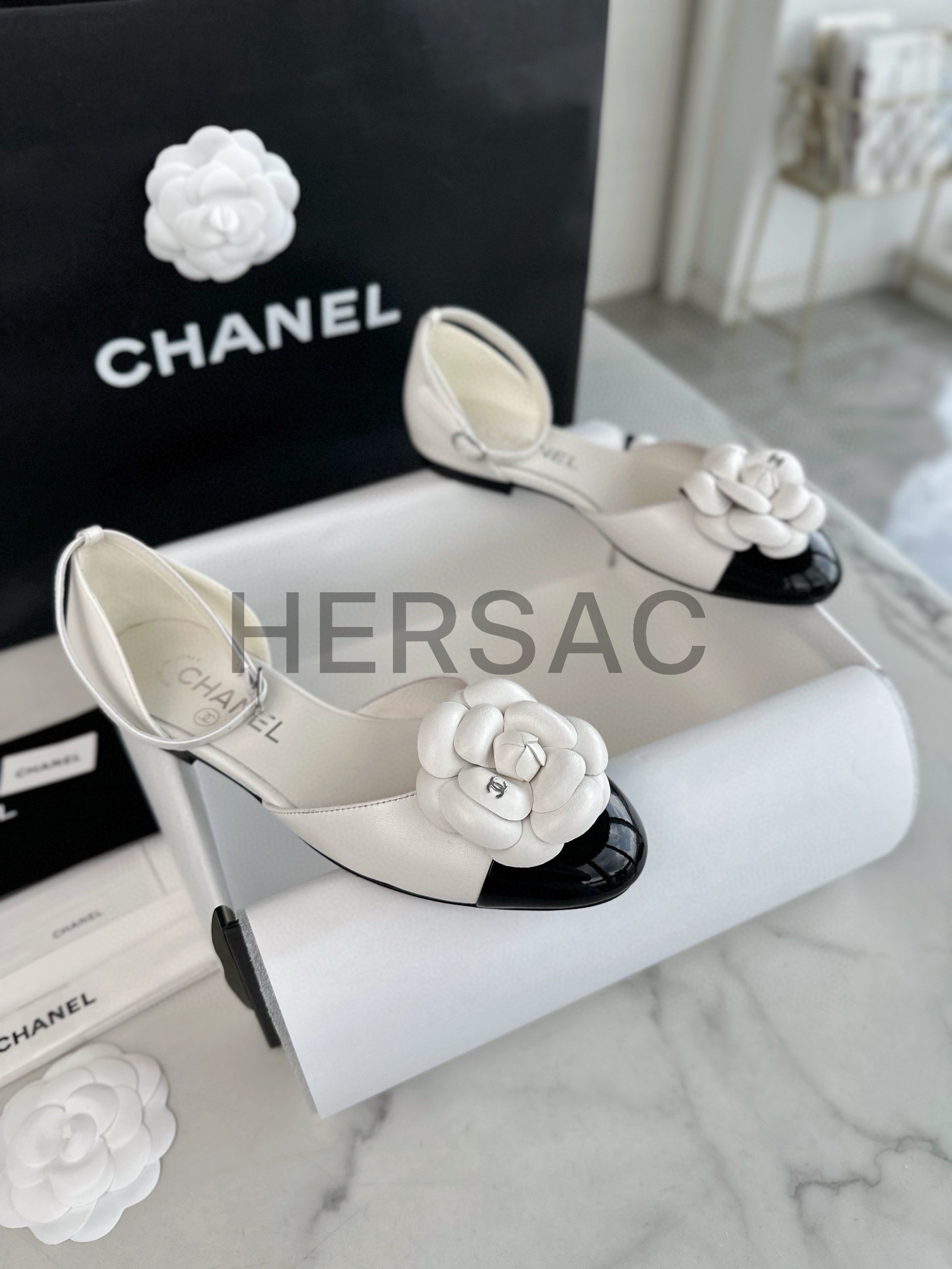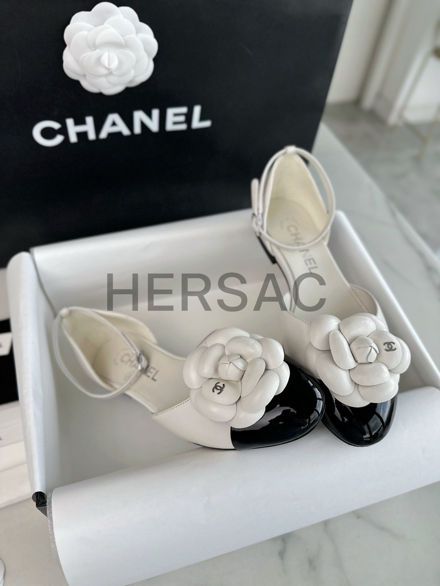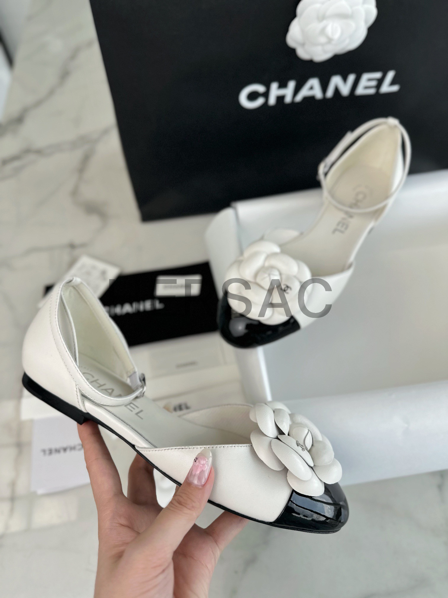 샤넬 까밀리아 메리제인 플랫 슈즈 G45497