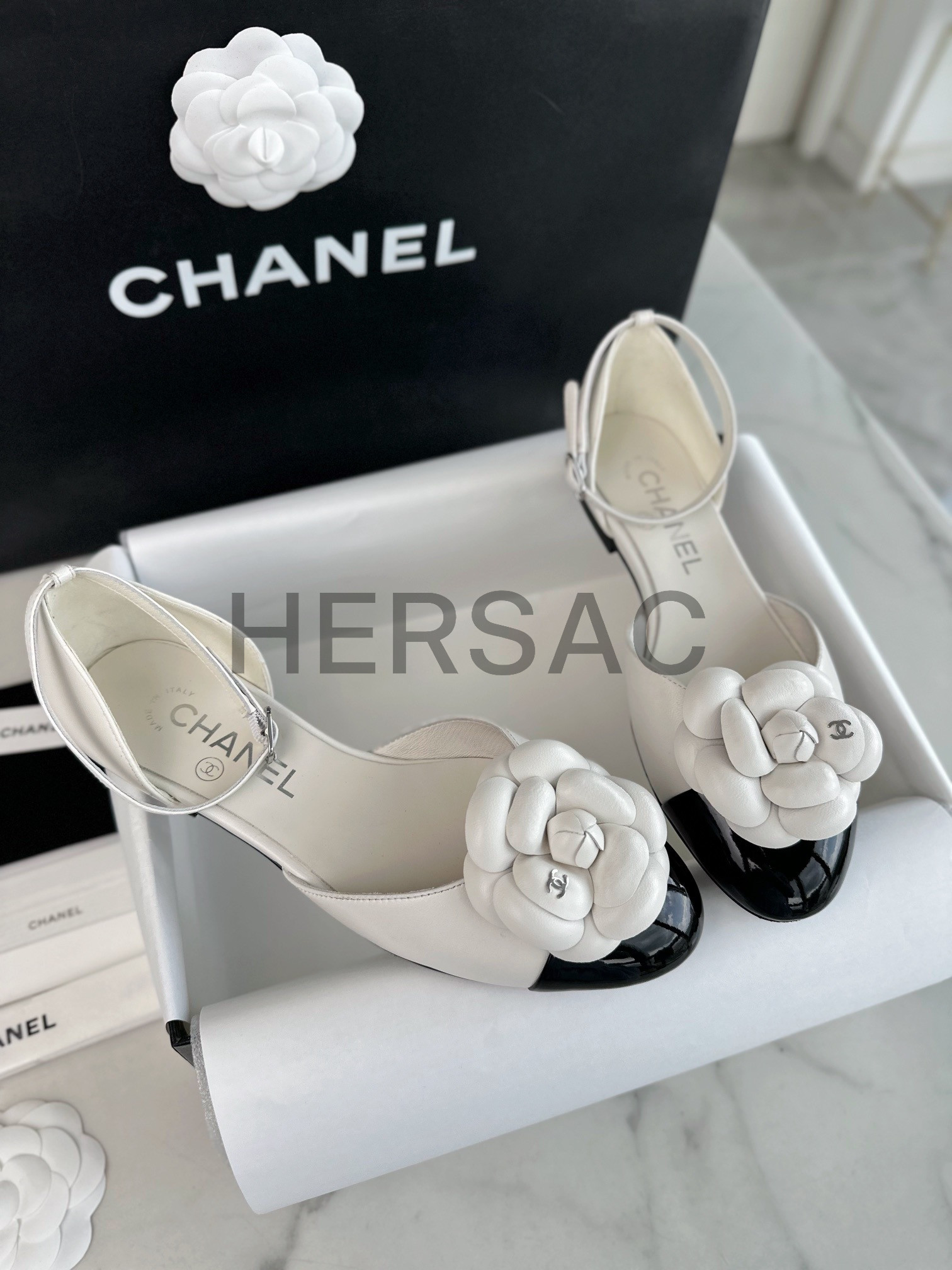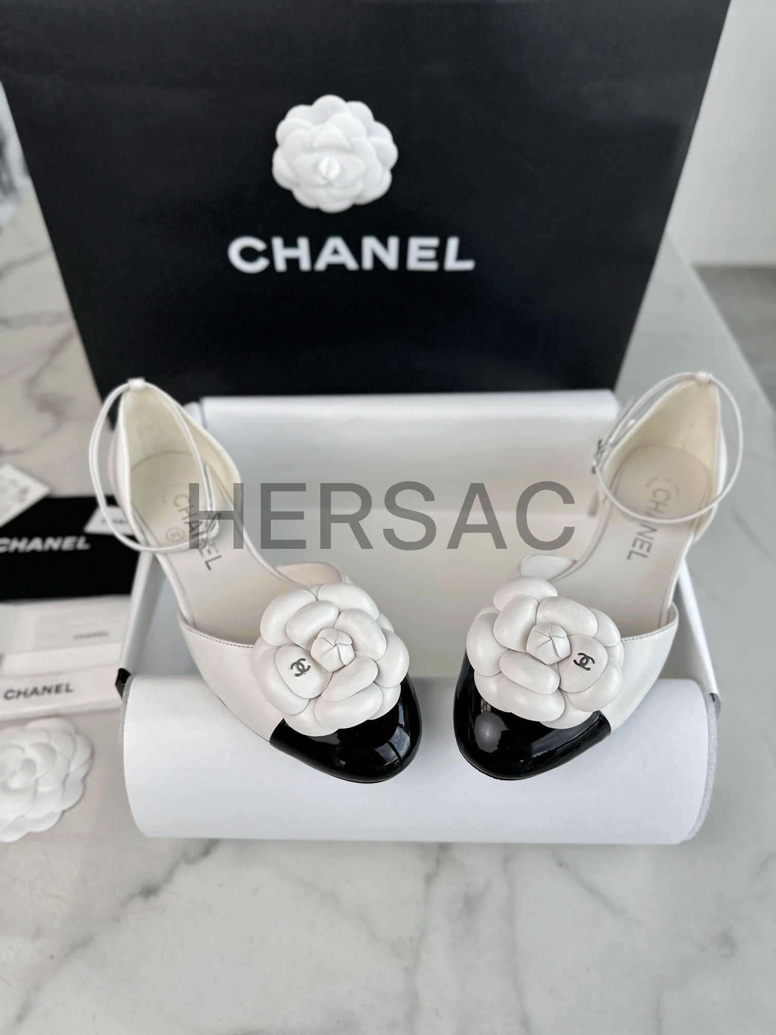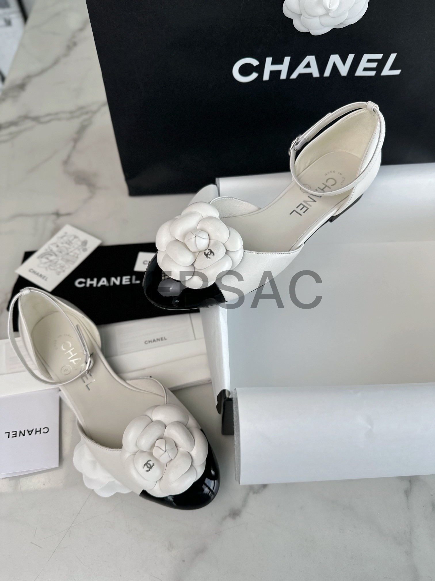 샤넬 까밀리아 메리제인 플랫 슈즈 G45497