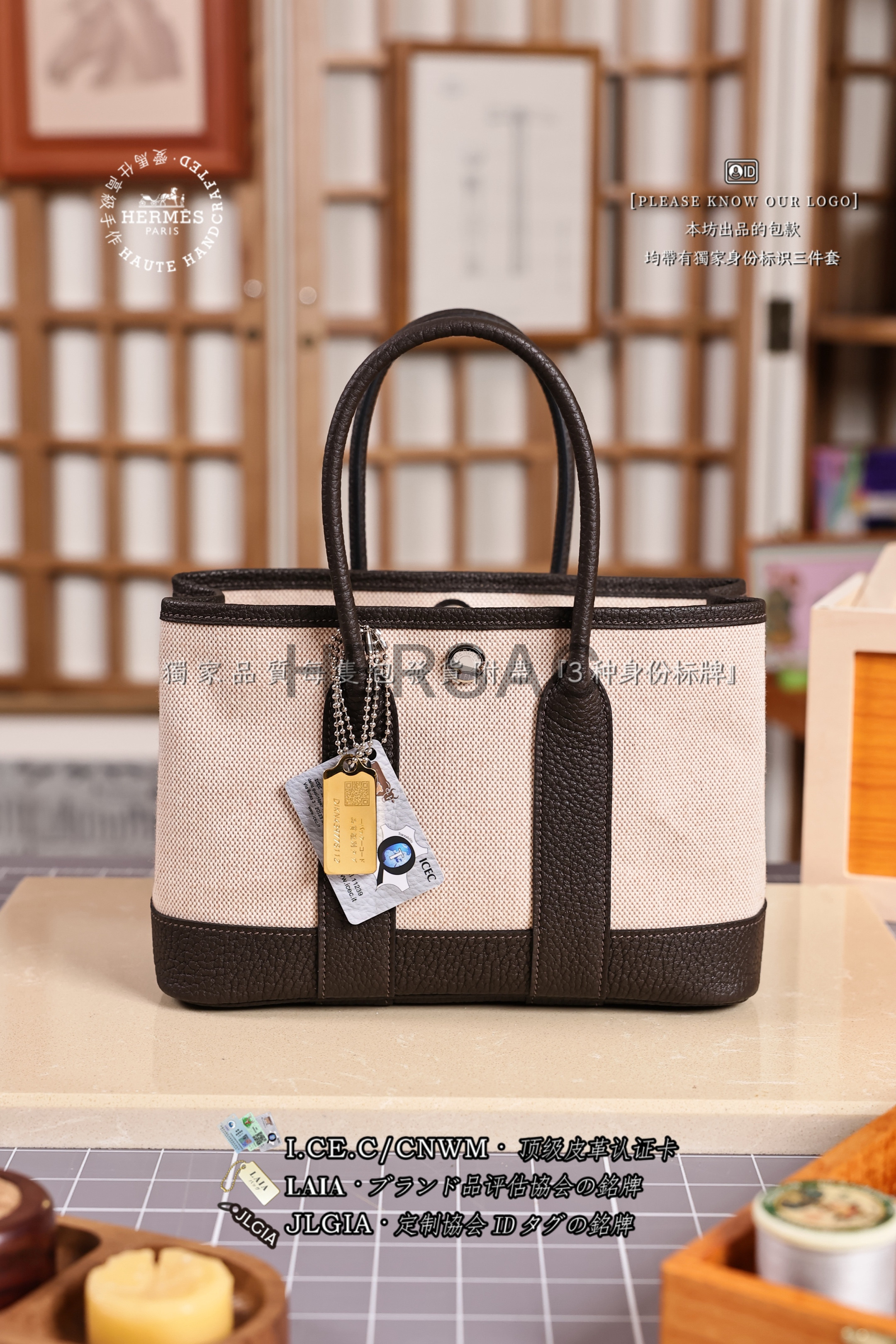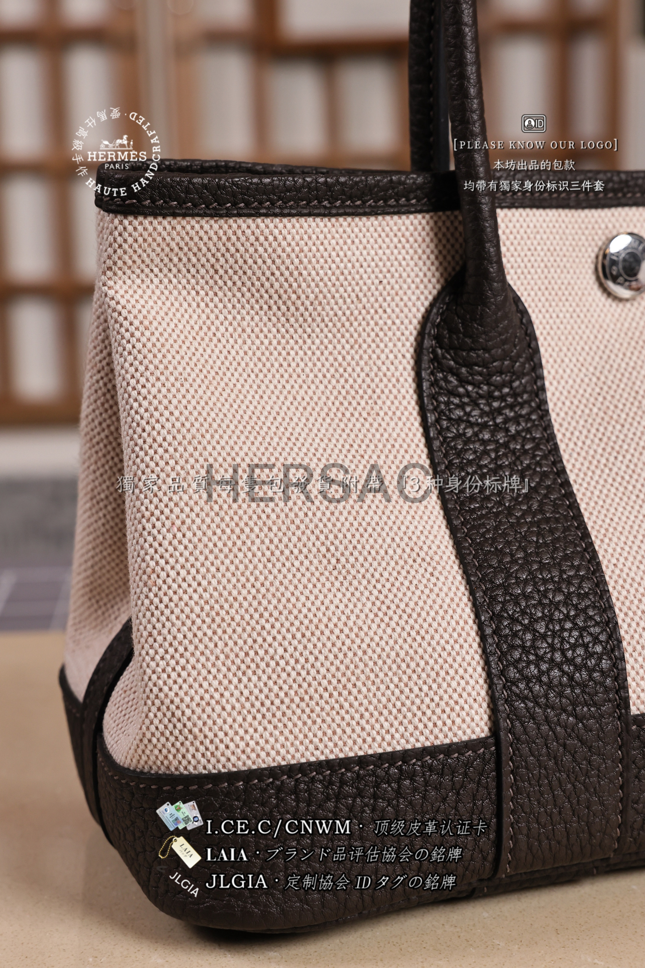 Hermes Mini Garden Party Toile Ebene Silver > Premium 토트백