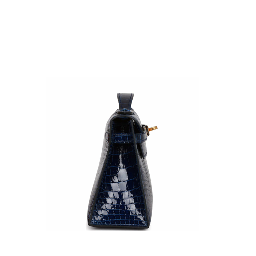 Hermes Mini Kelly I Glossy Porosus Bleu Arine Gold