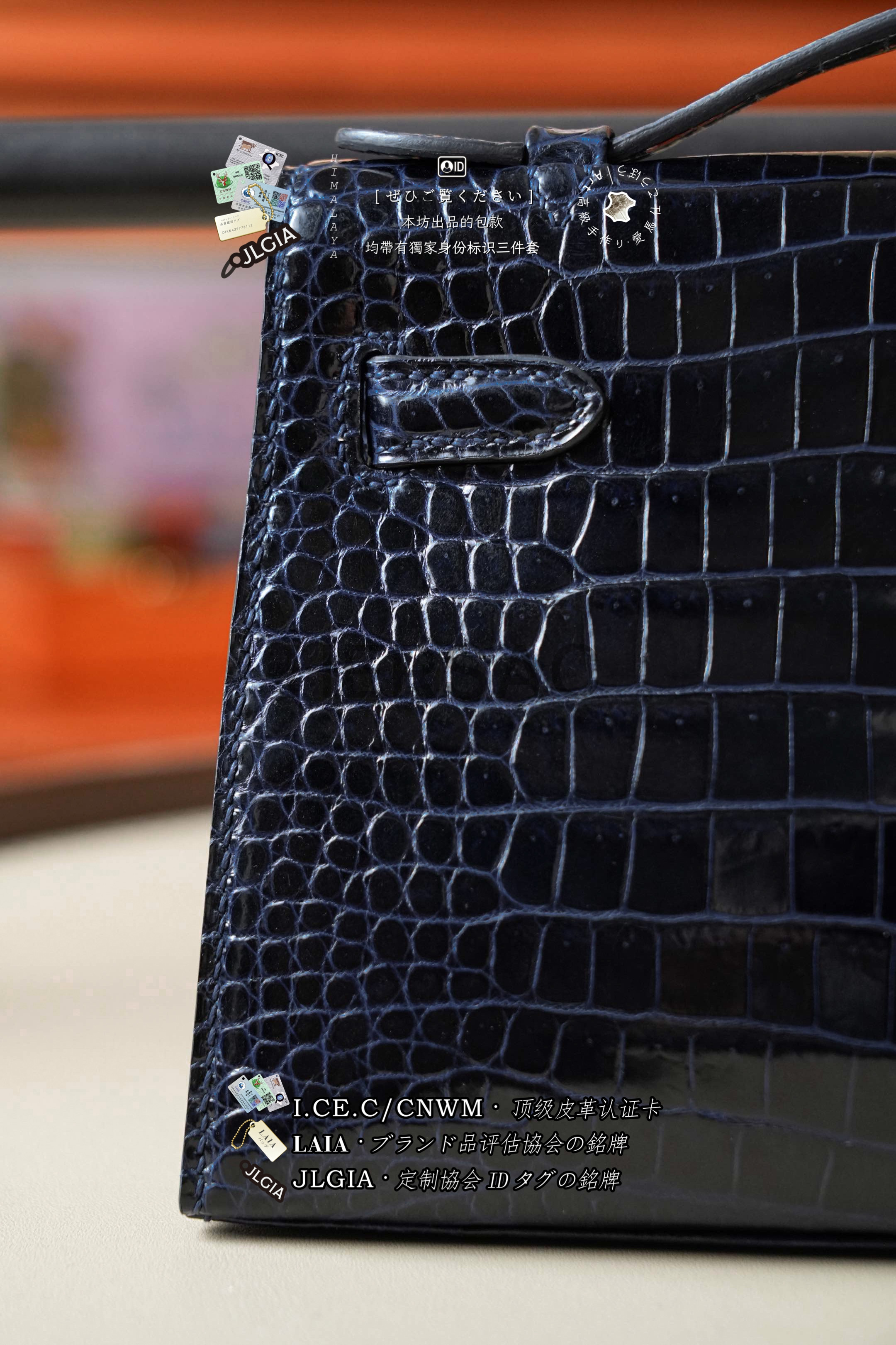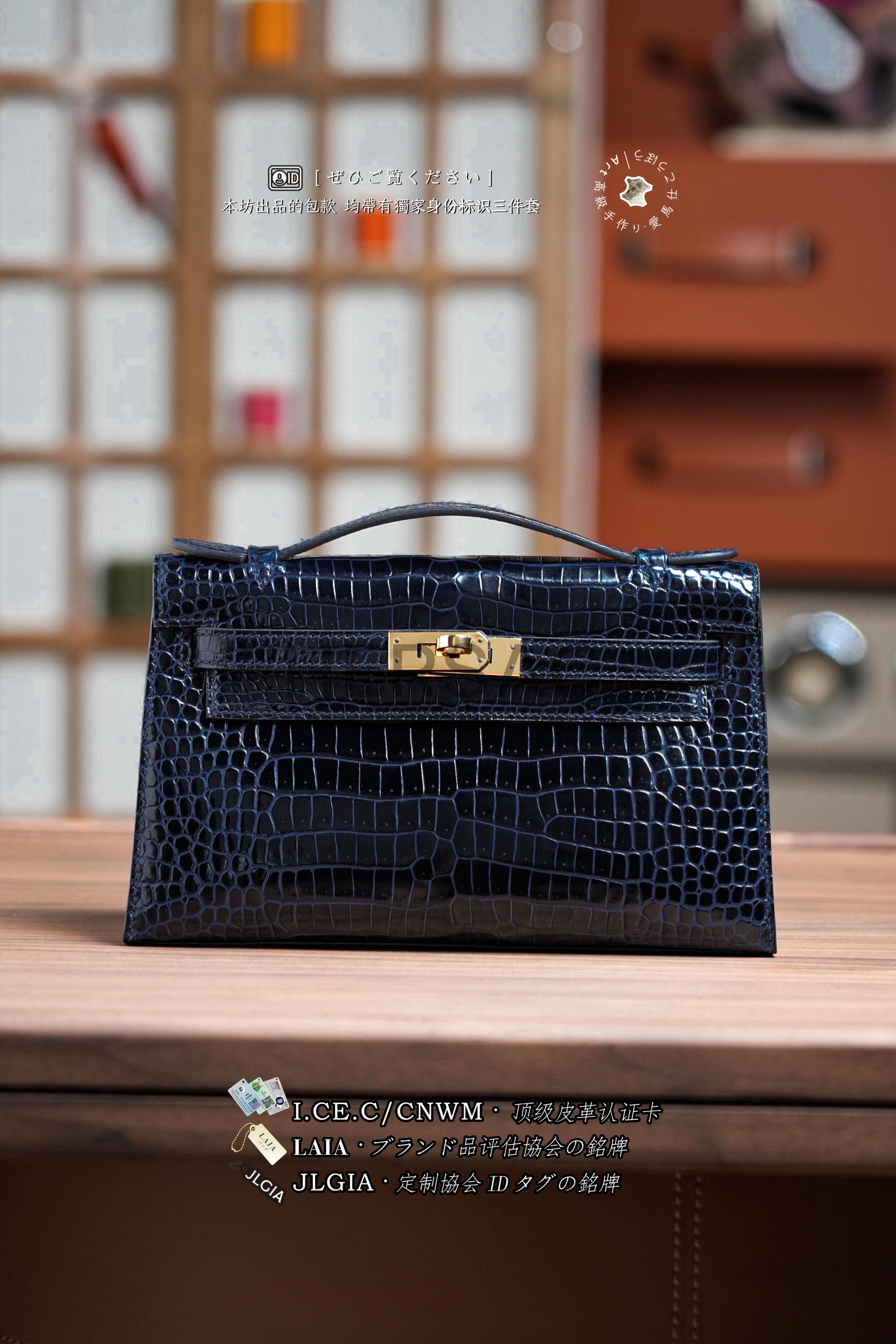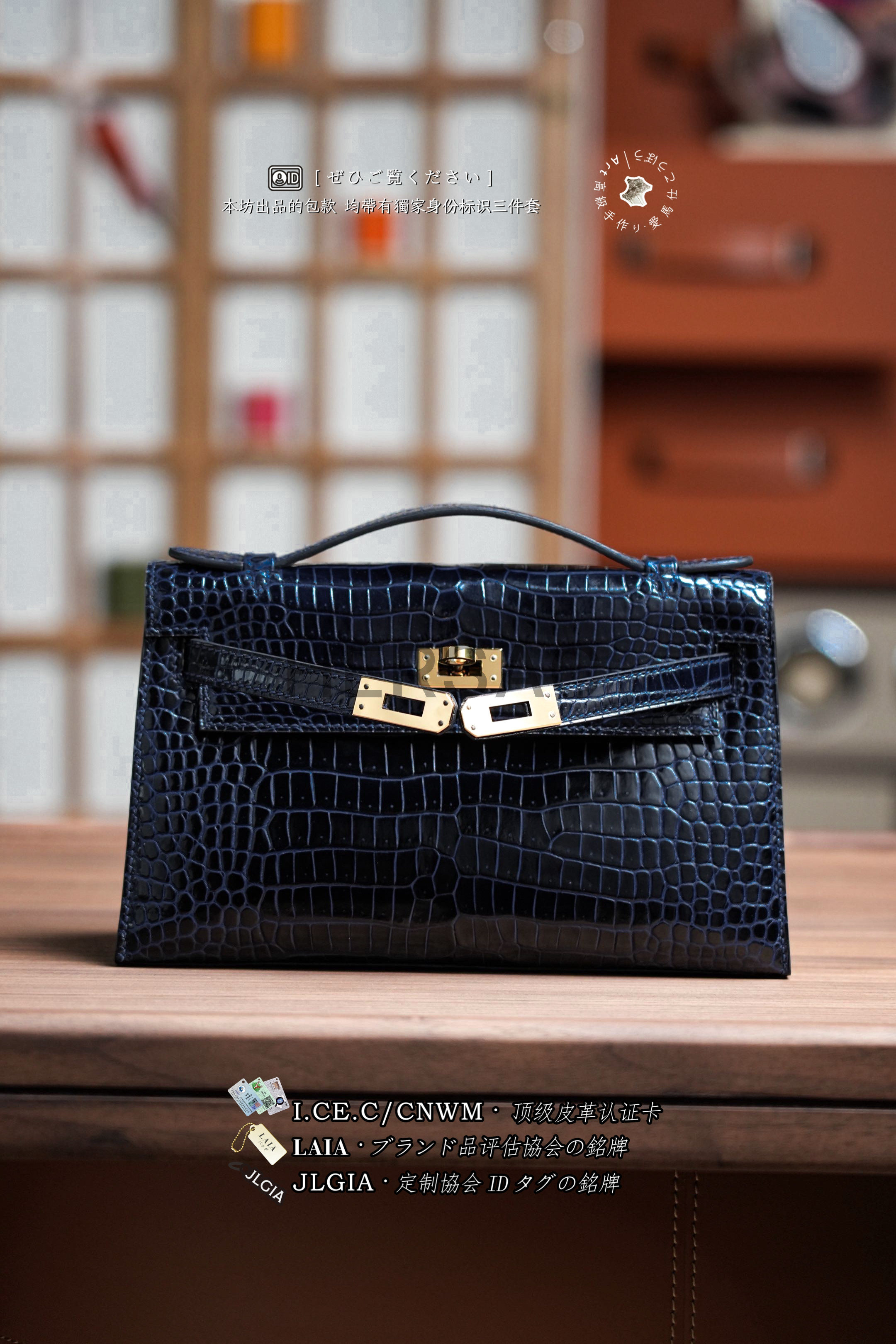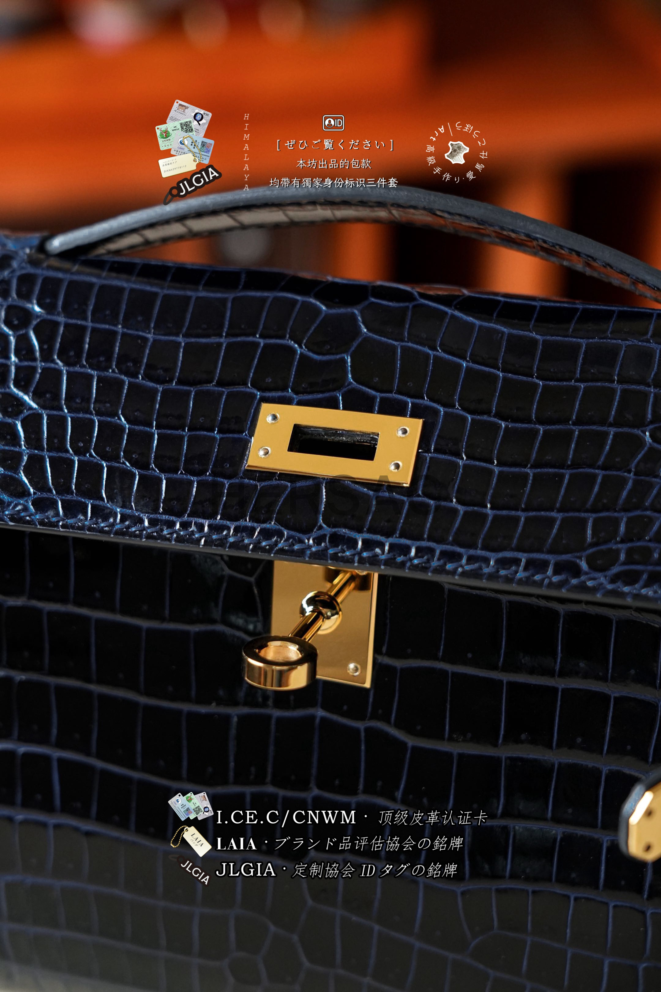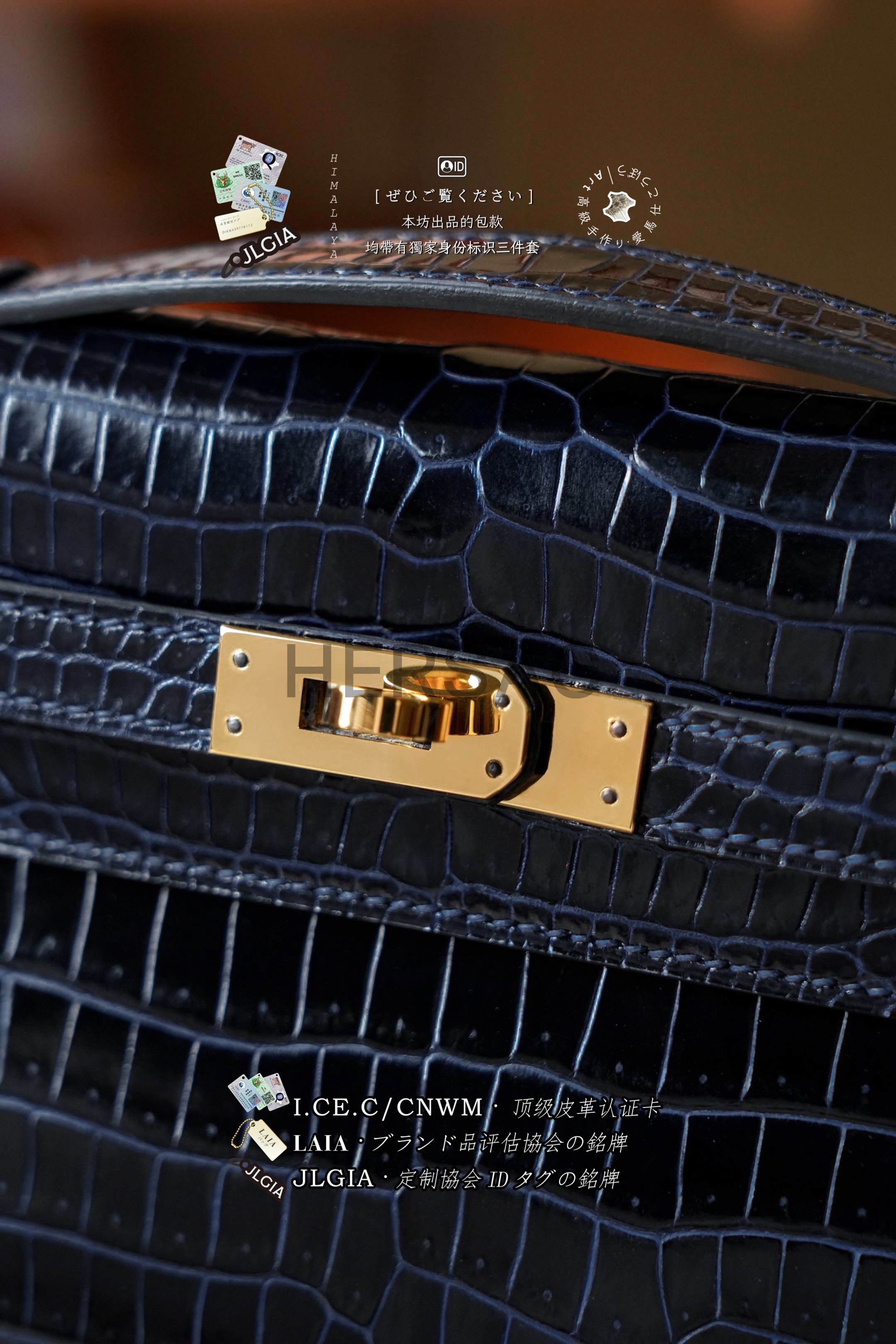 Hermes Mini Kelly I Glossy Porosus Bleu Arine Gold > Premium 토트백