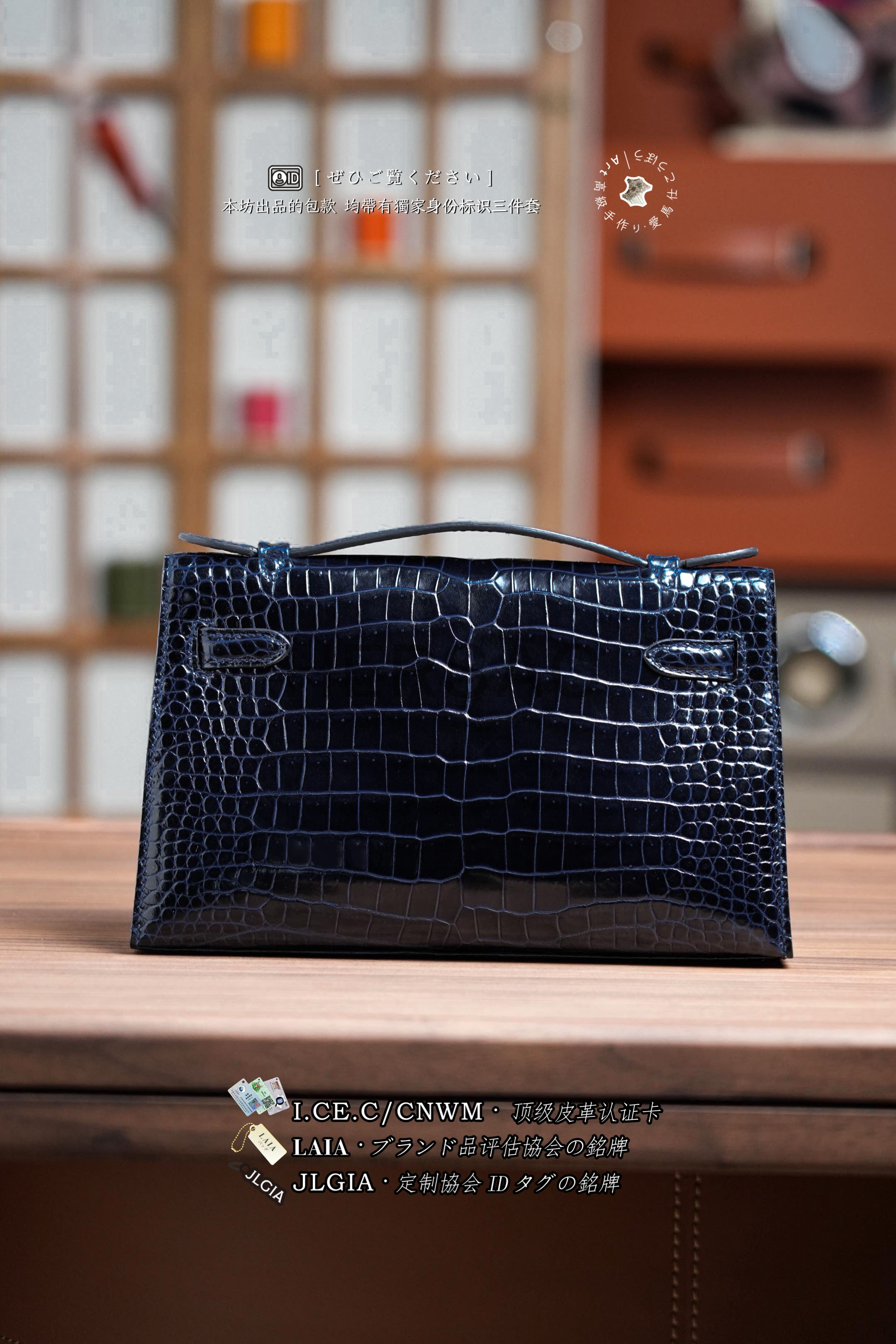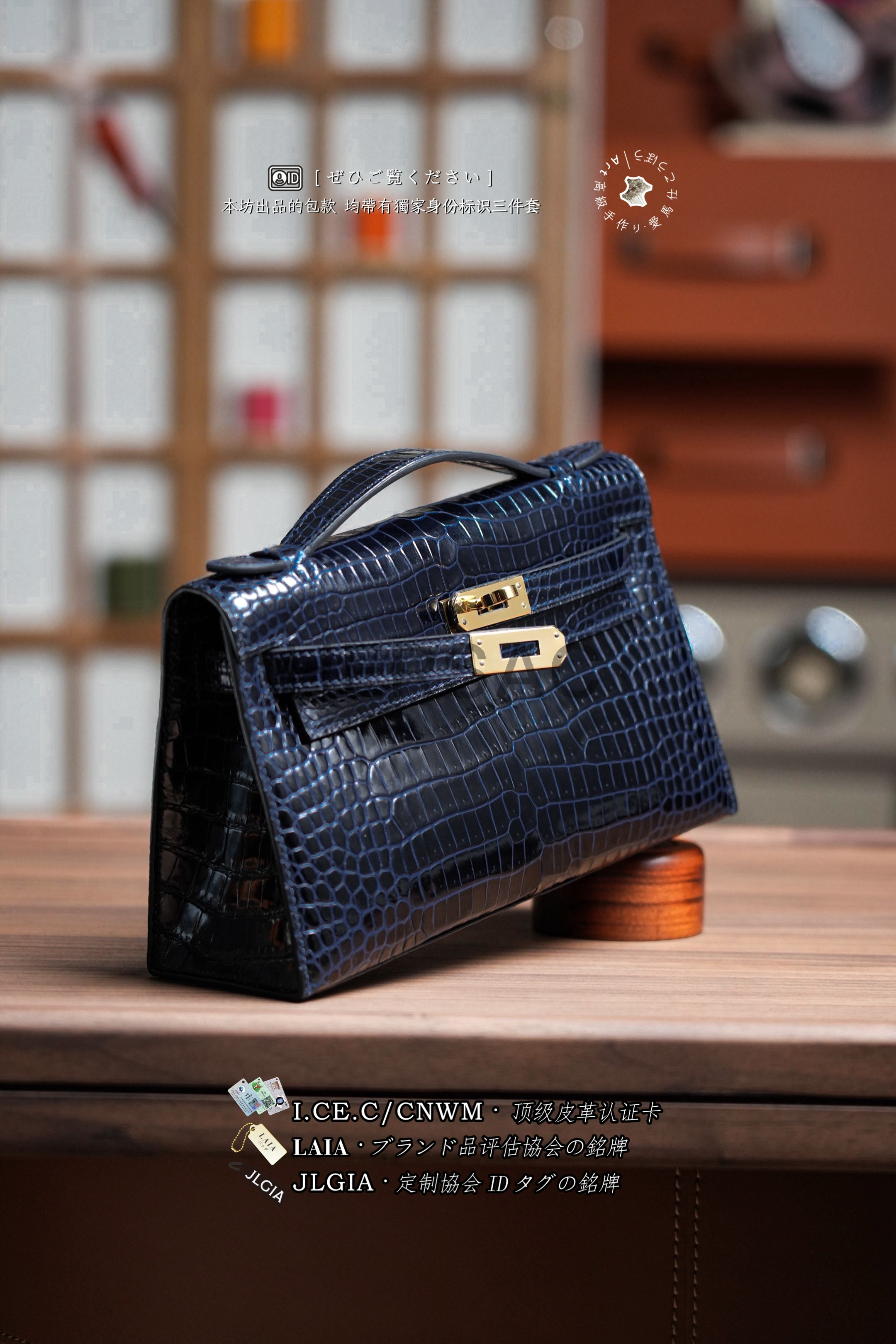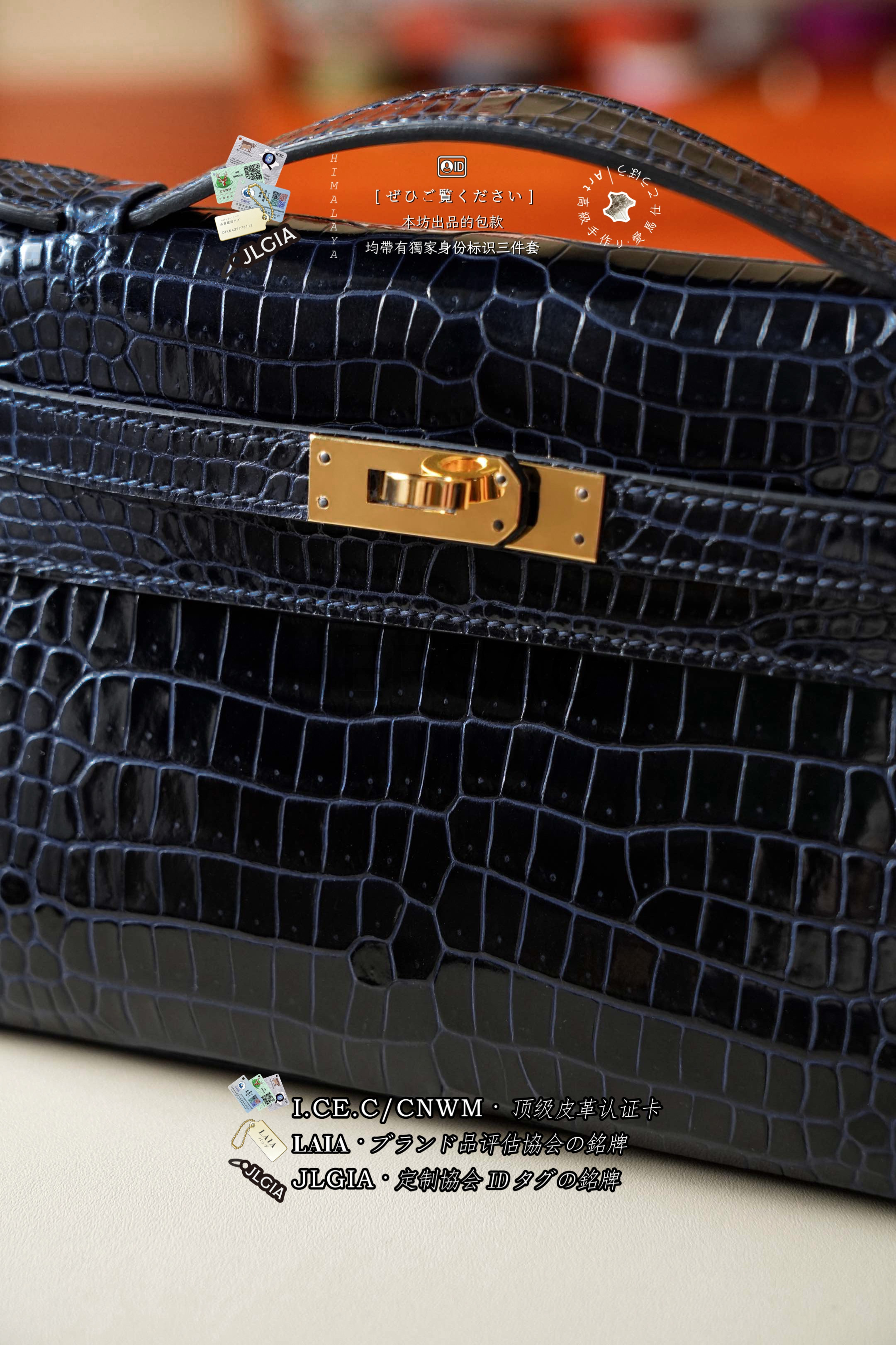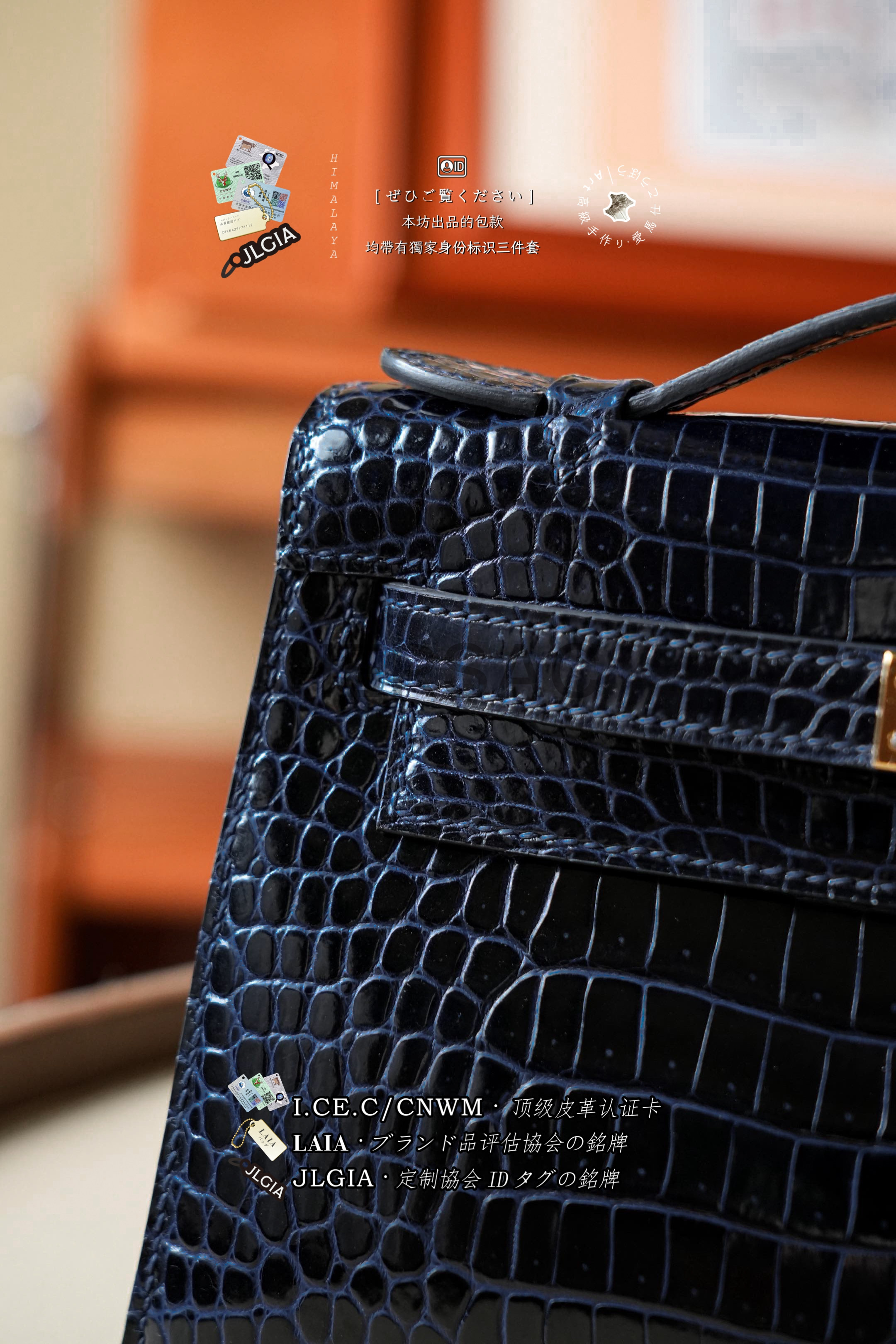 Hermes Mini Kelly I Glossy Porosus Bleu Arine Gold > Premium 토트백