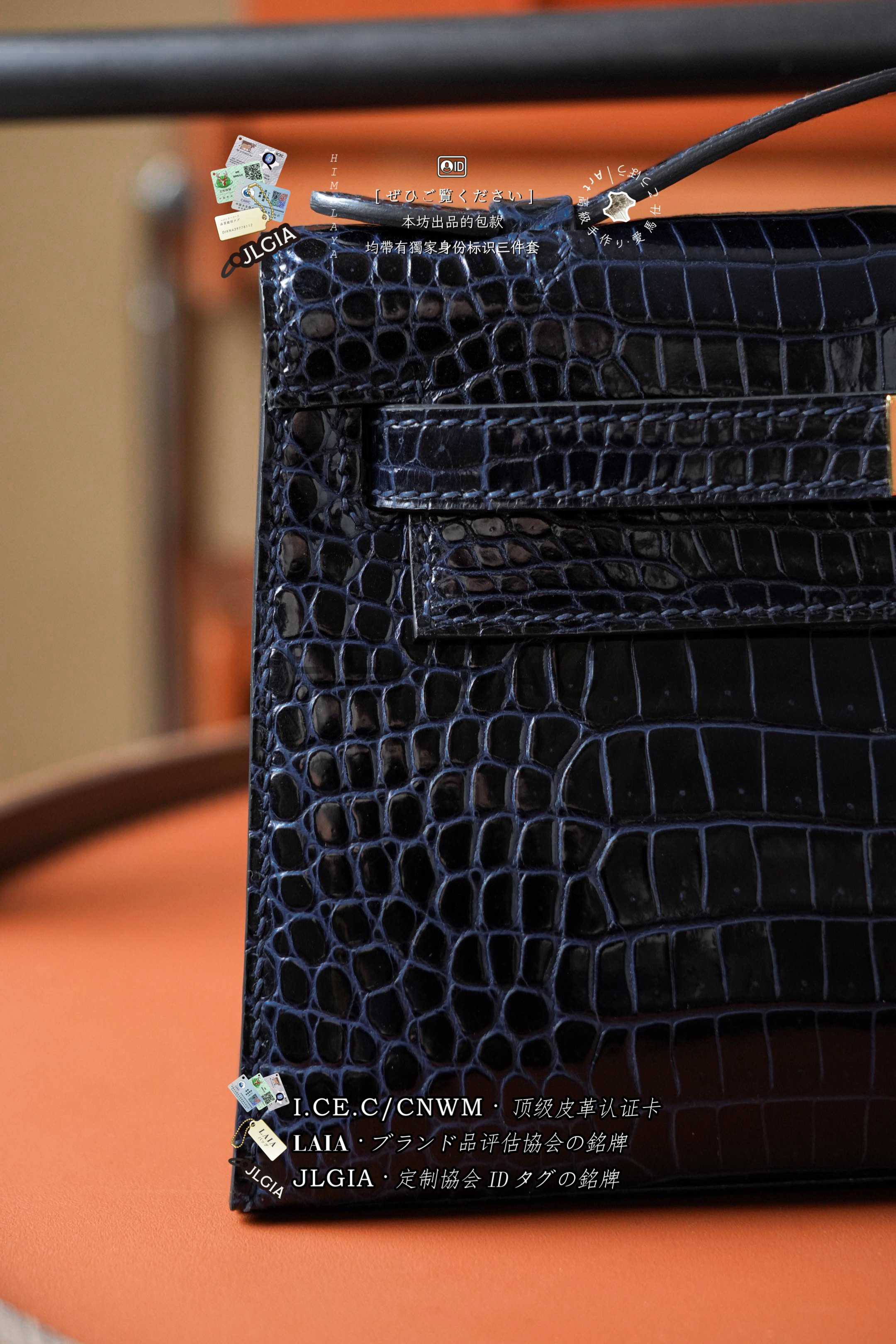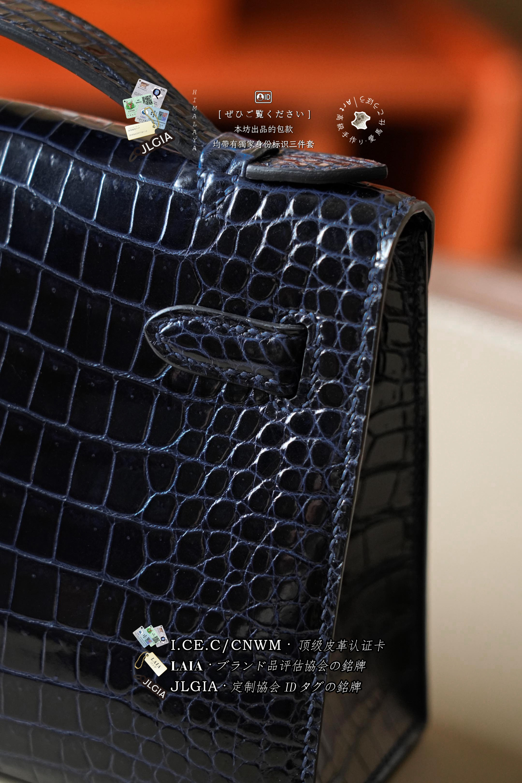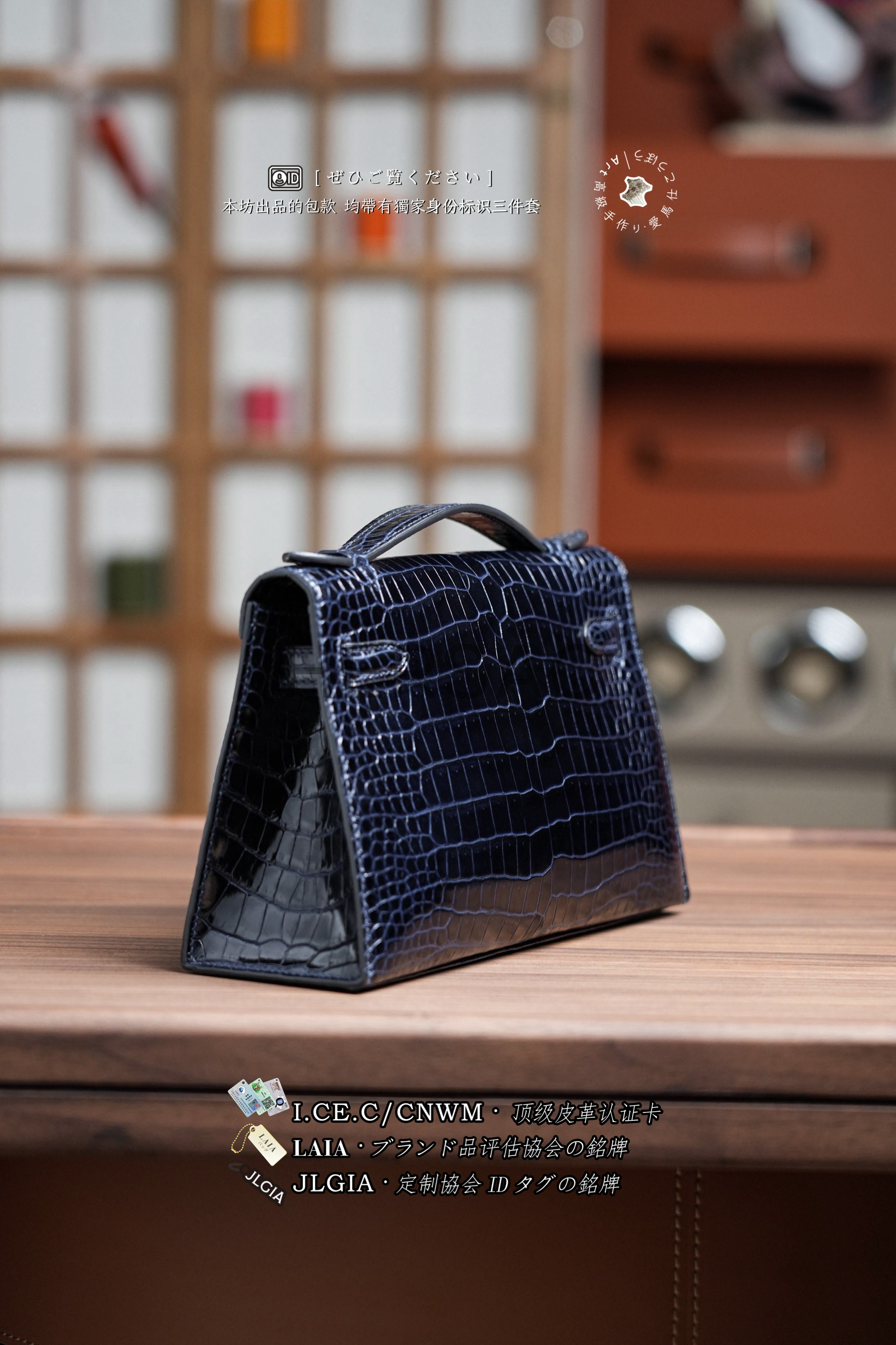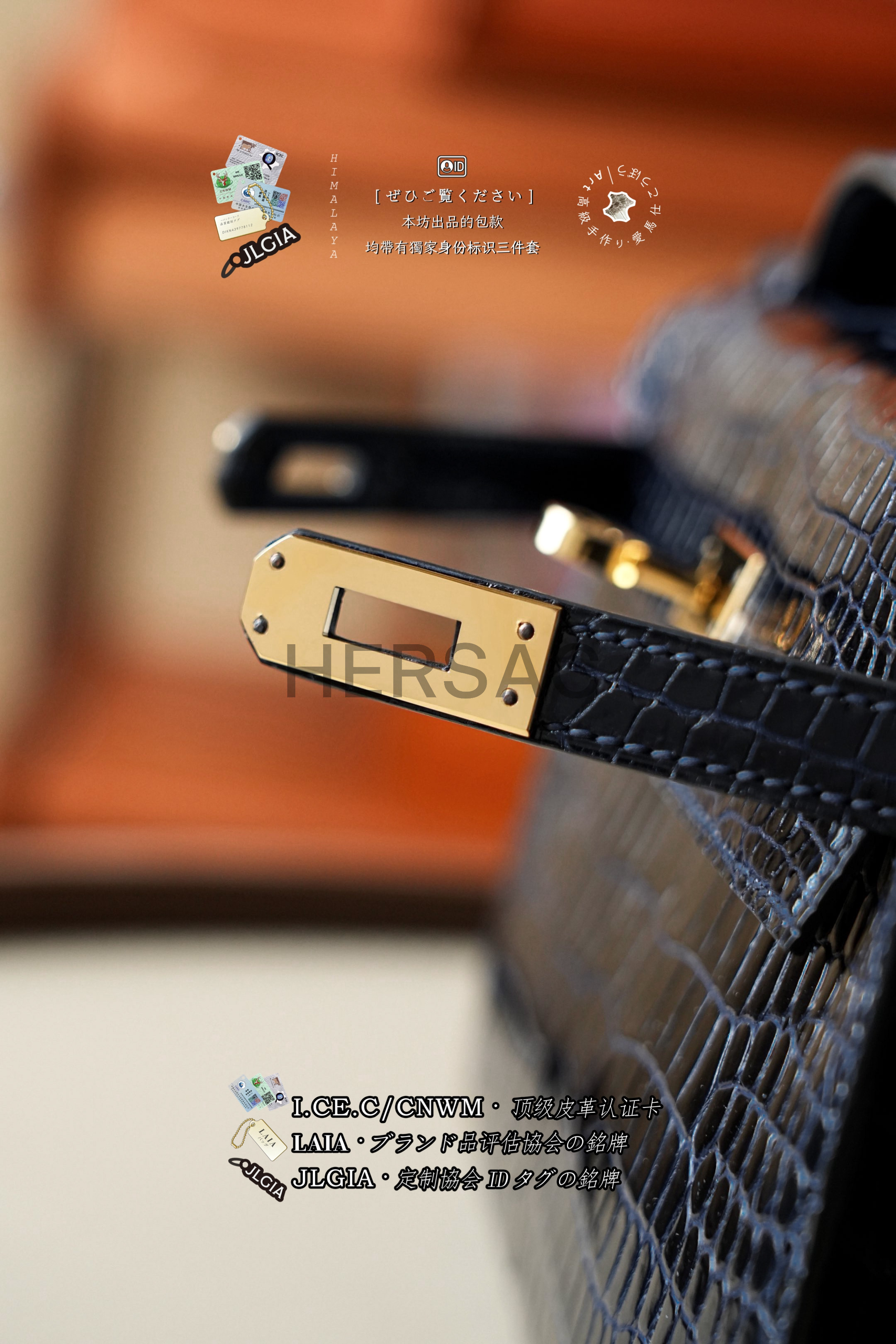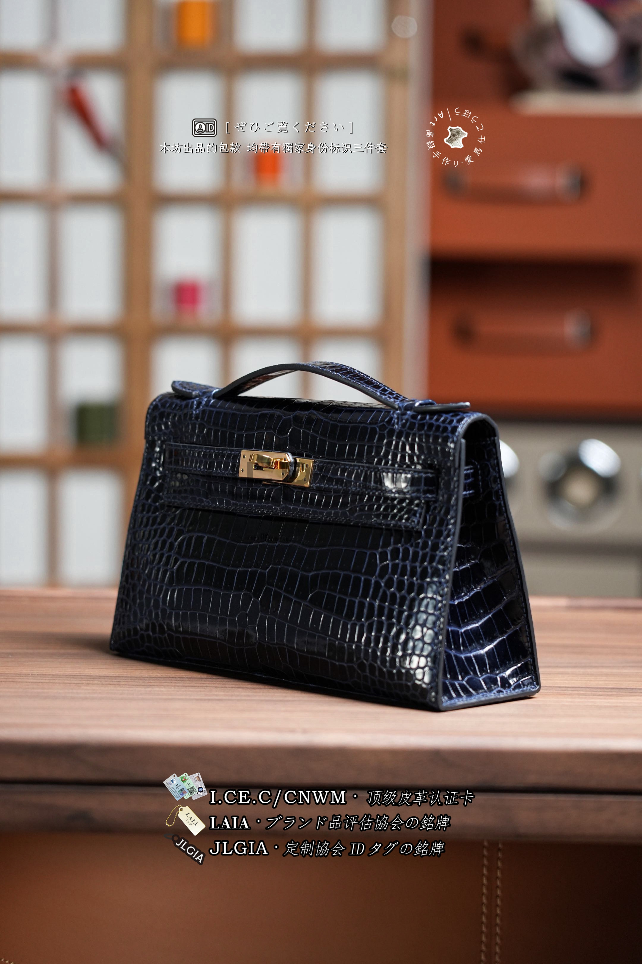 Hermes Mini Kelly I Glossy Porosus Bleu Arine Gold > Premium 토트백