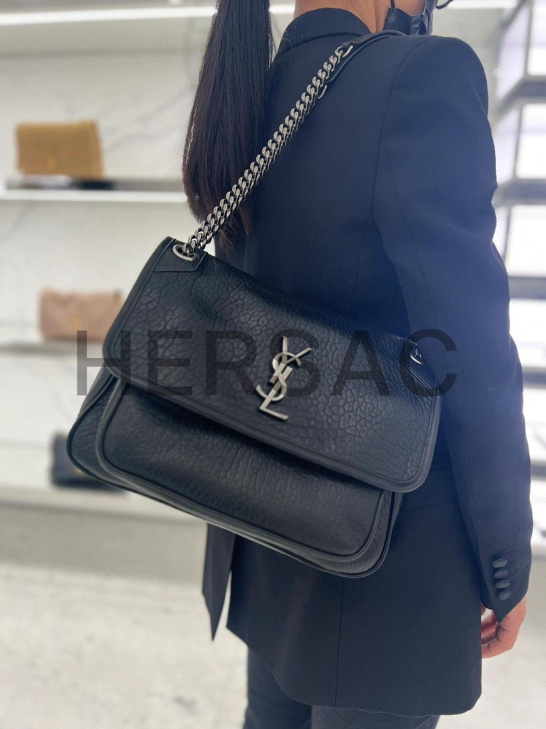 생로랑 그레인 램스킨 소재의 NIKI 미디엄백 633178AACIA1000