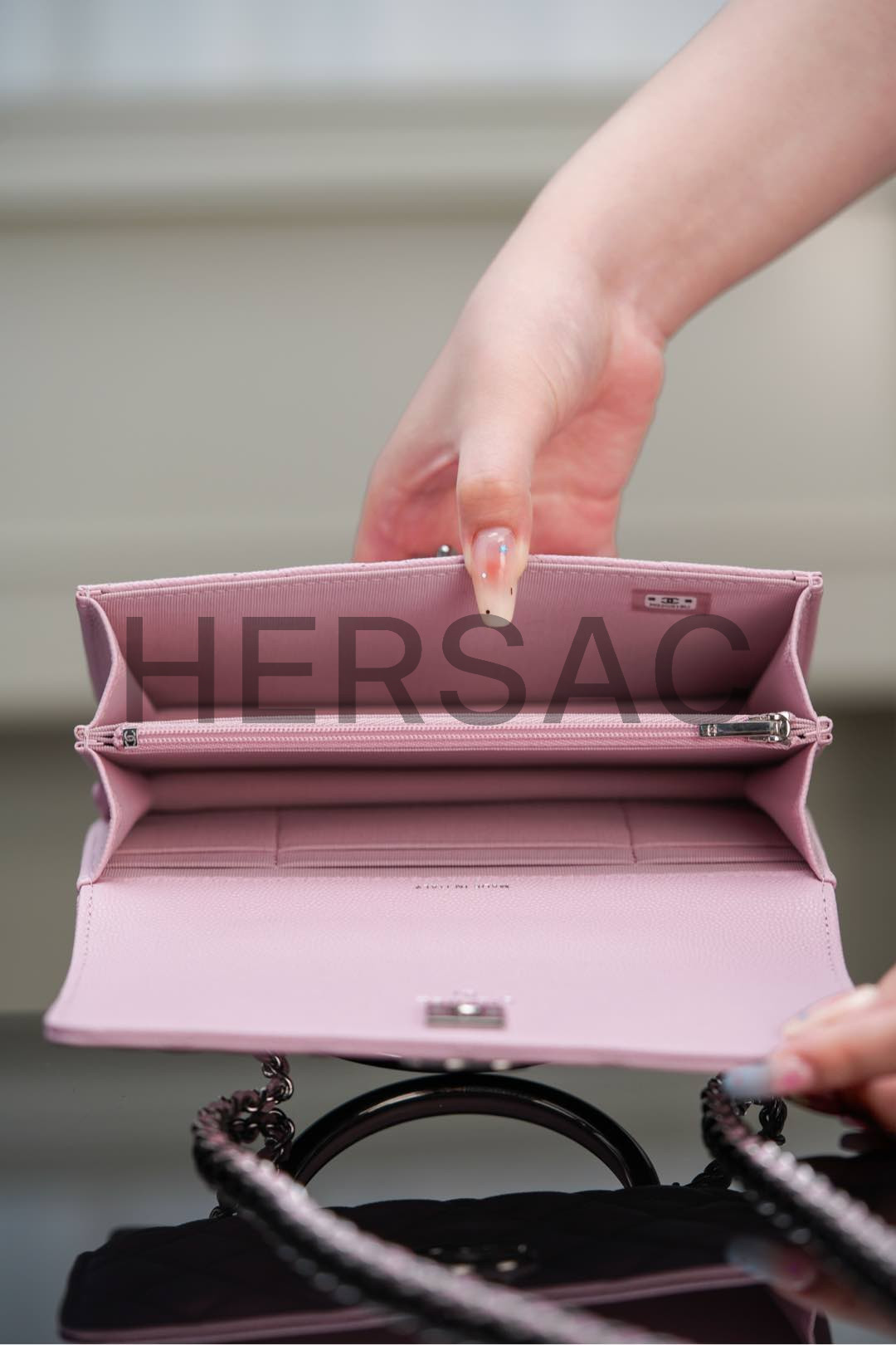샤넬 클러치 위드 체인 AP4498-B19457-NADOE