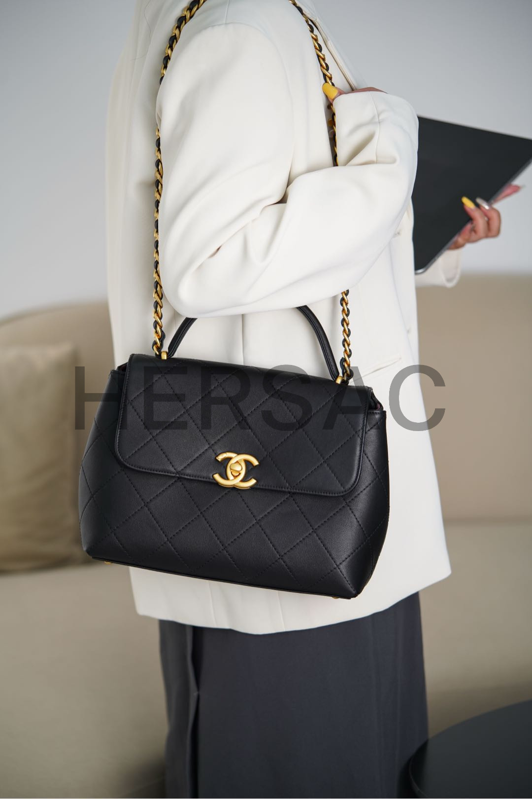 샤넬 라지 플랩백 위드 탑핸들 AS5467-B20111-94305