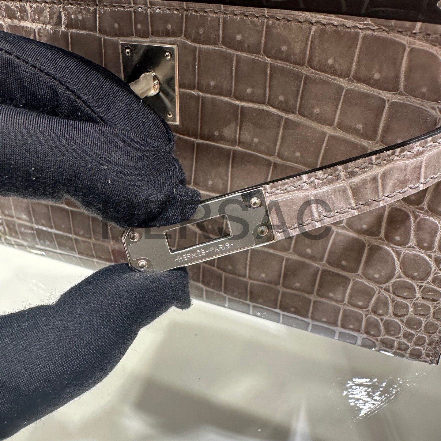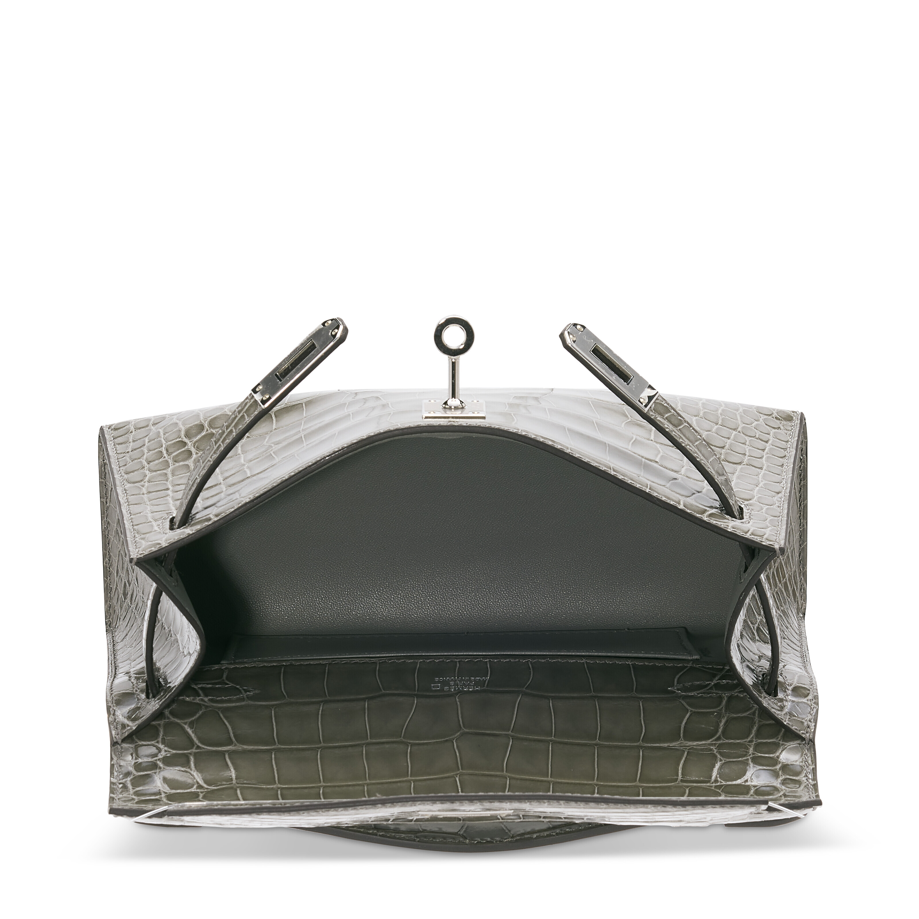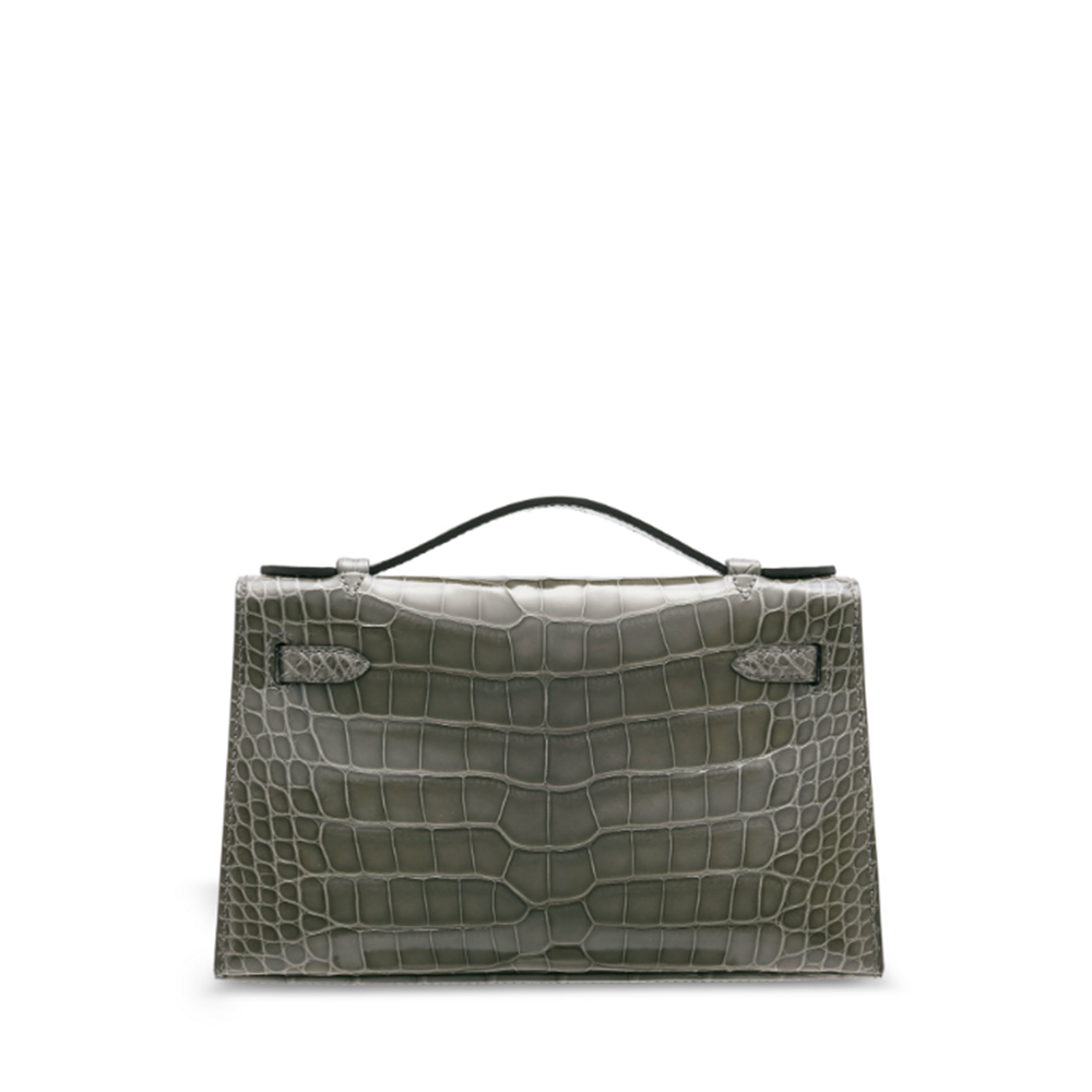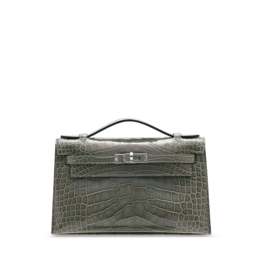 Hermes Mini Kelly I Porosus Gris Ciment Silver